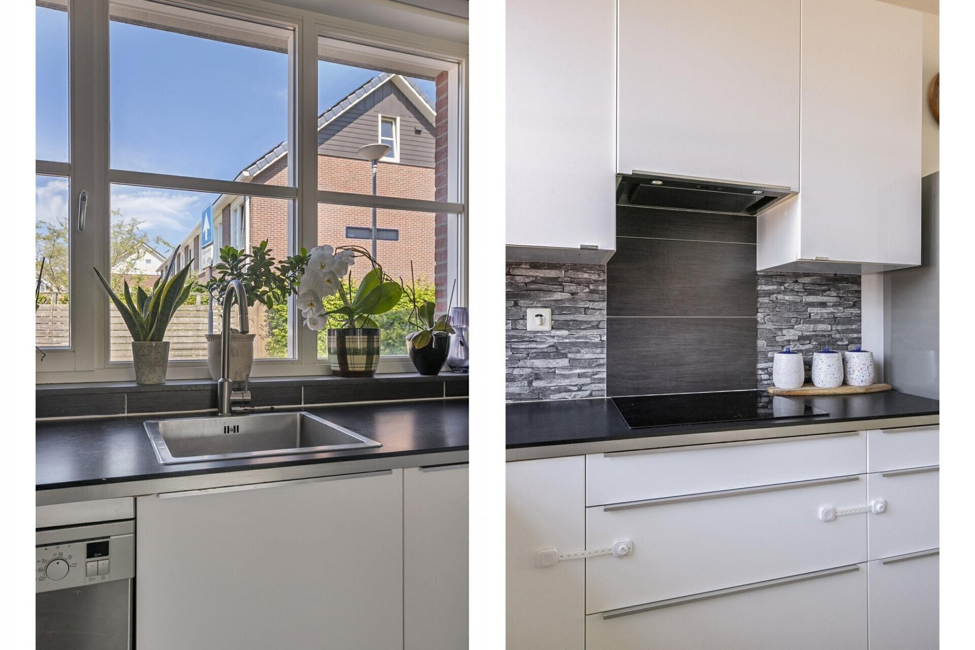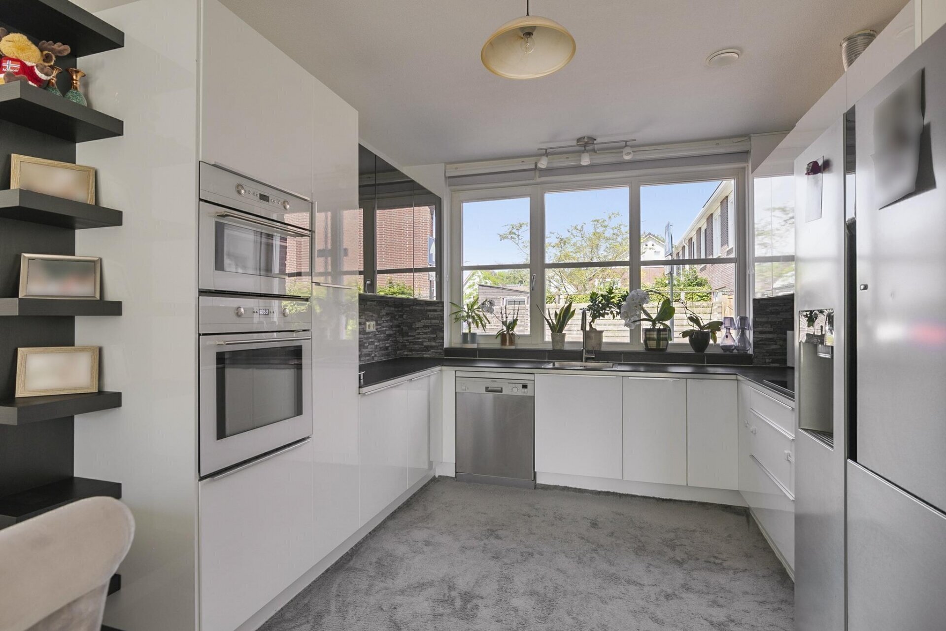 Entree, hal, meterkast, volledig betegelde toiletruimte met hangend closet en fonteintje en de trapopgang naar de bovengelegen verdiepingen! Vanuit de hal heeft u toegang de verrassend ruime woonkamer. Deze woonkamer van welgeteld ca. 34m2 is voorzien van een keurige tapijtvloer en beschikt over openslaande deuren naar de achtertuin! Aan de voorzijde van de woning bevindt zich de keuken. Deze ruime, hoek-opgestelde keuken is uitgevoerd met een witte kleurstelling en beschikt over diverse inbouwapparatuur te weten; inductie kookplaat, afzuigkap, vaatwasser, RvS spoelbak, oven en magnetron! Teruggelopen naar de woonkamer, kunt u middels de openslaande deuren begeven naar de achtergelegen tuin. Deze achtertuin is gelegen op het oosten en bied u, mede door de zijtuin een heerlijke plek zowel in de zon als de schaduw!