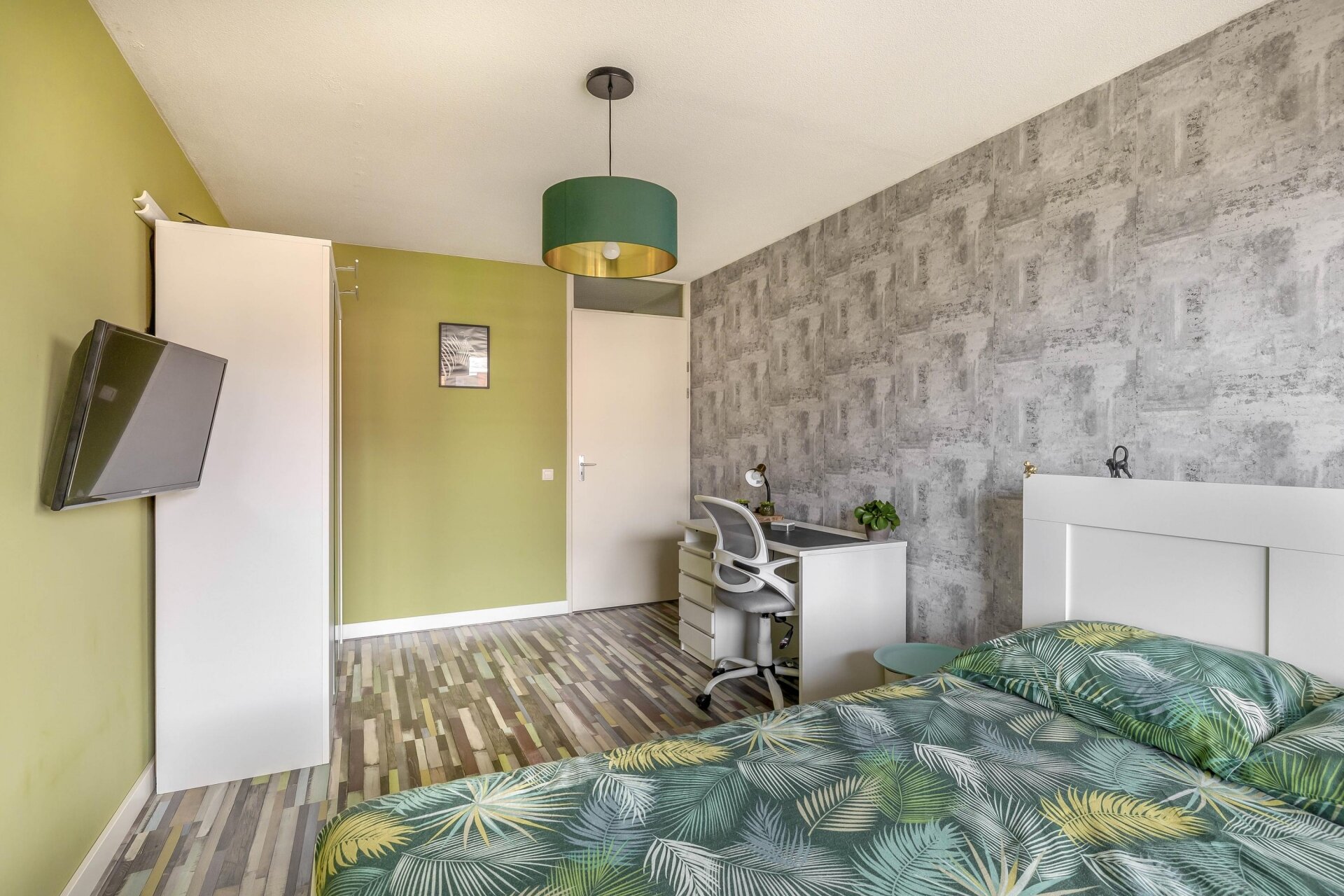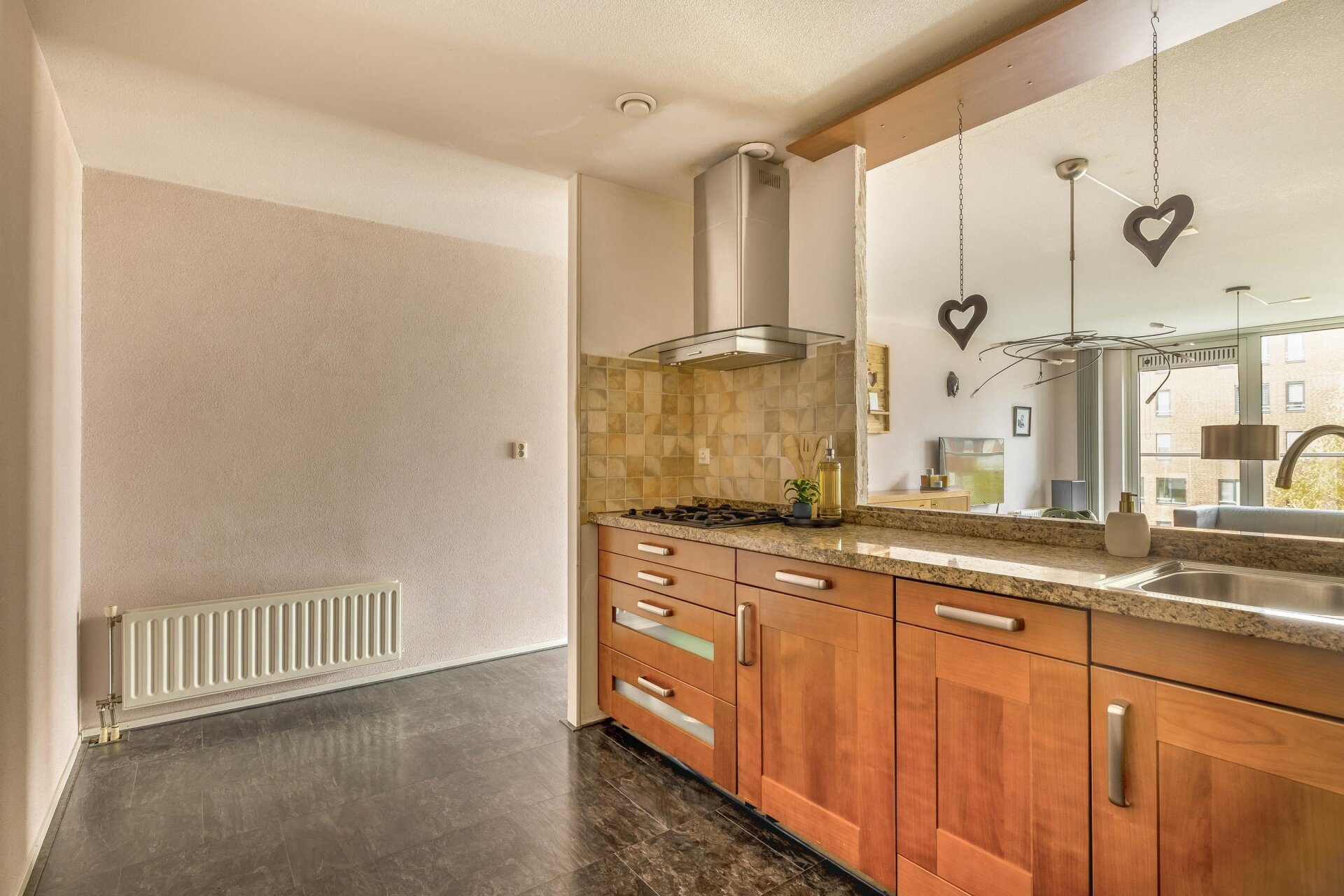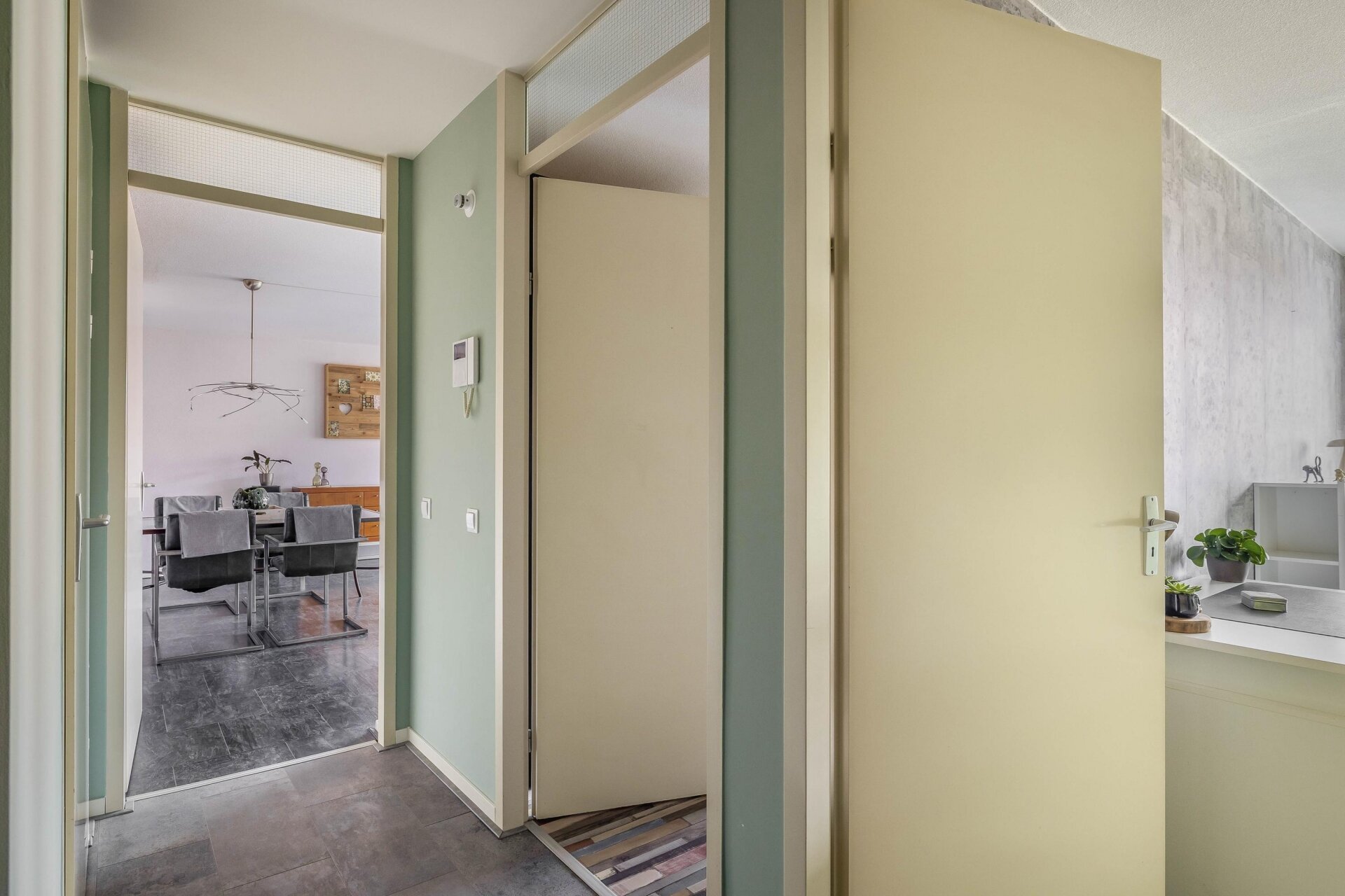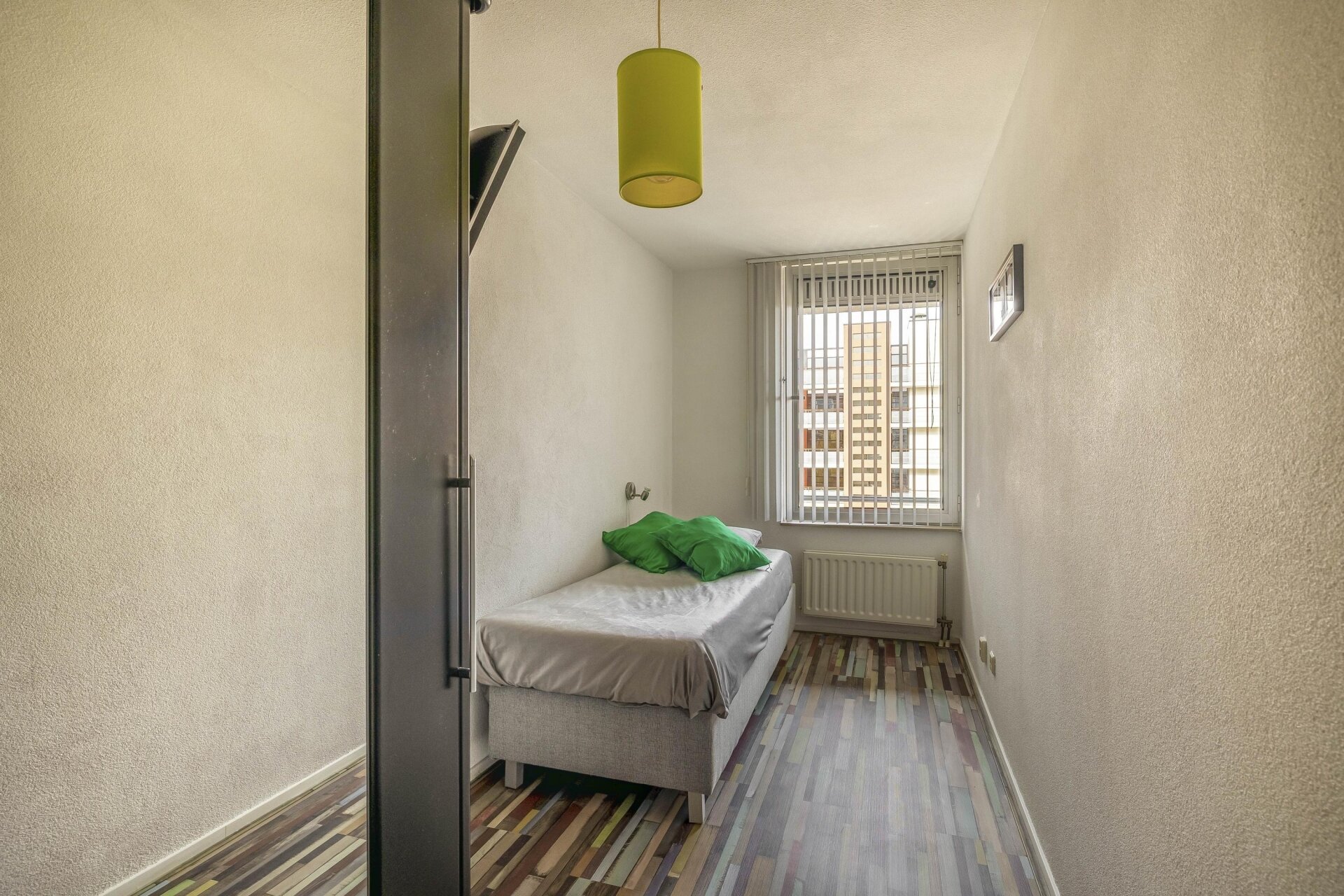 De slaapkamers zijn rustig gelegen aan de achterzijde van het appartement. De grootste slaapkamer biedt voldoende ruimte voor een tweepersoonsbed en een grote kledingkast. De tweede kamer is ideaal als logeerplek, hobbyruimte of werkkamer. In beide kamers ligt een nette laminaatvloer die doorloopt in de rest van het appartement, wat zorgt voor een rustige uitstraling.