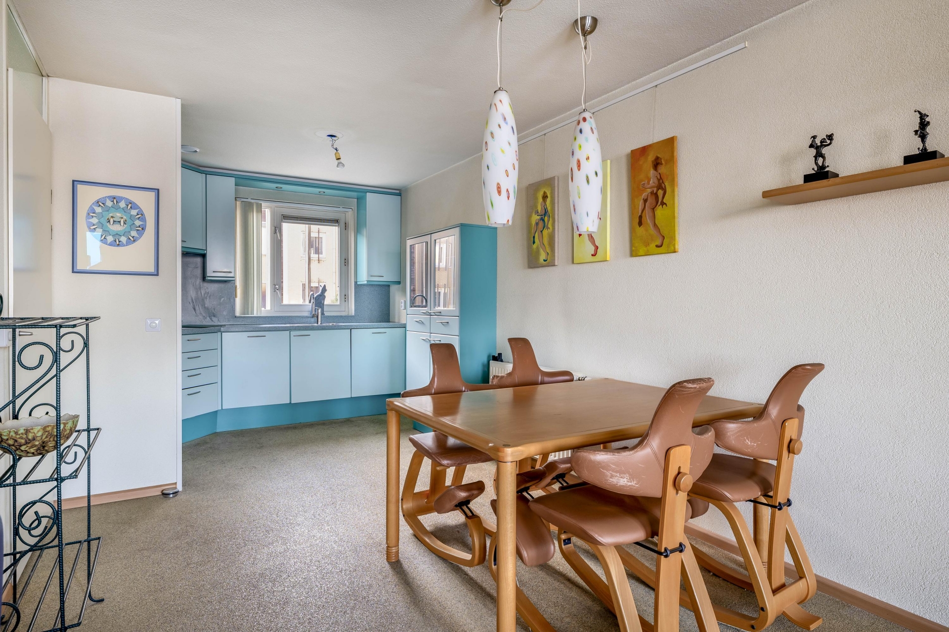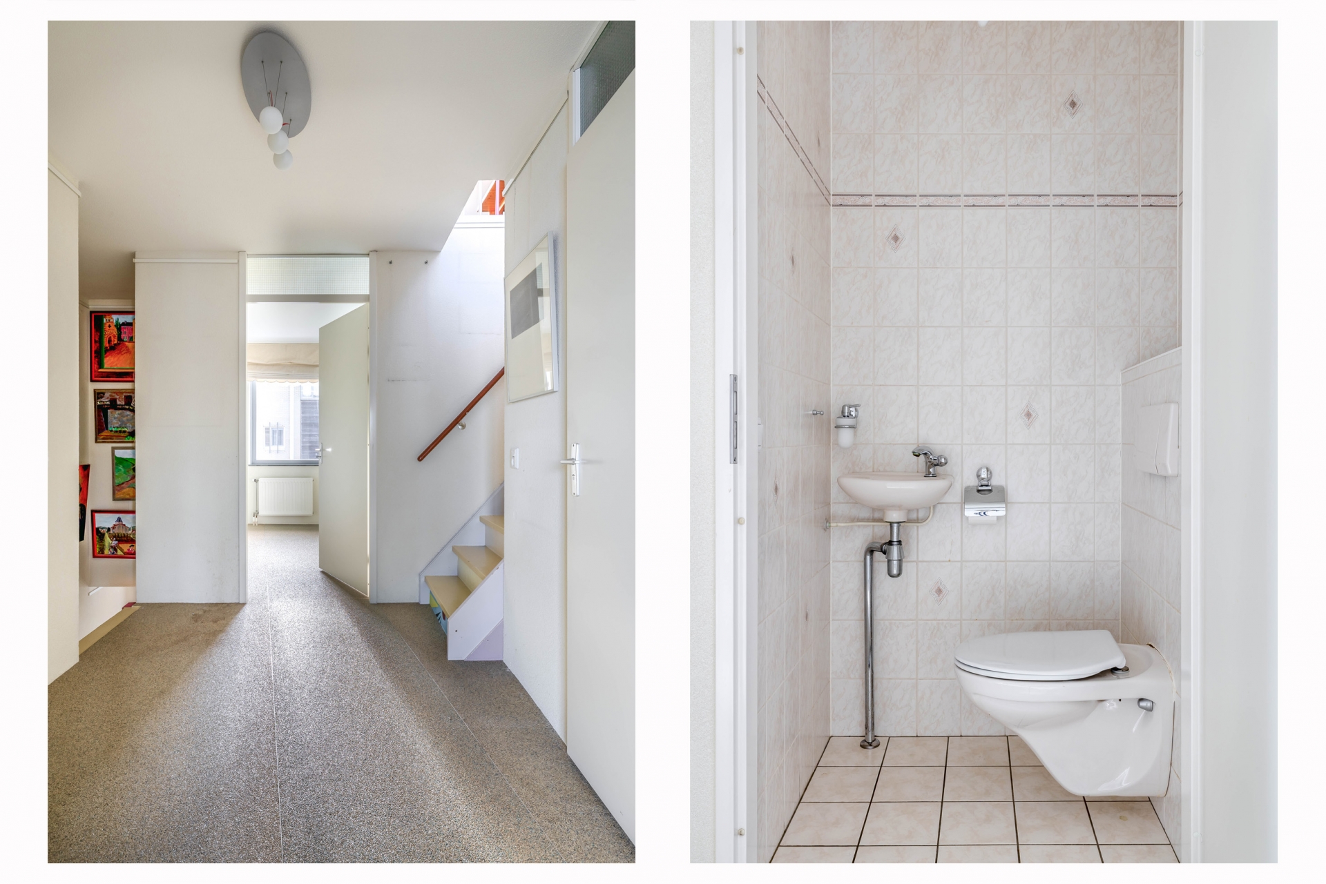 Via de ruime hal met trapopgang bereik je de moderne keuken, voorzien van diverse inbouwapparatuur. Vanuit de hal is tevens het separate toilet toegankelijk.