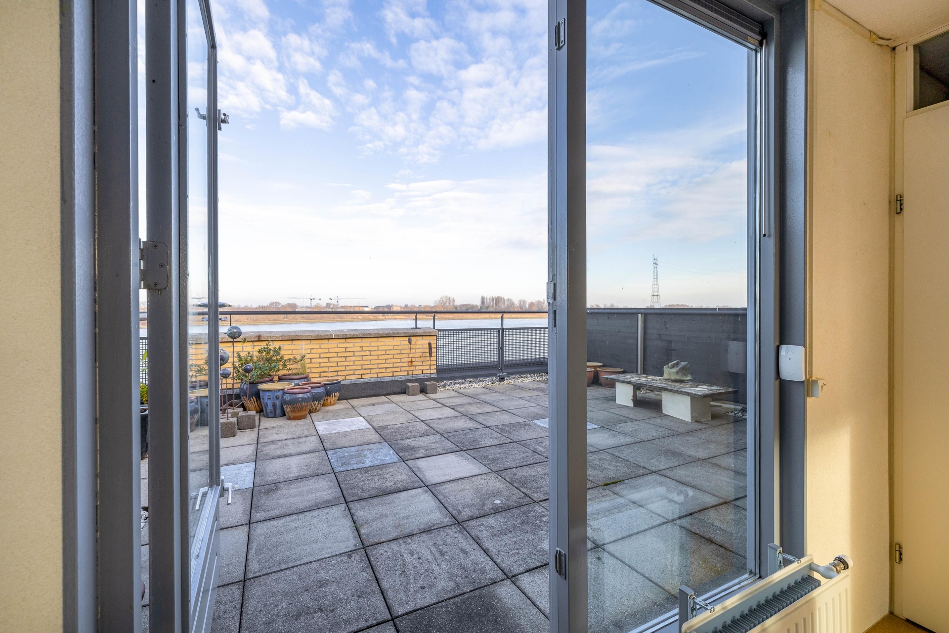 Wat deze woning écht bijzonder maakt, is het royale dakterras van maar liefst 27 m². Hier geniet je in alle privacy van het indrukwekkende uitzicht over het water. Daarnaast beschikt de woning over een balkon op het noordoosten, direct bereikbaar vanuit de woonkamer – de perfecte plek voor een kop koffie in de ochtendzon terwijl de schepen voorbijvaren.