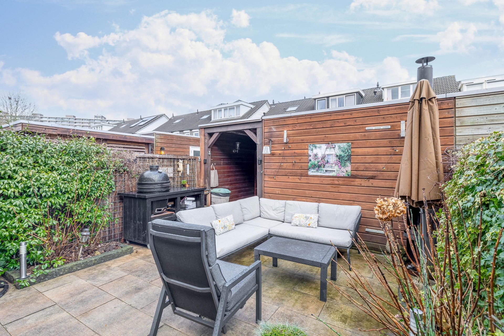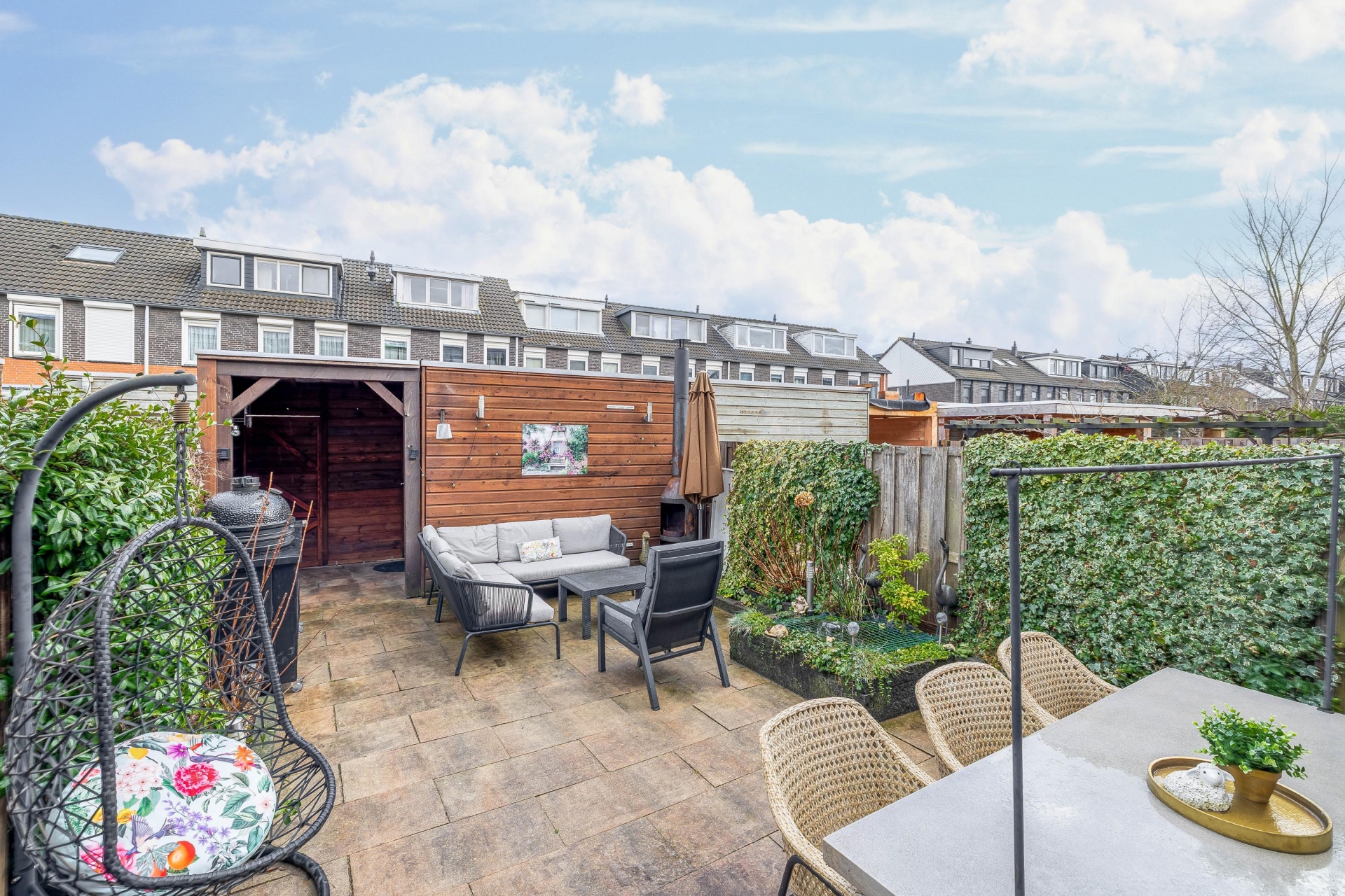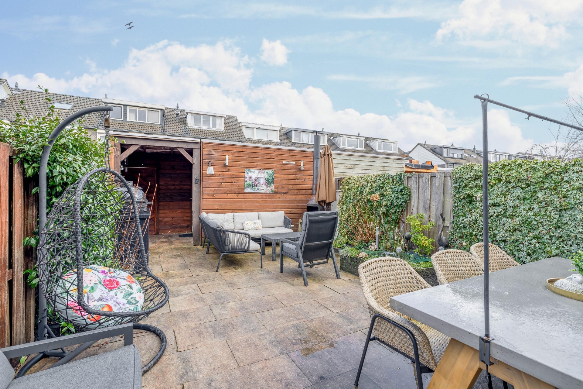 De achtertuin is een heerlijke plek om te ontspannen. Dankzij de ligging op het zuidoosten geniet je hier van de ochtend tot het ende van de middag van de zon. De tuin is verzorgd aangelegd. Een vrijstaande berging zorgt voor extra opbergruimte voor fietsen en tuingereedschap.