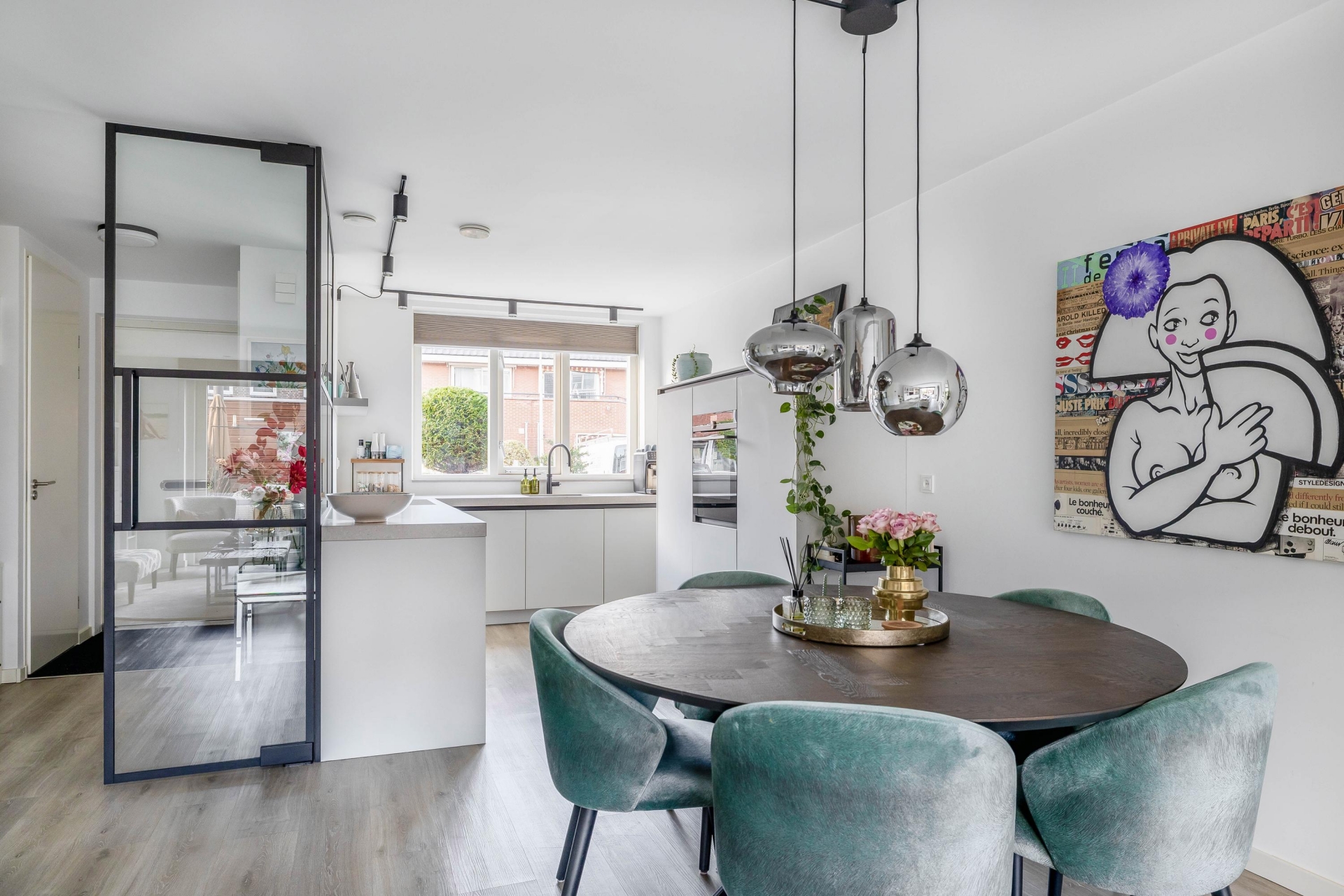 Bij binnenkomst valt meteen de ruime en open indeling op. De woonkamer is stijlvol afgewerkt met vloerverwarming, strakke wanden en veel lichtinval door de grote raampartijen aan de voor- en achterzijde. De zithoek biedt volop plek voor het hele gezin en loopt vloeiend over in het eetgedeelte en de moderne open keuken. Deze keuken is van alle gemakken voorzien, met hoogwaardige inbouwapparatuur zoals een Bora kookplaat, Quooker en Siemens apparatuur, én voldoende opbergruimte. Hier is het een genot om te koken én samen te komen.