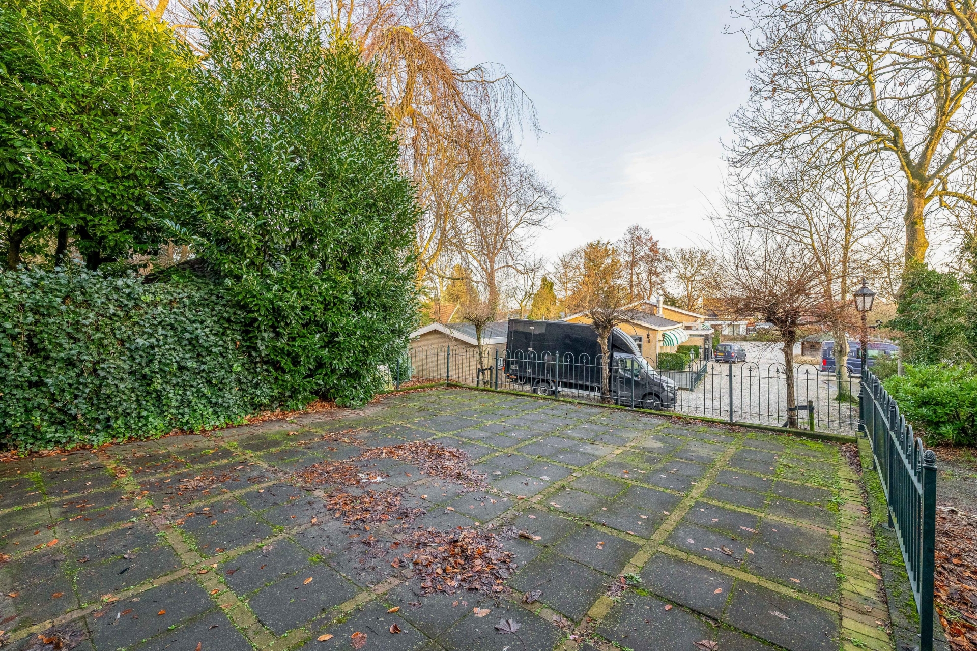 Achter het huis ligt een royale buitenruimte met veel verharding en een eigen afrit. Praktisch, maar vooral een leeg canvas. Hier ligt de kans om een fijne tuin te realiseren die past bij jouw manier van wonen. Groen, terrassen, een beschutte zithoek of juist een onderhoudsvriendelijke buitenruimte: de ruimte is er.