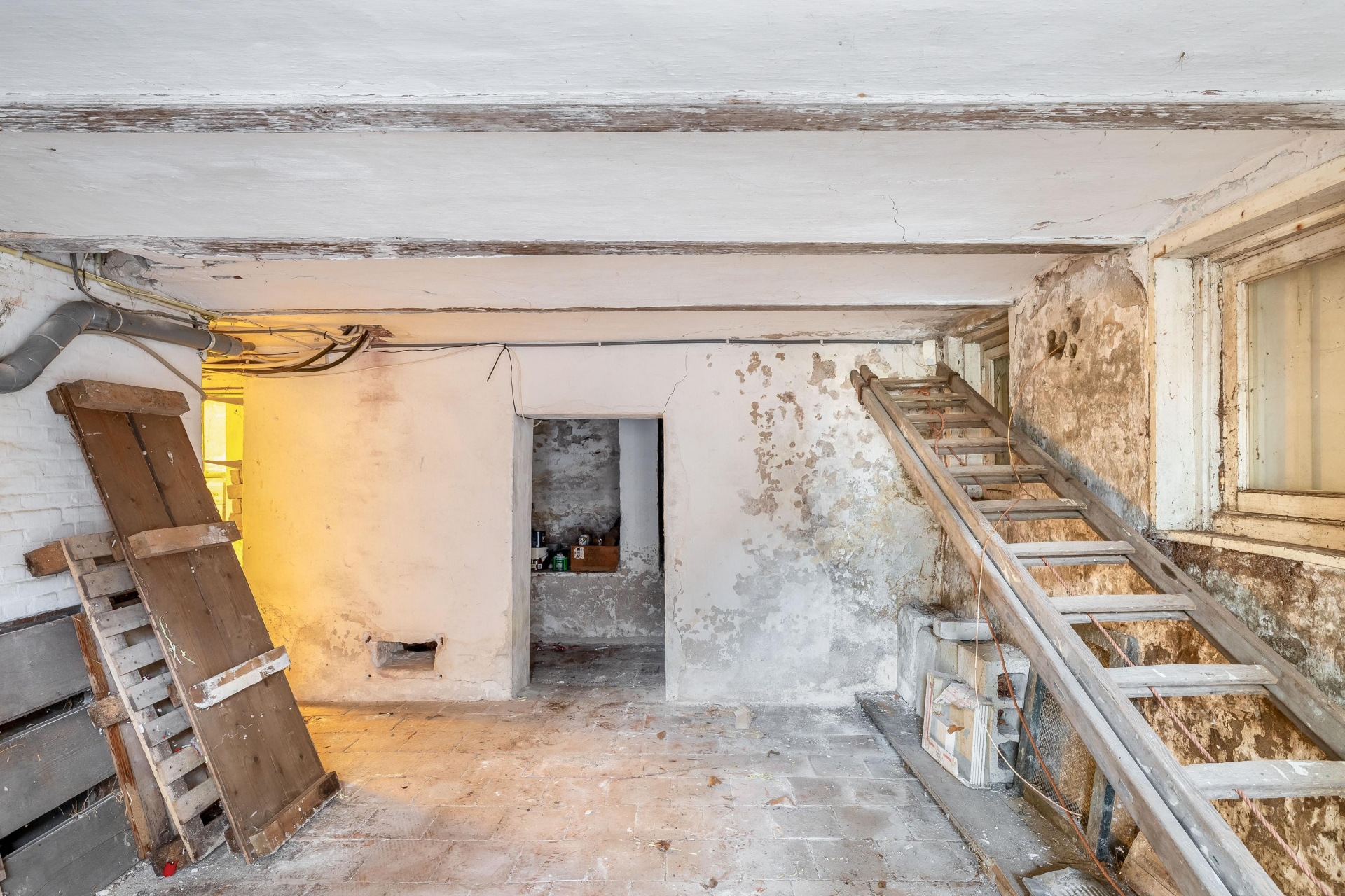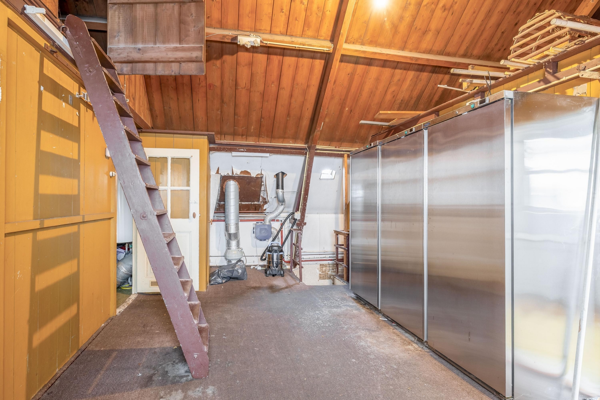 De huidige binnenruimte ademt nog de sfeer van het voormalige gebruik. Grote open vertrekken, meerdere ruimtes naast elkaar en een indeling die schreeuwt om herziening. Zie je hier al een royale woonkamer met leefkeuken? Of juist een speelse split-level indeling met werkruimte aan huis? Het kan allemaal. Met zeven kamers in totaal en vier mogelijke slaapkamers is er volop ruimte om te schuiven, te breken en opnieuw op te bouwen.