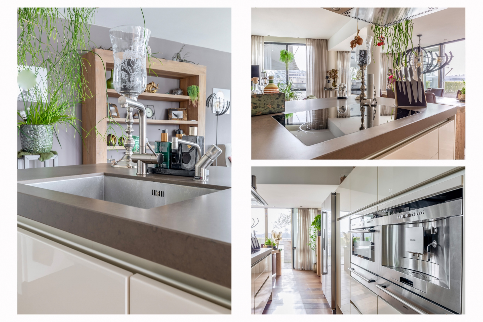 Het begint eigenlijk al wanneer we de afsluitbare parkeerkelder inrijden. Daar zijn 2 parkeerplaatsen gereserveerd voor dit adres, voorzien van een eigen oplaadpunt. In het appartement zelf is de fraaie badkamer voorzien van een toomdouche. Ook de open keuken met kookeiland is van alle gemakken voorzien: 2 warmhoud-lades, combimagnetron, koffie automaat, Amerikaanse koelkast, vaatwasser (2024) inductie kookplaat en design afzuigkap.