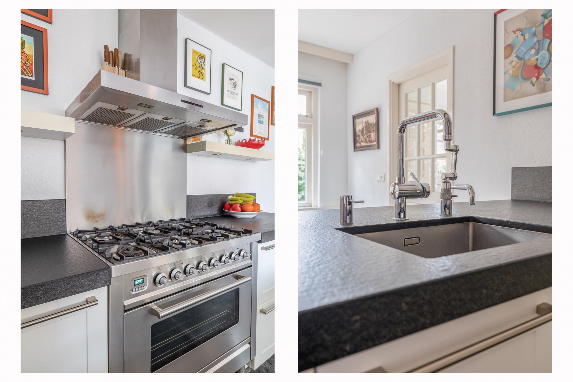 De leefkeuken is ruim opgezet en praktisch ingedeeld. Hier kook en leef je met uitzicht op de tuin, waarbij de schuifpui zorgt voor een mooie, open verbinding met buiten. Op zonnige dagen zet je de pui open en lopen binnen en buiten moeiteloos in elkaar over. Elektrische zonwering aan de binnenzijde zorgt voor extra comfort en controle over licht en temperatuur.