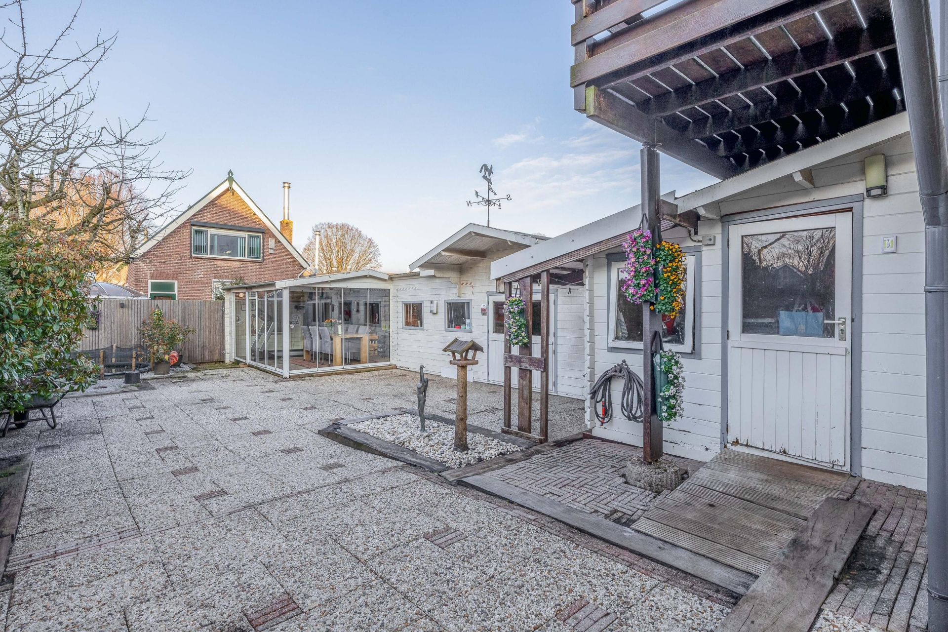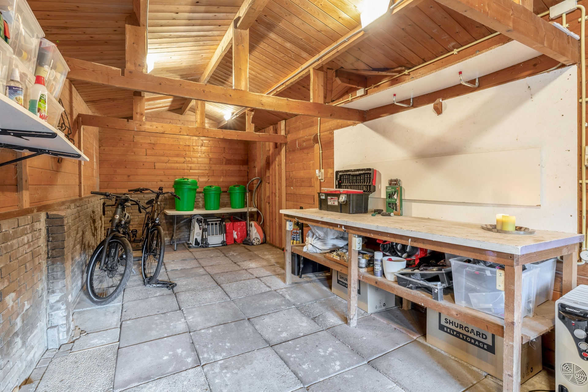 En dan is er nog een groot bijgebouw, ideaal als berging, werkruimte of voor hobby’s. Deze combinatie van binnen- en buitenruimtes maakt het perceel extra veelzijdig.