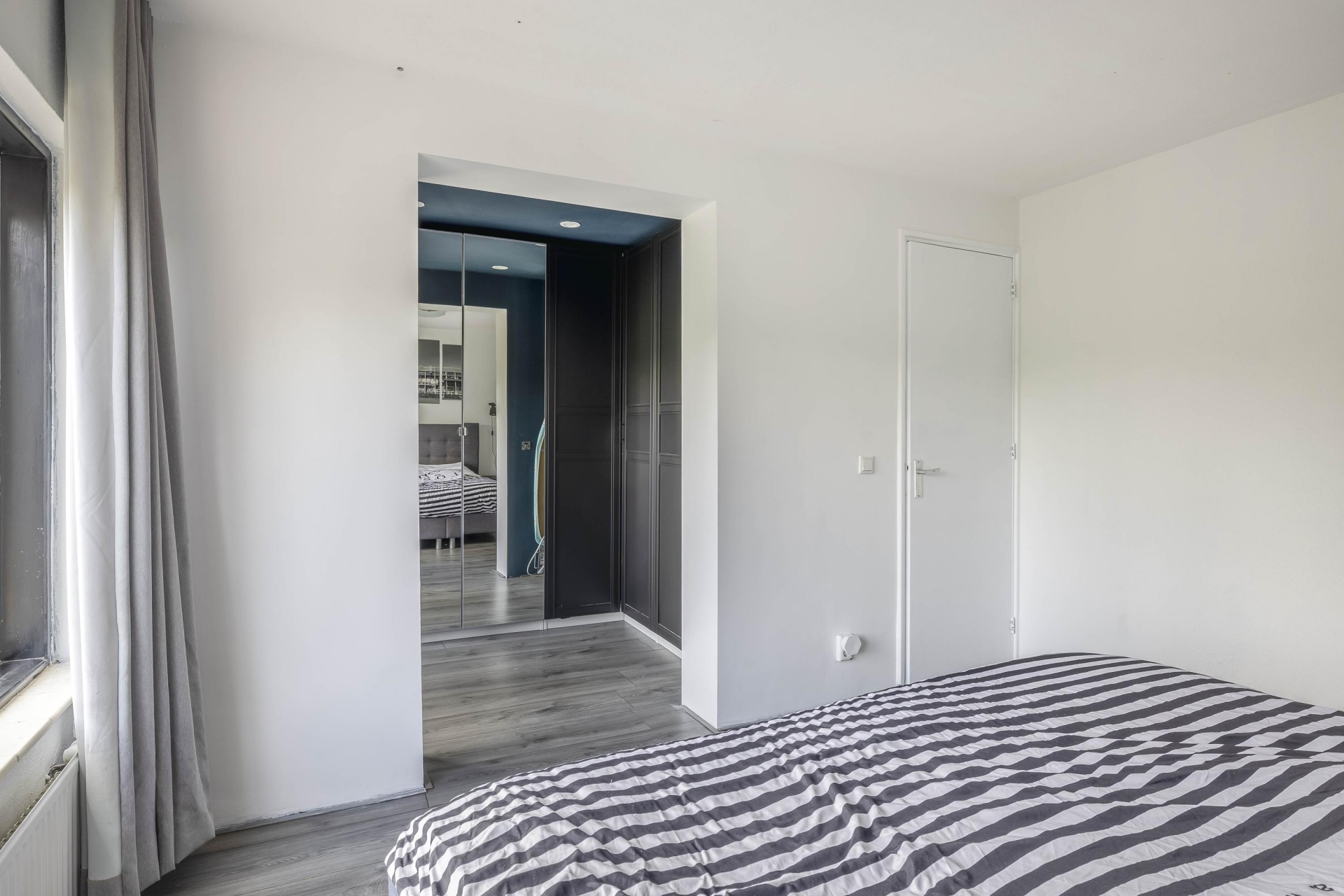 Op de eerste verdieping bevinden zich twee slaapkamers, waarvan de grootste aan de achterzijde ligt met zicht op de tuin. De badkamer is functioneel ingericht met een douche, wastafel en tweede toilet. De walk-in closet kan makkelijk omgebouwd worden tot extra slaapkamer. De tweede verdieping is bereikbaar via een vaste trap waar een derde slaapkamer te vinden is, maar kan ook worden benut als werkkamer. Hier is ook een extra douchecabine te vinden met fonteintje.