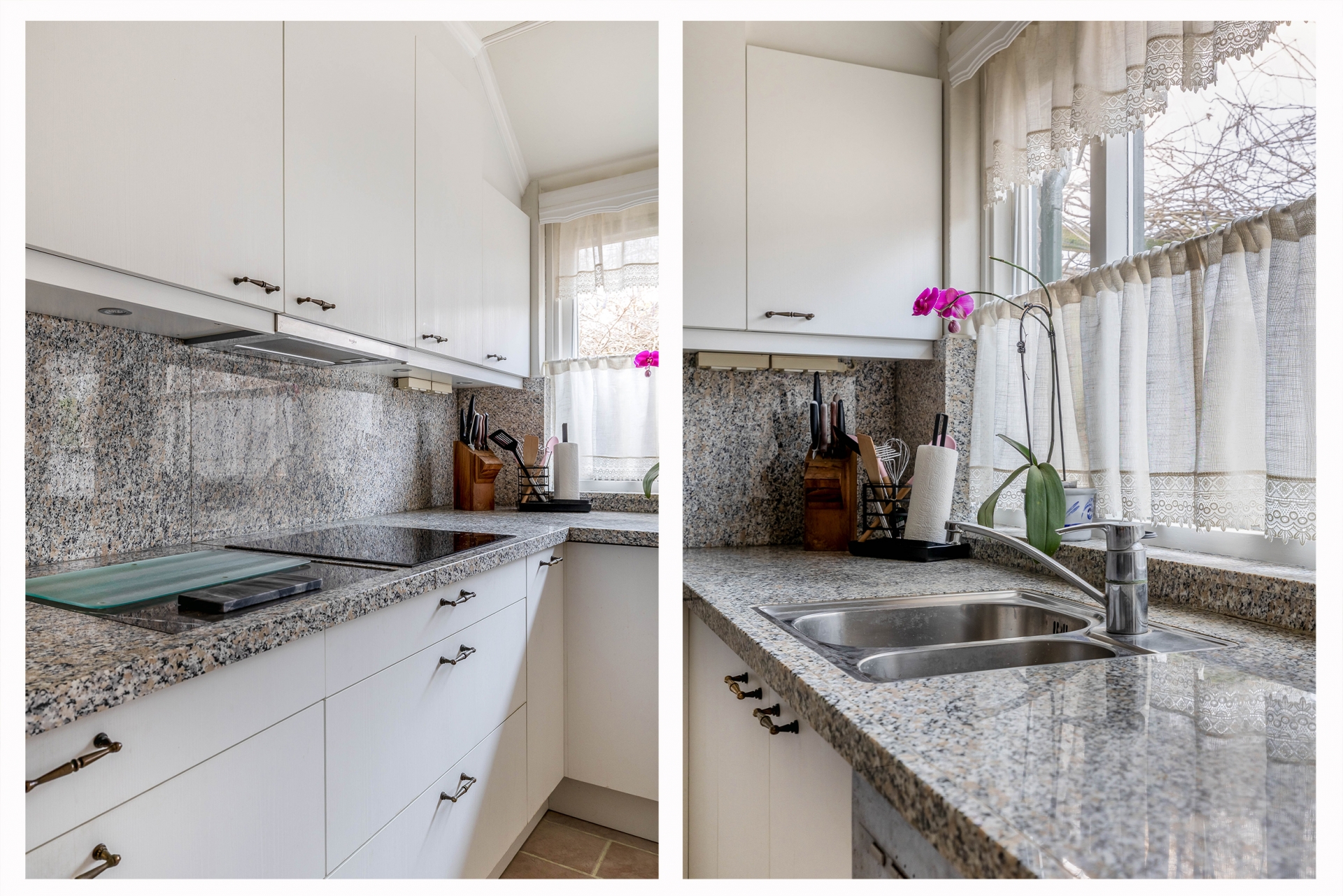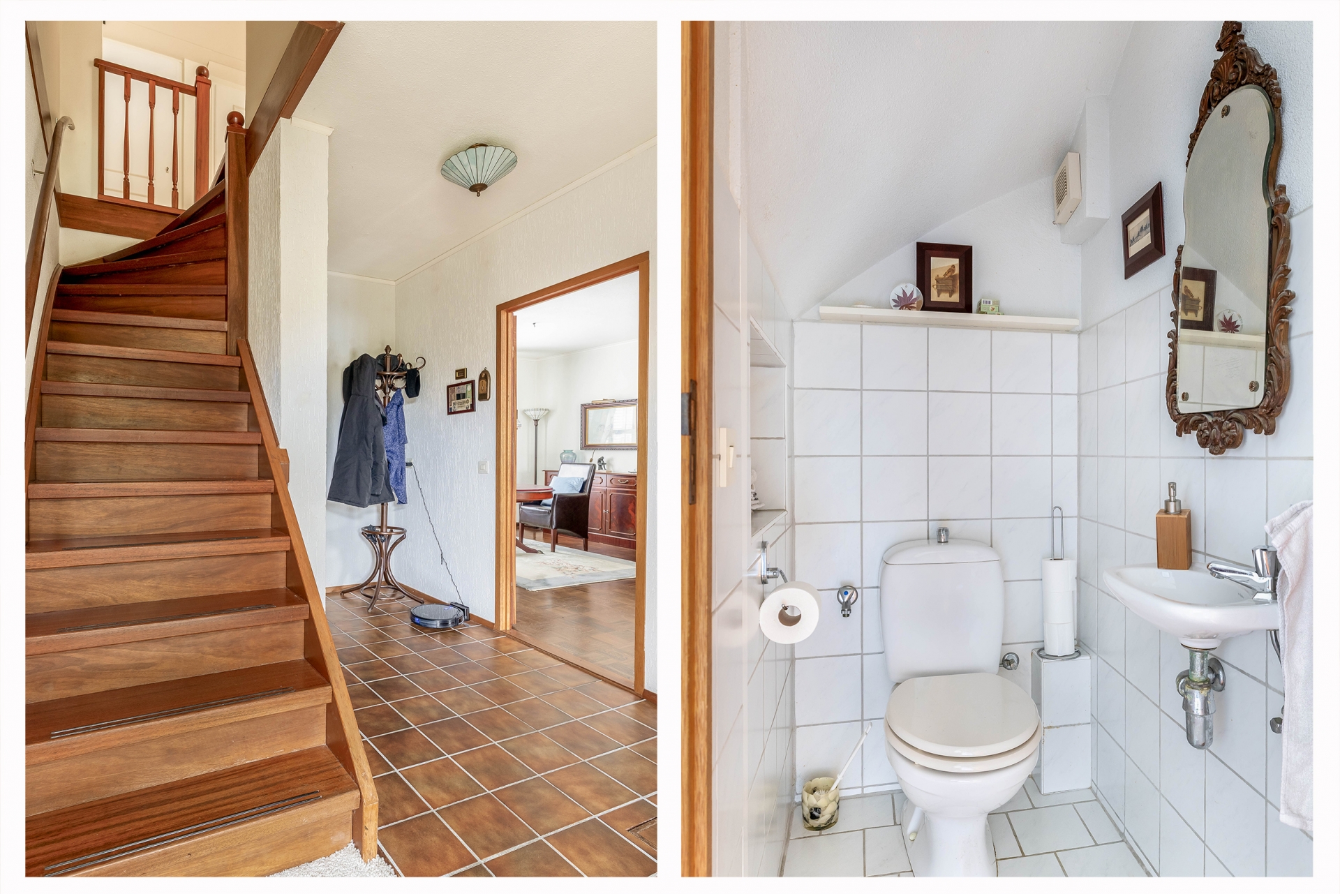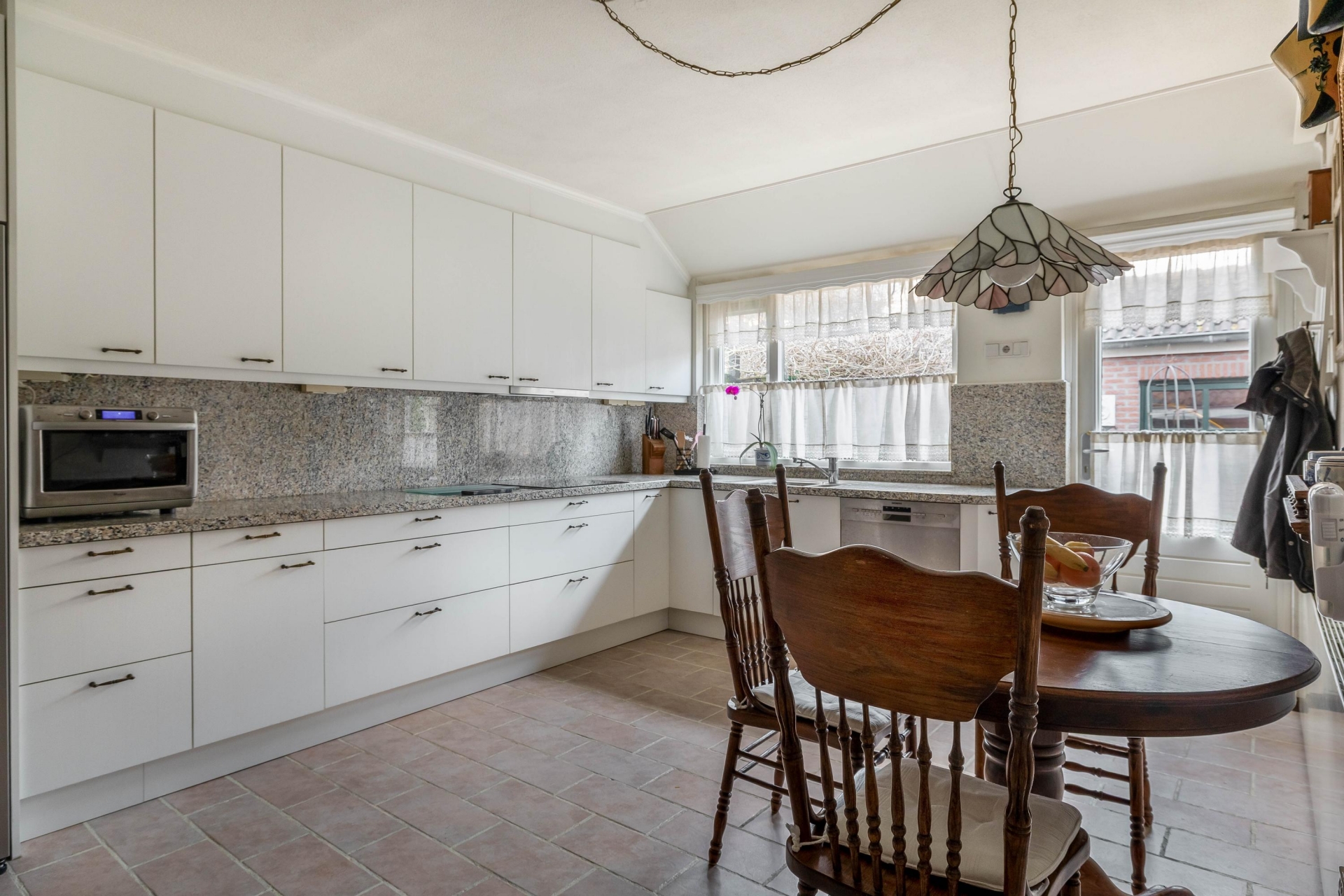 Je komt binnen in een ruime hal met trapopgang en toegang tot het toilet, de meterkast en de bijkeuken aan de voorzijde. Handig voor voorraad, garderobe of als wasruimte. Aan de achterzijde van het huis bevindt zich de royale woonkeuken van ca. 18 m², voorzien van een moderne hoekopstelling (2020) met diverse inbouwapparatuur zoals een inductiekookplaat, afzuigkap, oven, combimagnetron, vaatwasser en koel-vriescombinatie. Vanuit de keuken kijk je uit op de achtertuin.