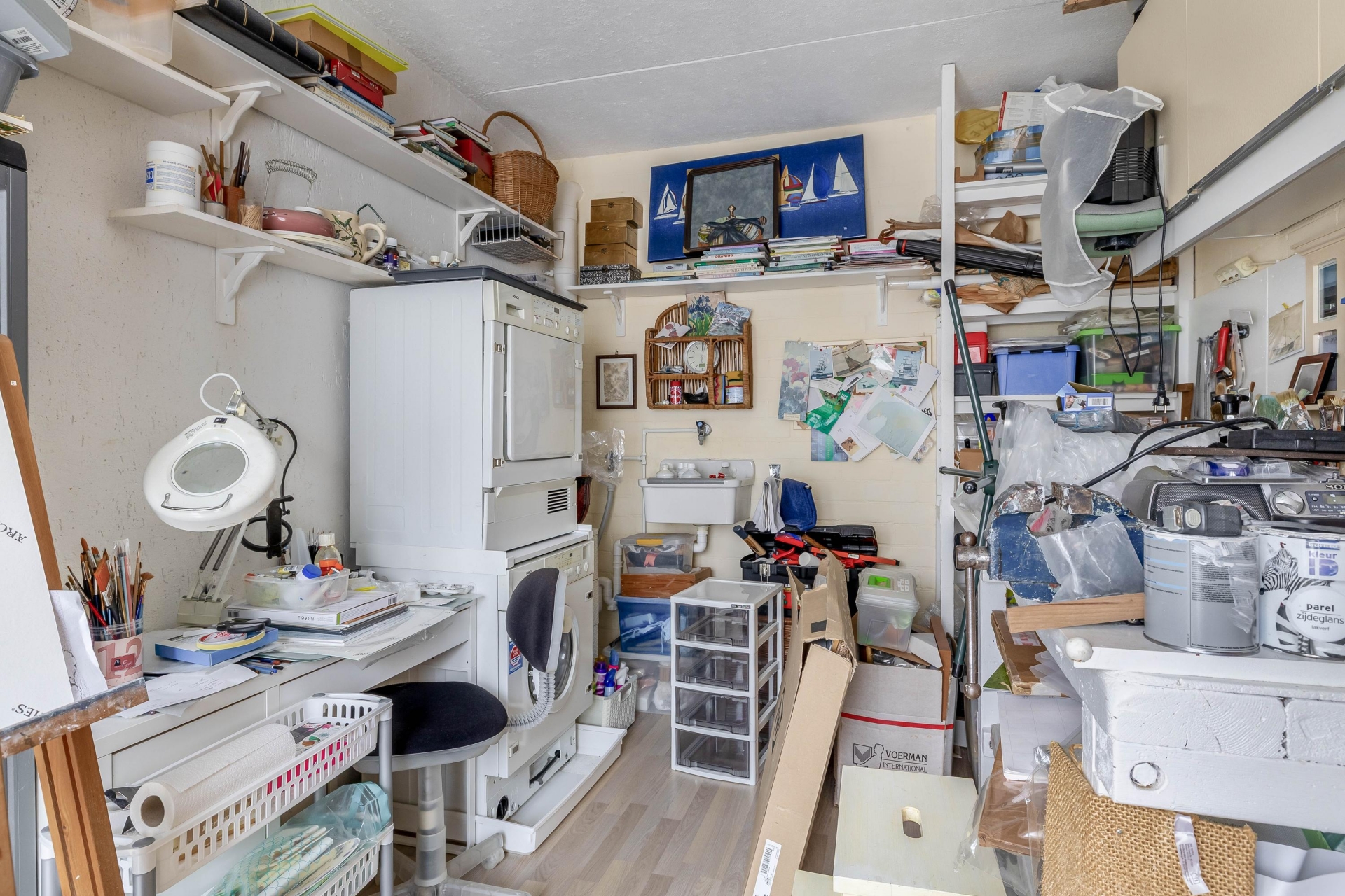 Achterin de tuin staat de vrijstaande stenen garage van 16 m², voorzien van elektra en bereikbaar via een achterom. Perfect voor hobby, opslag of het parkeren van de auto. Dankzij de hoekligging geniet je bovendien van extra privacy en een gevoel van ruimte om je heen.
