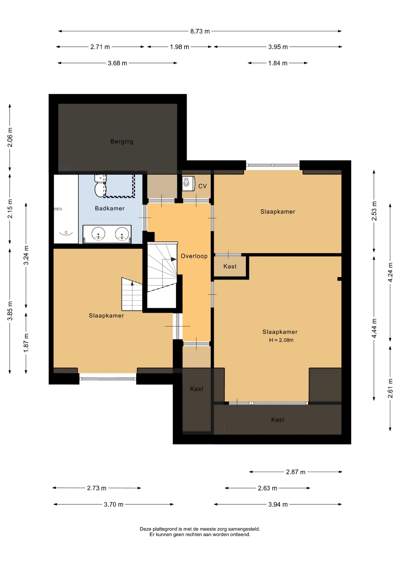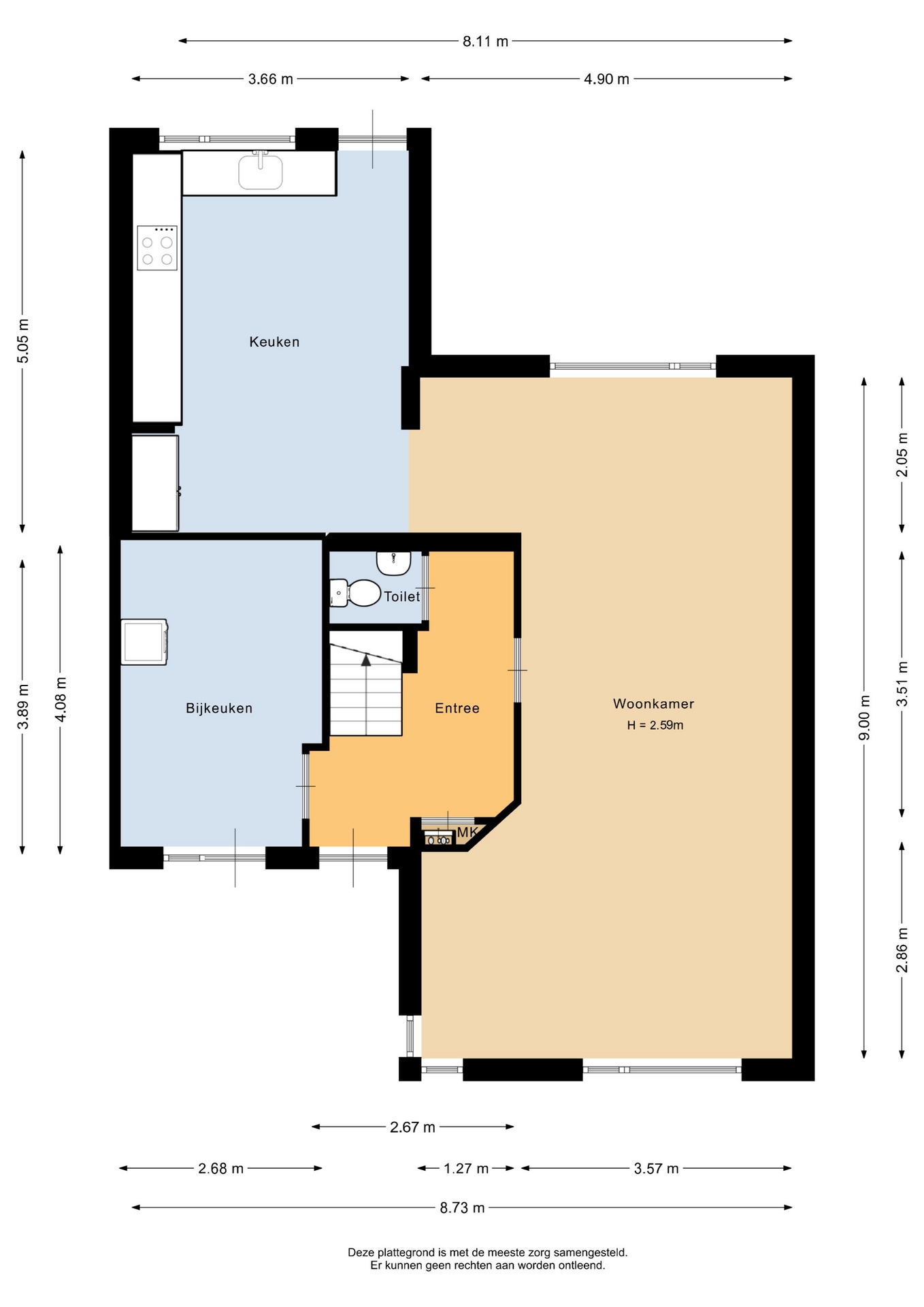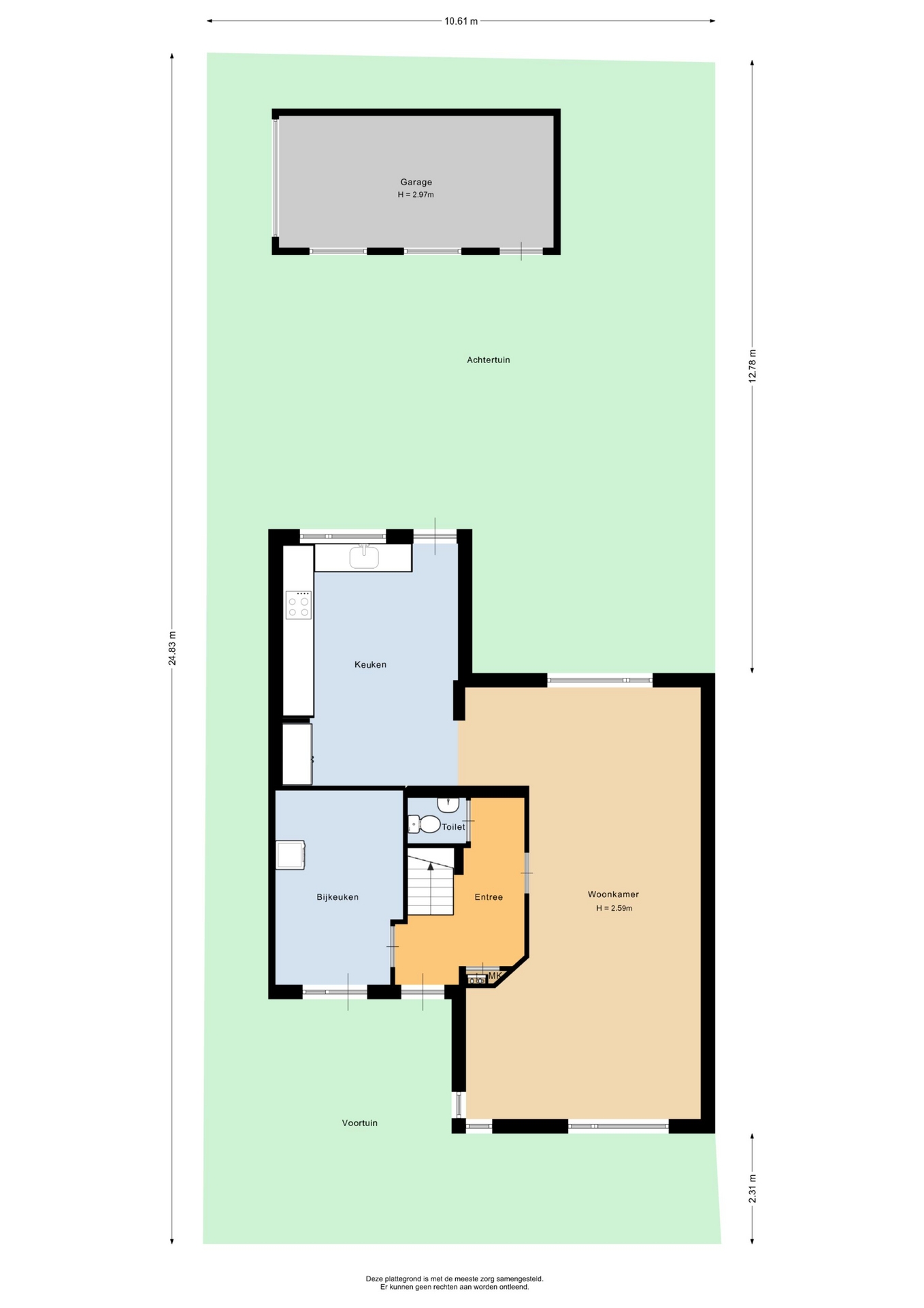 “Deze informatie is door ons met de nodige zorgvuldigheid samengesteld. Onzerzijds wordt echter geen enkele aansprakelijkheid aanvaard voor enige onvolledigheid, onjuistheid of anderszins, dan wel de gevolgen daarvan. Alle opgegeven maten en oppervlakten zijn indicatief.”