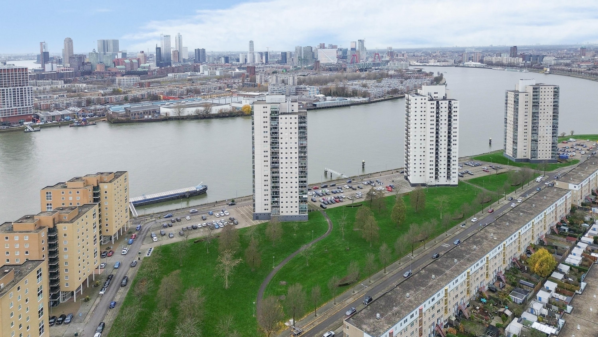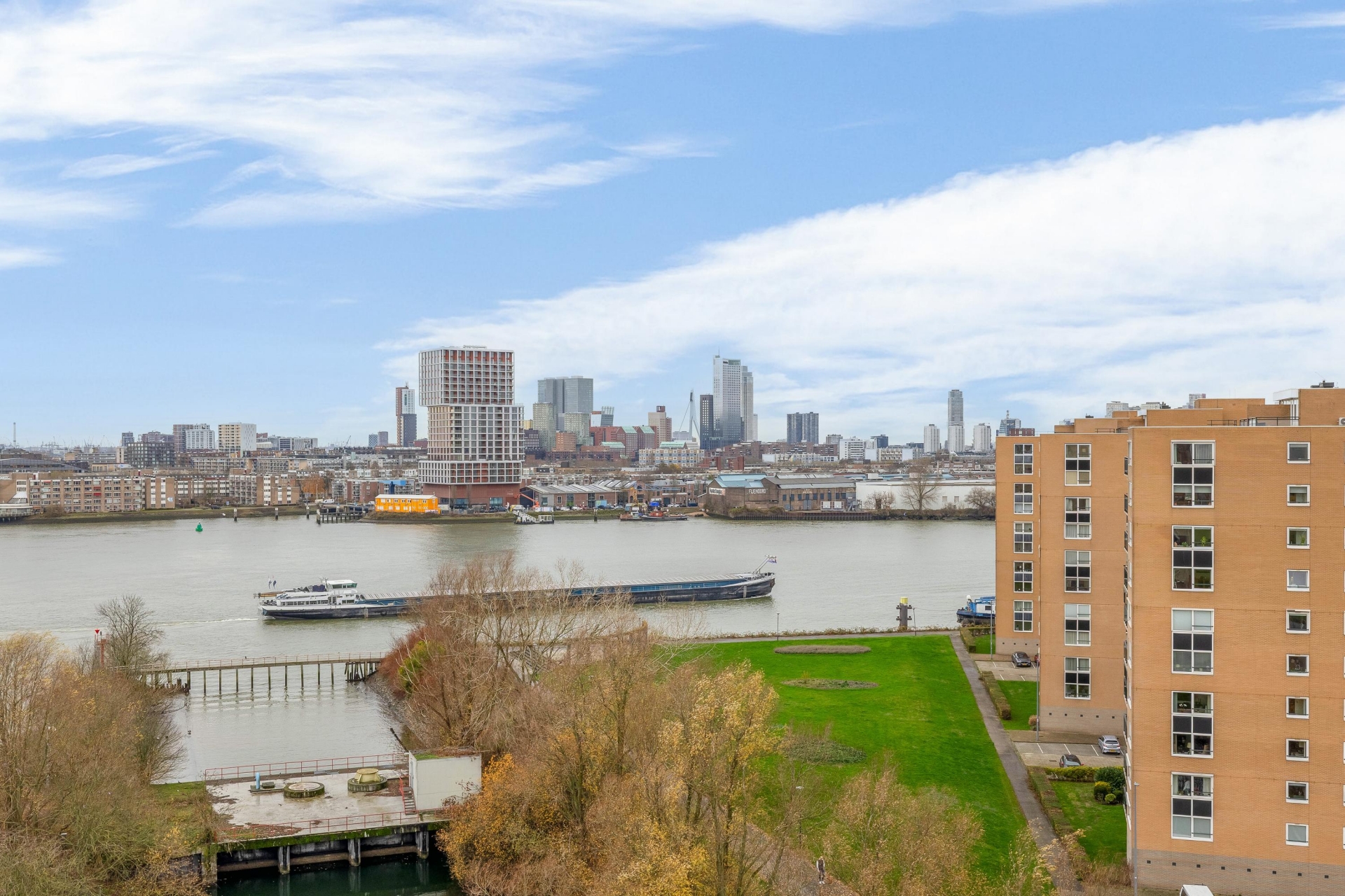 - Uitzicht over de skyline van Rotterdam en de Maas