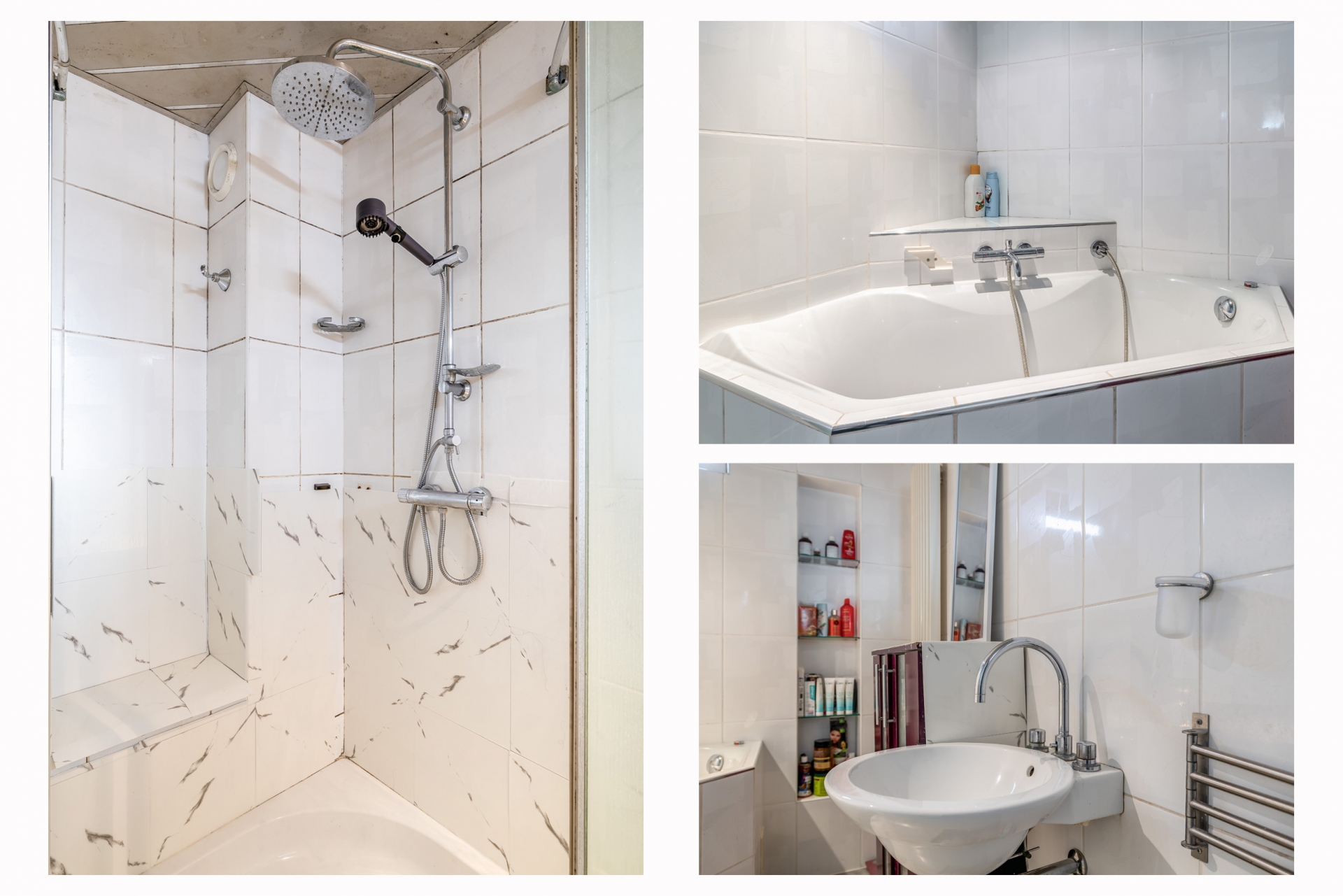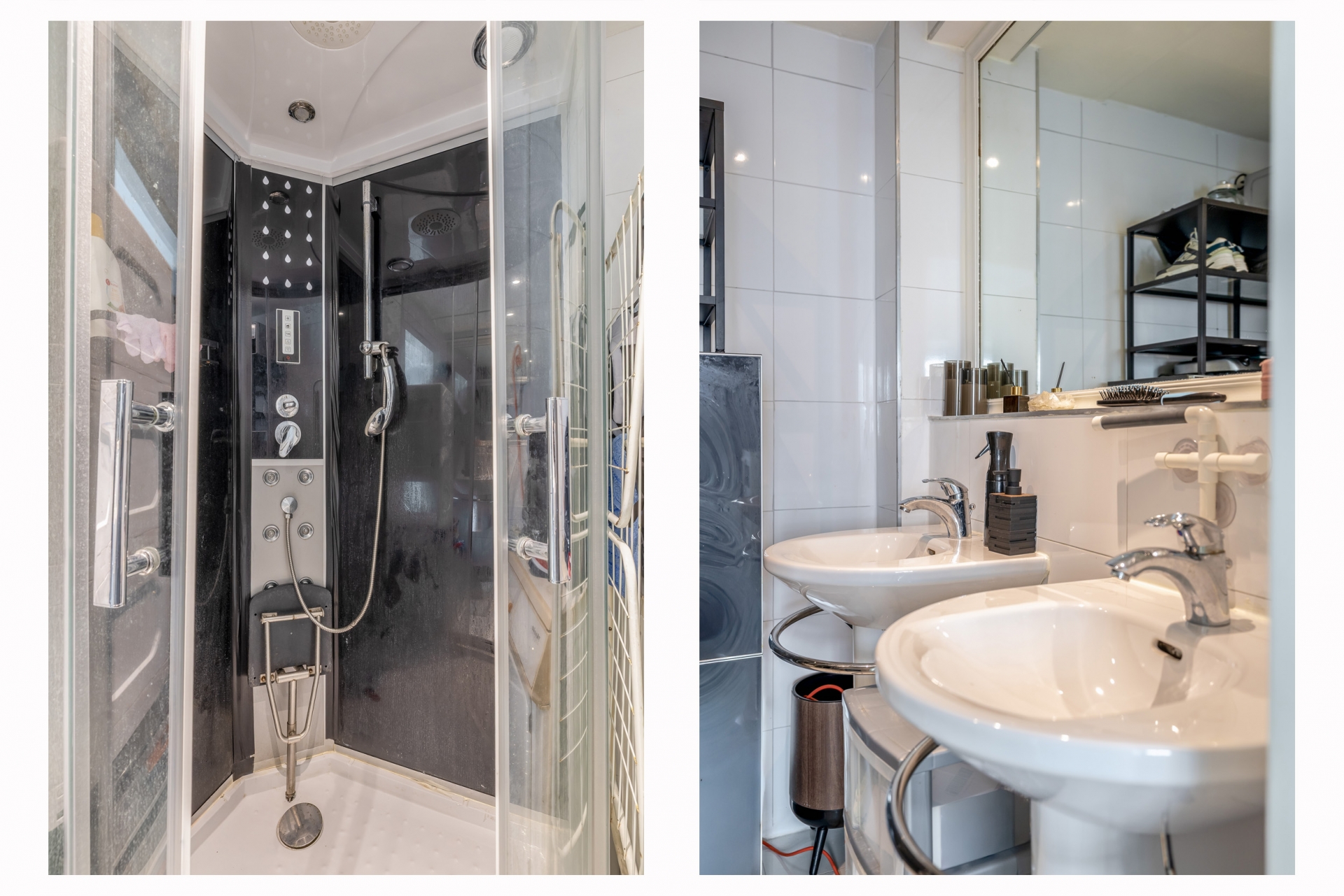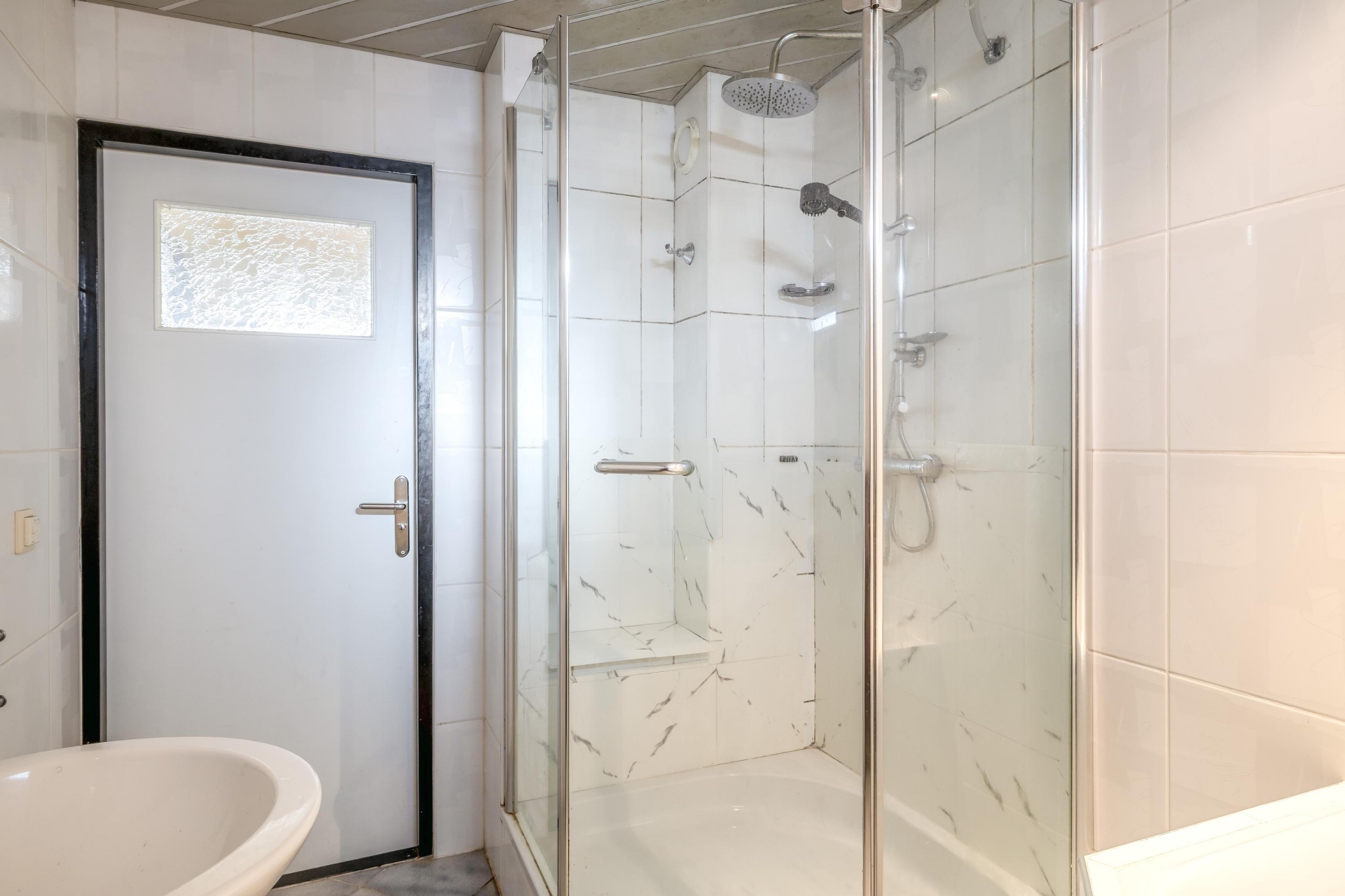 Uniek aan deze woning is de levensloopbestendige indeling op de begane grond: er is hier een ruime slaapkamer én een badkamer aanwezig. Deze badkamer is voorzien van een moderne douchecabine, dubbele wastafel en de aansluitingen voor wasmachine en droger. Ideaal voor gebruik als gelijkvloers wonen of voor logees/familieleden die liever beneden slapen.