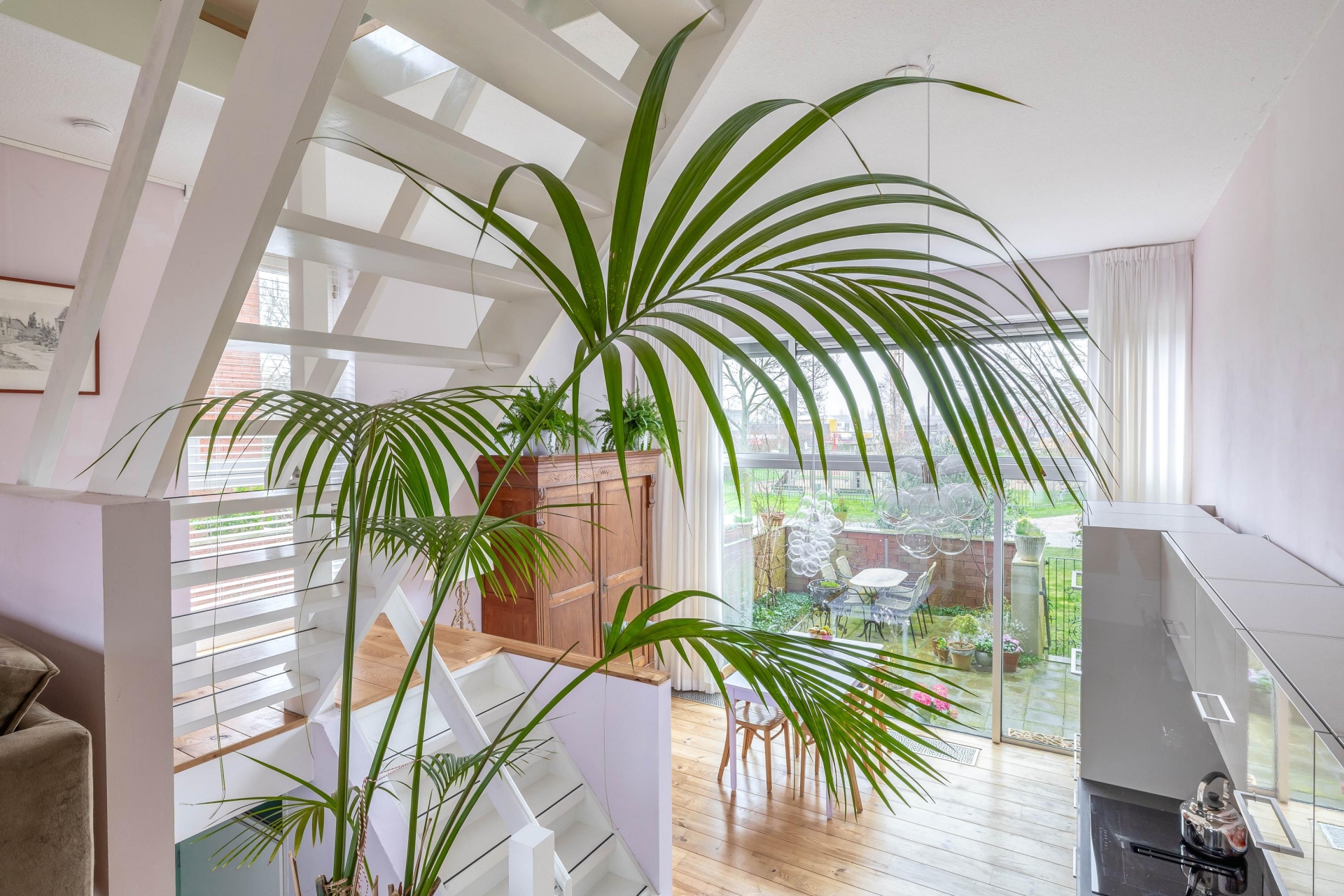 Het terras is gelegen op het zuiden en grenst direct aan het park. Hier geniet je volop van de zon, privacy en het groene uitzicht. Een kop koffie in de ochtendzon of een borrel aan het einde van de dag – dit is echt een verlengstuk van je woonkamer.