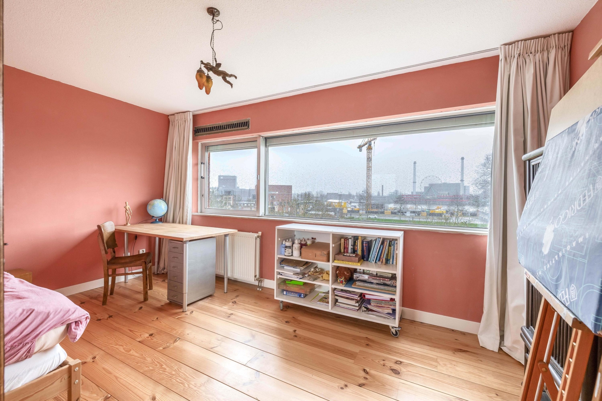 Dit is zo’n huis dat je niet vaak tegenkomt. Gelegen op misschien wel de mooiste plek van Katendrecht, direct aan het Kaappark, met vrij uitzicht op de SS Rotterdam en de bedrijvigheid op de Maas. Hier woon je aan de rand van het centrum, maar toch in alle rust. Geen doorgaand verkeer voor de deur, wel groen en water als je naar buiten kijkt. De splitlevel indeling zorgt voor een speelse opzet en een verrassend ruimtelijk gevoel. Dankzij de verschillende niveaus en de grote raampartijen voelt de woning licht en open aan. De woning is volledig geïsoleerd en voorzien van dubbele beglazing. De kozijnen zijn in 2021 nog geschilderd en het huis is recent opnieuw in de verf gezet. Aan de voor- en zijgevel zijn houten kozijnen toegepast, terwijl de achtergevel is uitgevoerd met aluminium kozijnen. Deze achtergevel ligt op het zuiden; aluminium is hier bewust gekozen vanwege de duurzaamheid en het beperkte onderhoud bij maximale zonbelasting.