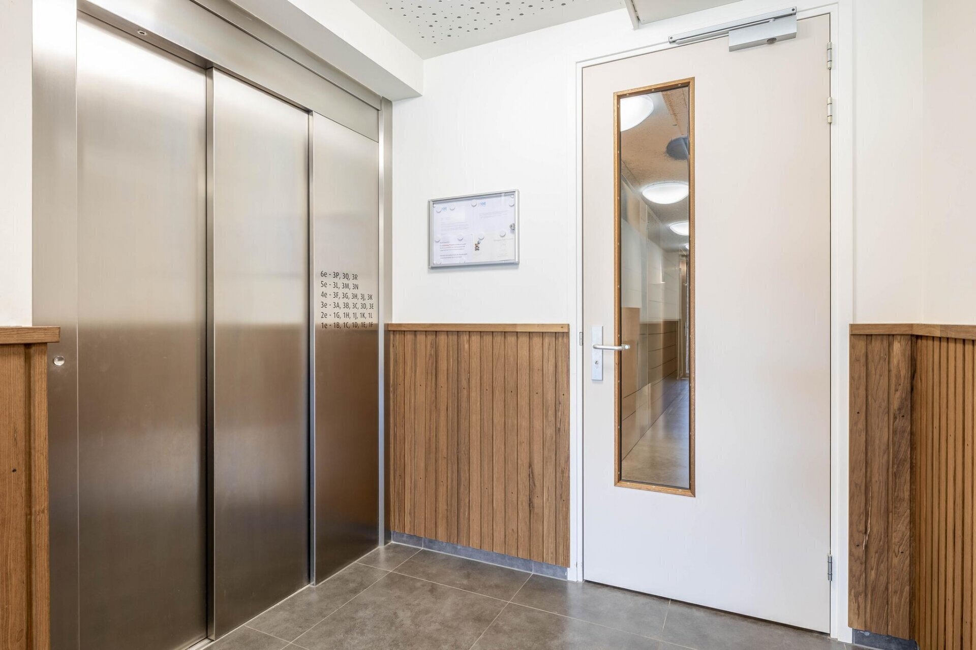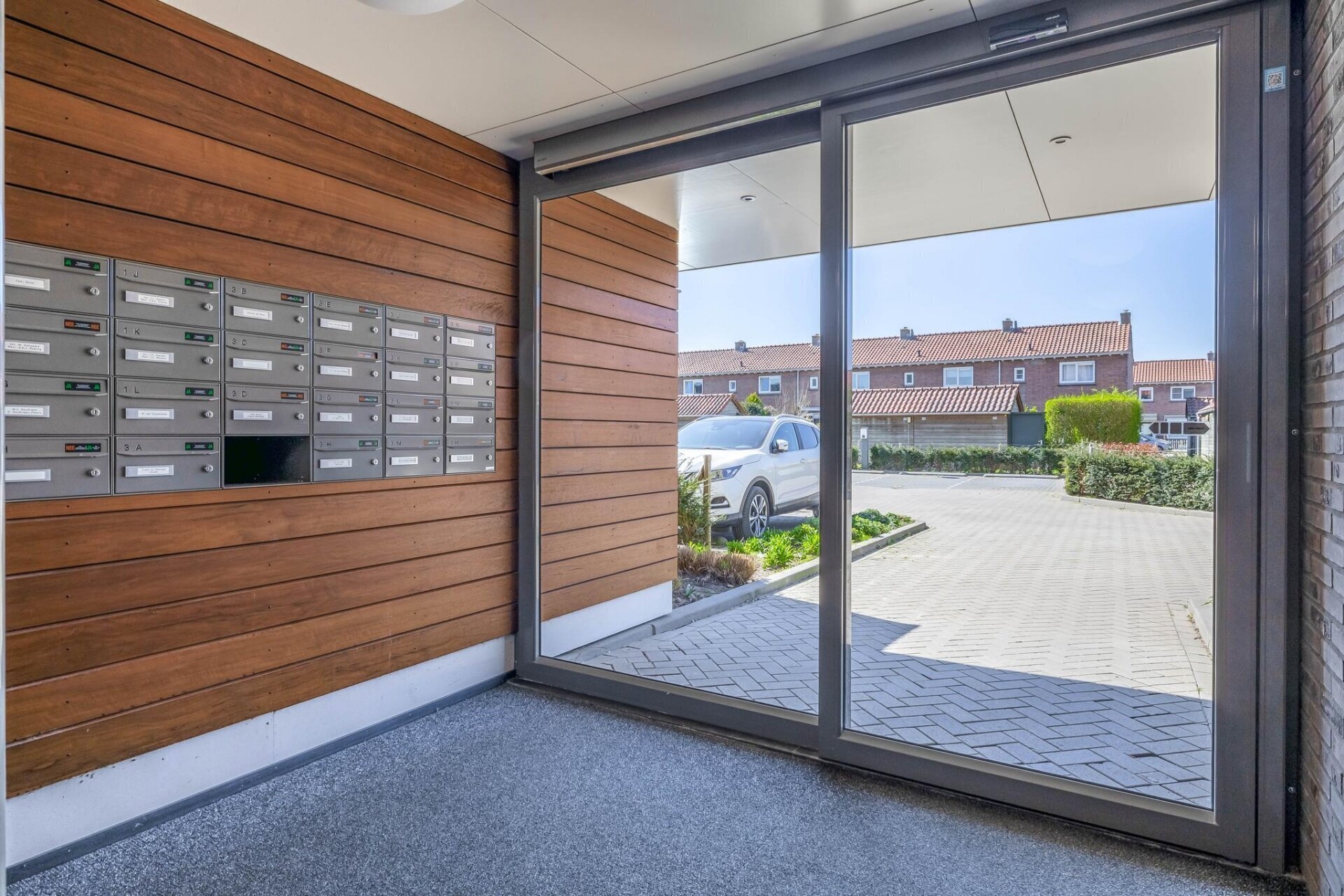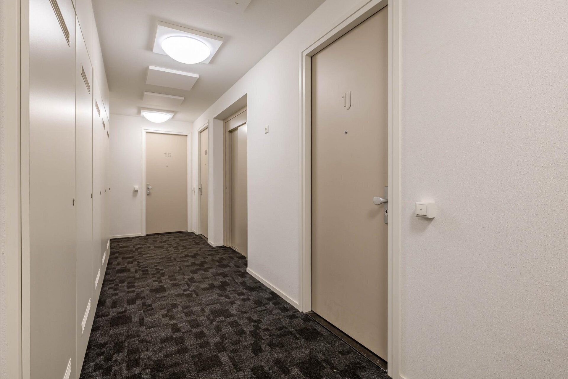 Afgesloten entree met videofooninstallatie en brievenbussen. Op de begane grond tref je ook de toegang tot de bergingen, de lift en het trappenhuis. Het appartement komt met één parkeerplaats. Alle parkeerplaatsen bevinden zich buiten op het afgesloten terrein van het appartementencomplex.