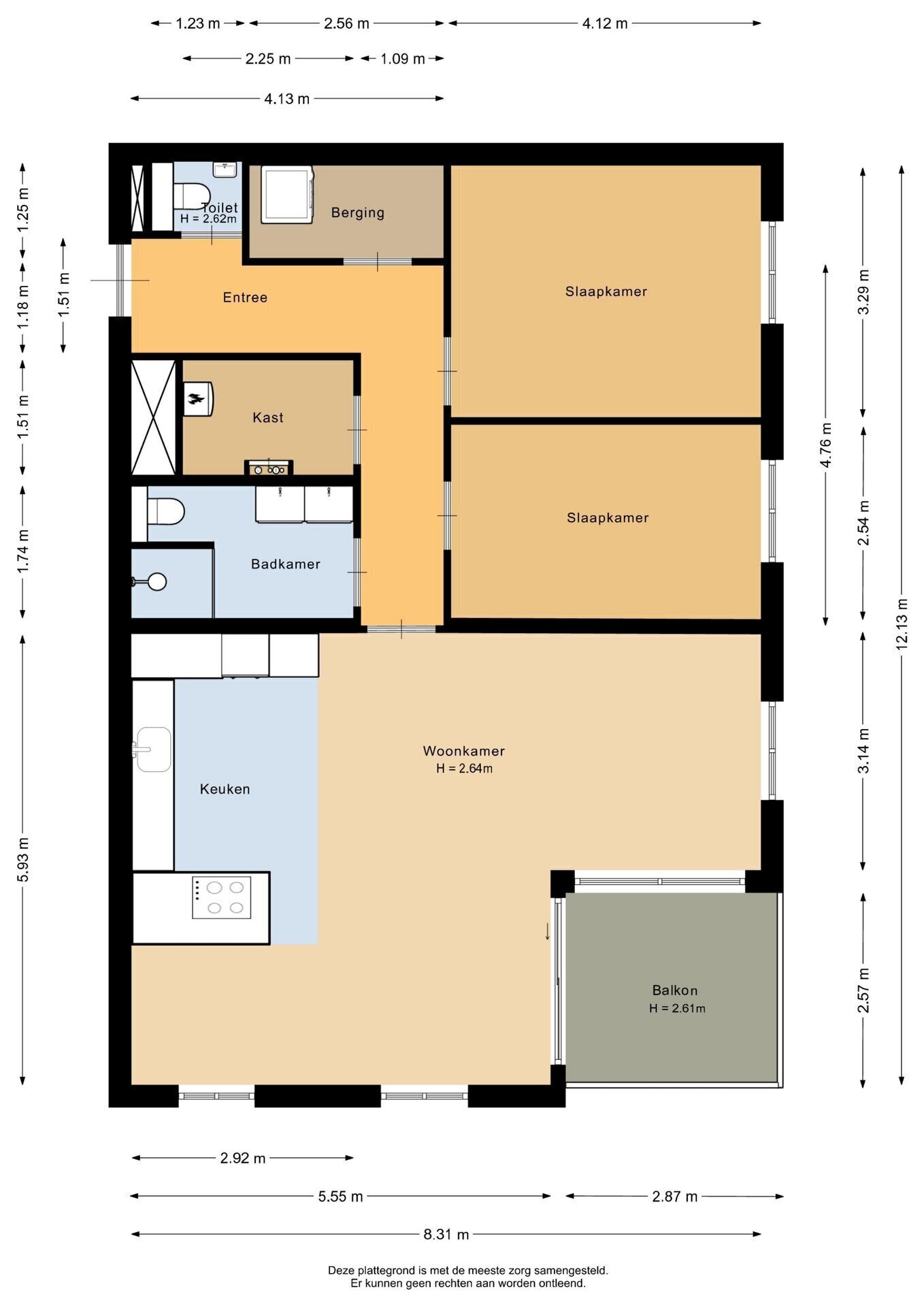 “Deze informatie is door ons met de nodige zorgvuldigheid samengesteld. Onzerzijds wordt echter geen enkele aansprakelijkheid aanvaard voor enige onvolledigheid, onjuistheid of anderszins, dan wel de gevolgen daarvan. Alle opgegeven maten en oppervlakten zijn indicatief.”
