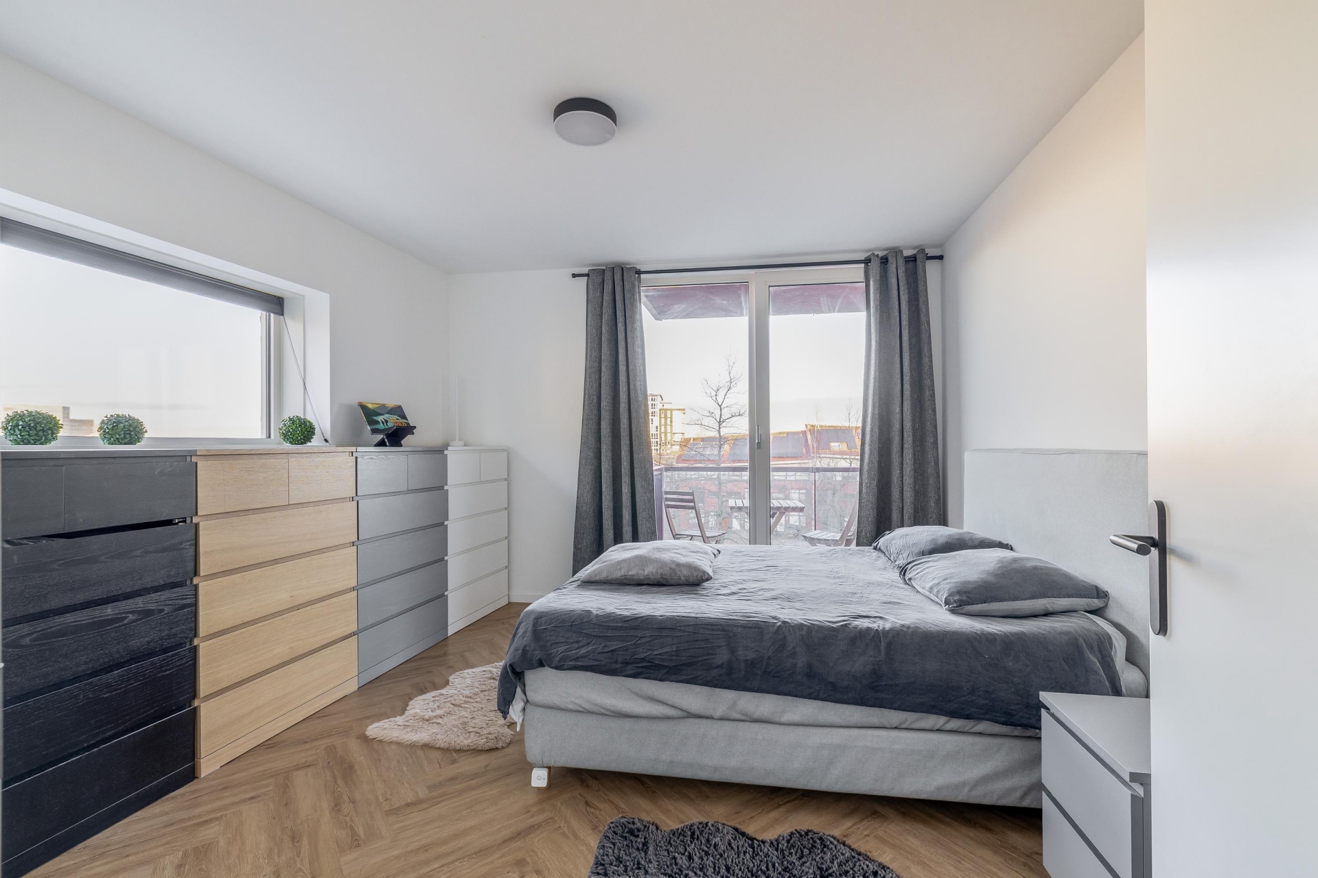 Het appartement beschikt over twee goed bemeten slaapkamers. De hoofdslaapkamer biedt voldoende ruimte voor een tweepersoonsbed en een grote kledingkast. De tweede slaapkamer is veelzijdig inzetbaar, bijvoorbeeld als werk-, logeer- of kinderkamer.