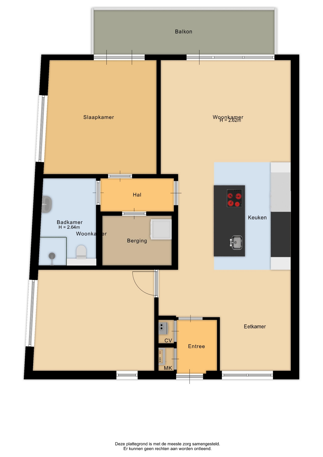 “Deze informatie is door ons met de nodige zorgvuldigheid samengesteld. Onzerzijds wordt echter geen enkele aansprakelijkheid aanvaard voor enige onvolledigheid, onjuistheid of anderszins, dan wel de gevolgen daarvan. Alle opgegeven maten en oppervlakten zijn indicatief.”