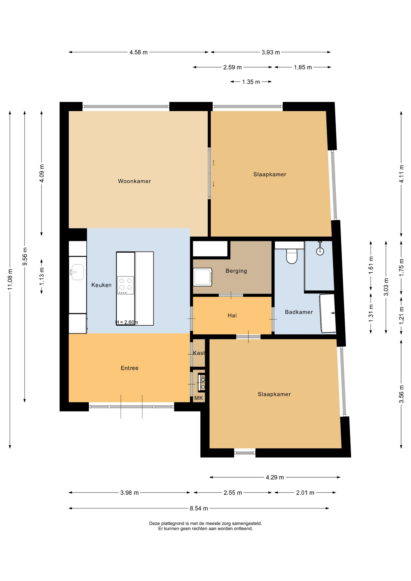 “Deze informatie is door ons met de nodige zorgvuldigheid samengesteld. Onzerzijds wordt echter geen enkele aansprakelijkheid aanvaard voor enige onvolledigheid, onjuistheid of anderszins, dan wel de gevolgen daarvan. Alle opgegeven maten en oppervlakten zijn indicatief.”