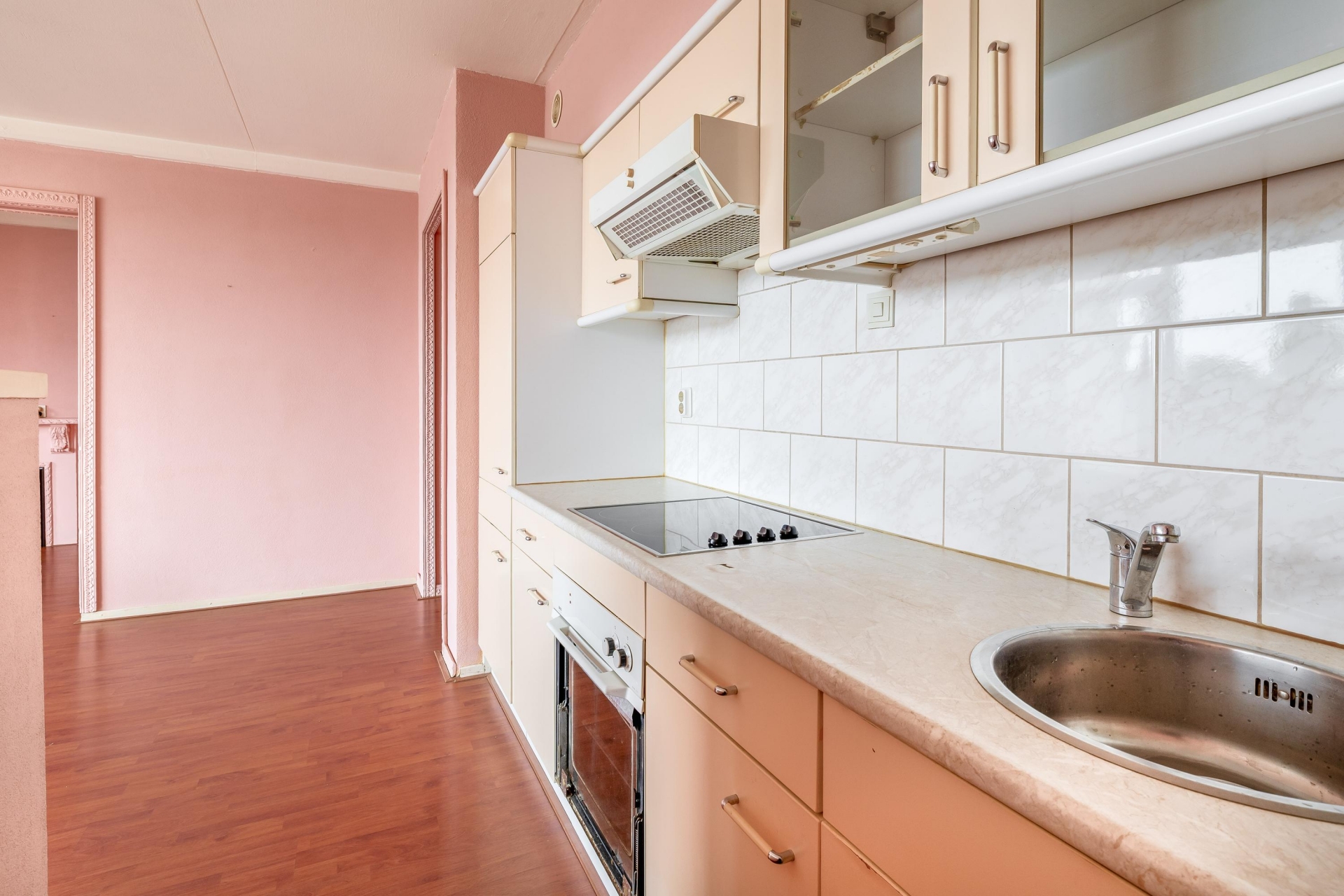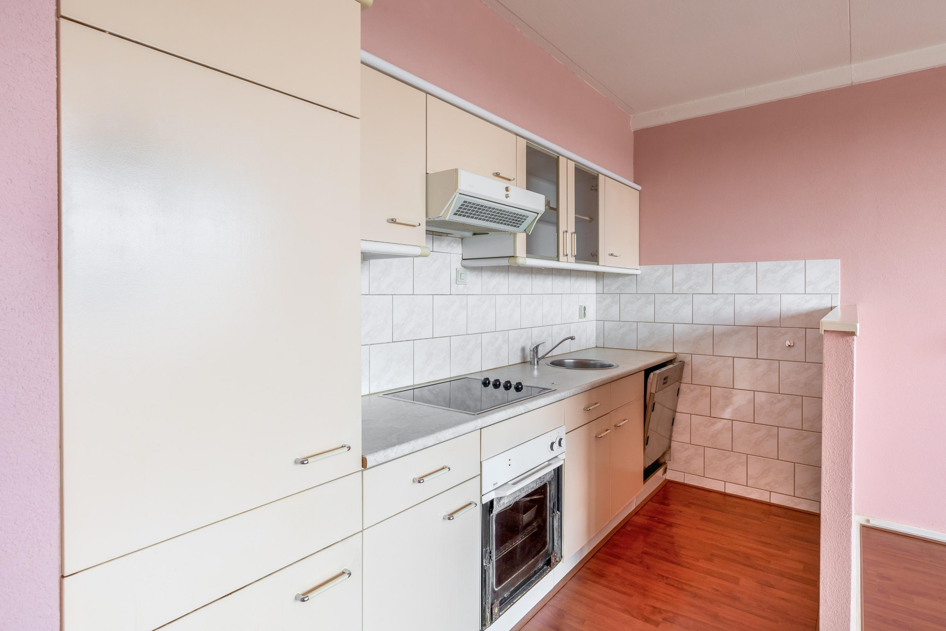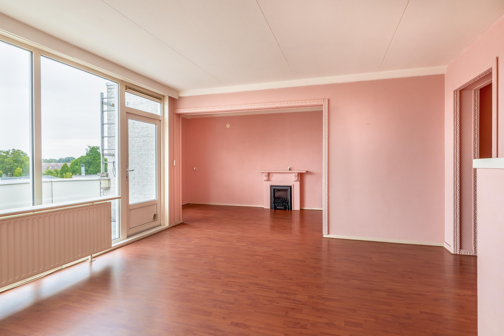 De woonkamer is heerlijk licht en sluit aan op de halfopen keuken, waardoor je een ruimtelijk gevoel hebt in het hart van het appartement. De eetkamer is groot genoeg om als aparte werk- of logeerkamer te gebruiken. De badkamer is volledig betegeld en voorzien van douche, wastafel en wasmachineaansluiting. Het toilet met fonteintje bevindt zich apart. En het balkon? Dat ligt op het zonnige zuiden, dus volop genieten van de middag- en avondzon.