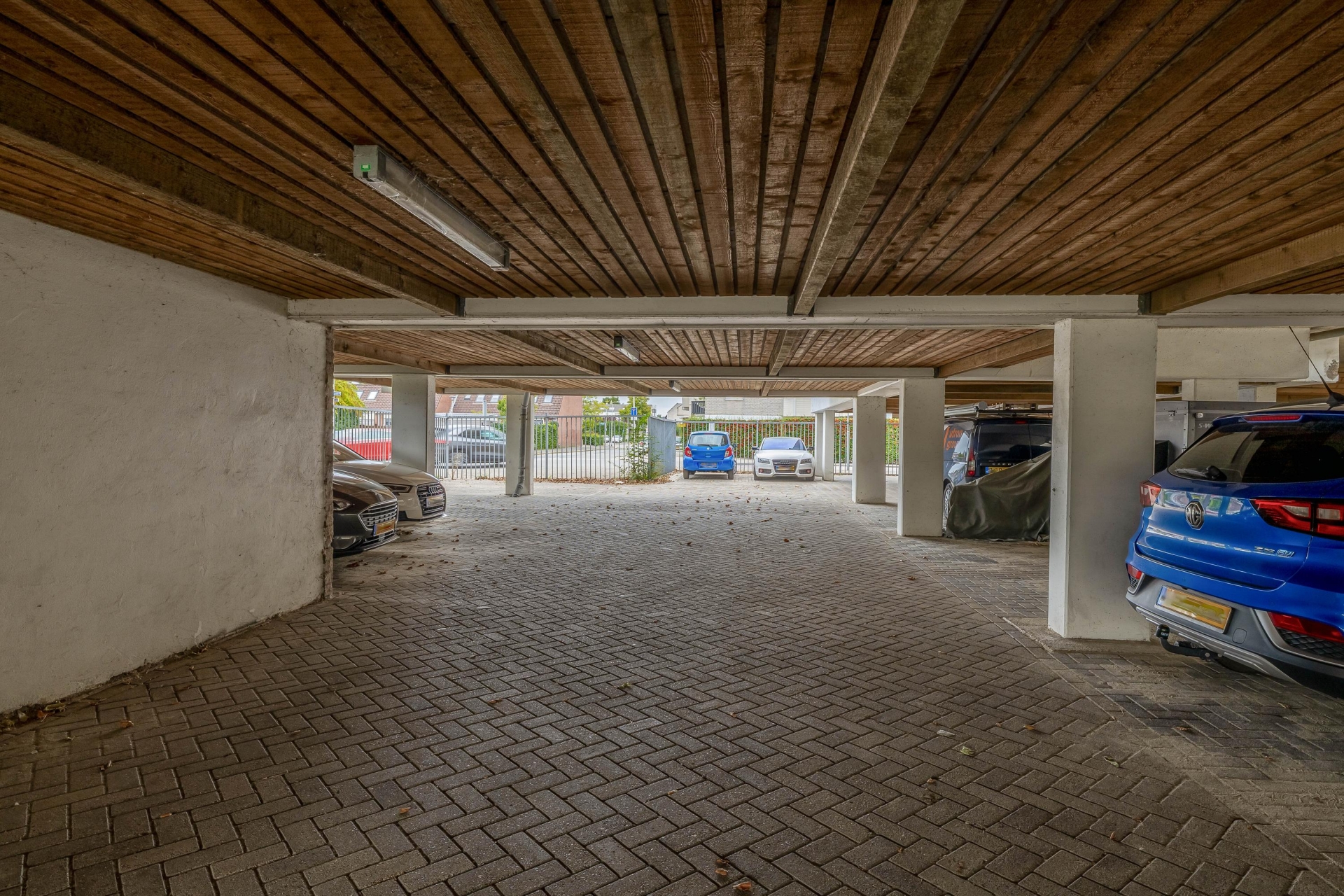 - Er is een eigen parkeerplaats en eigen berging op de begane grond. De parkeergarage is voor bewoners toegankelijk middels een elektrisch hek met afstandsbediening;