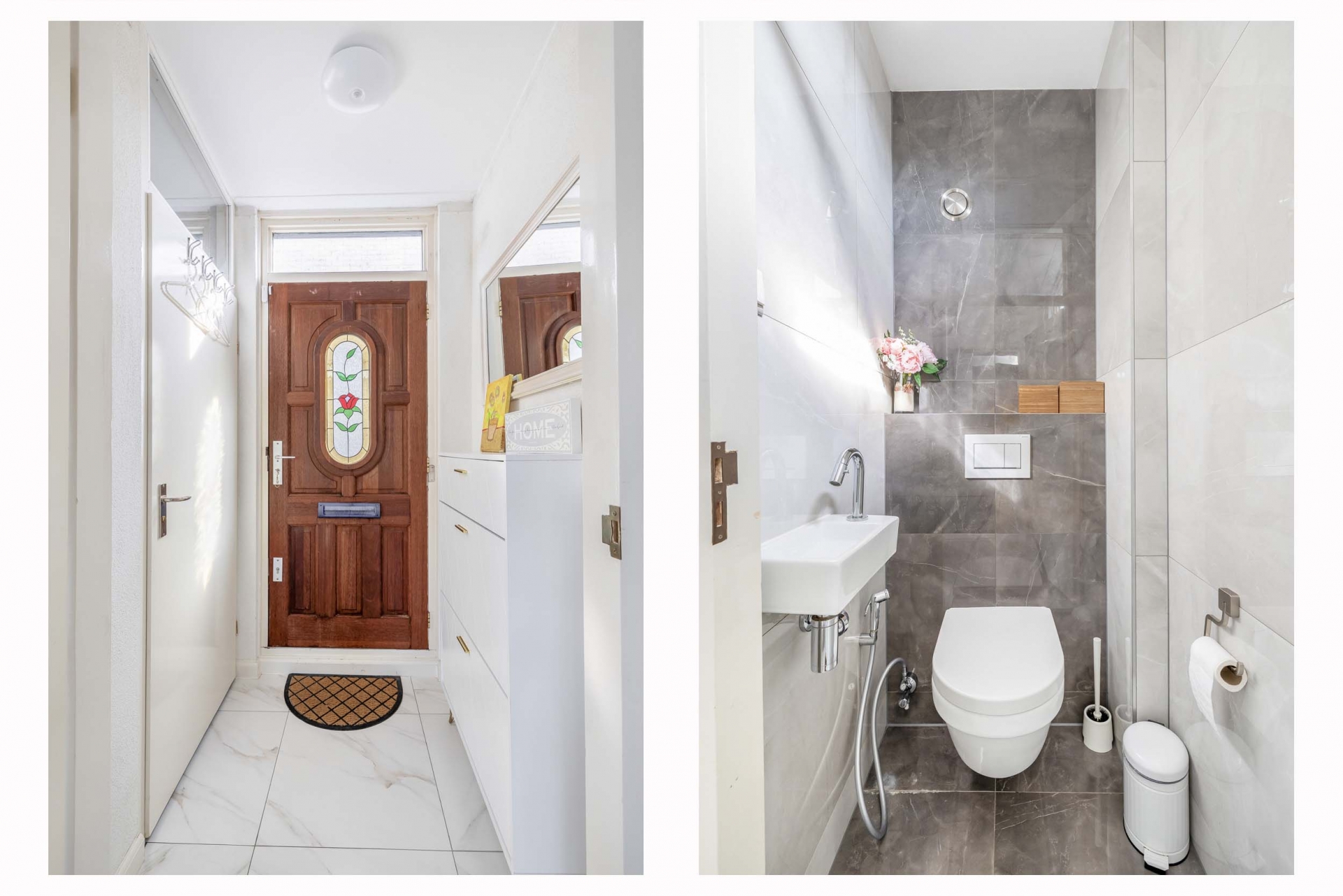 Entree, toilet met fontein. Trap naar zowel het souterrain als de 1e verdieping.
