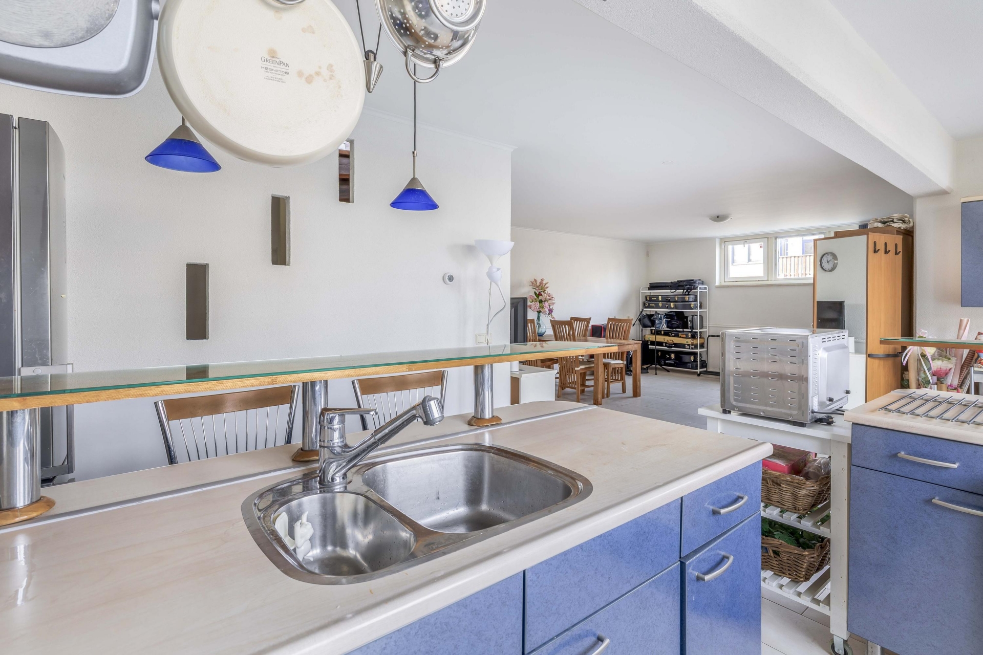 De grote open ruimte is thans in gebruik als woonkeuken, maar tevens is een hier een hobbyruimte gerealiseerd.