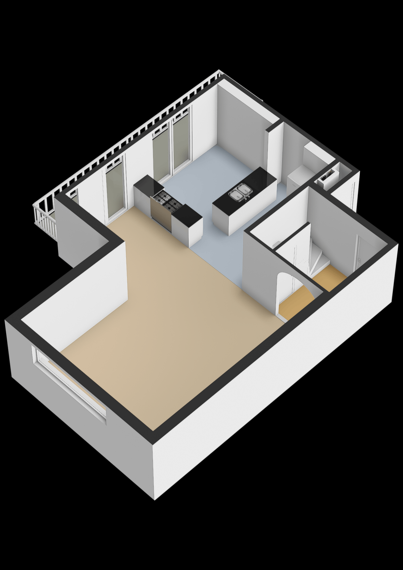 Dit appartement is met recht multifunctioneel te noemen. De ruimte in het souterrain is thans in gebruik als woonkeuken en hobby ruimte. Hier kunt u echter ook een ruimte voor uw bedrijf inrichten. De woonkamer op de begane grond is nog voorzien van de aansluitingen voor een keuken. Het is dus in theorie zelfs mogelijk om in het souterrain een eigen appartement in te richten voor bijvoorbeeld de kinderen.
