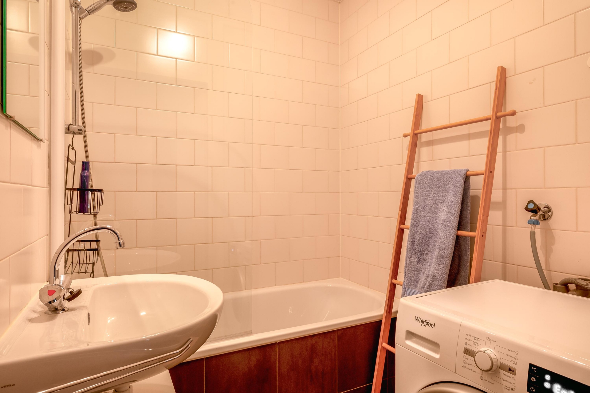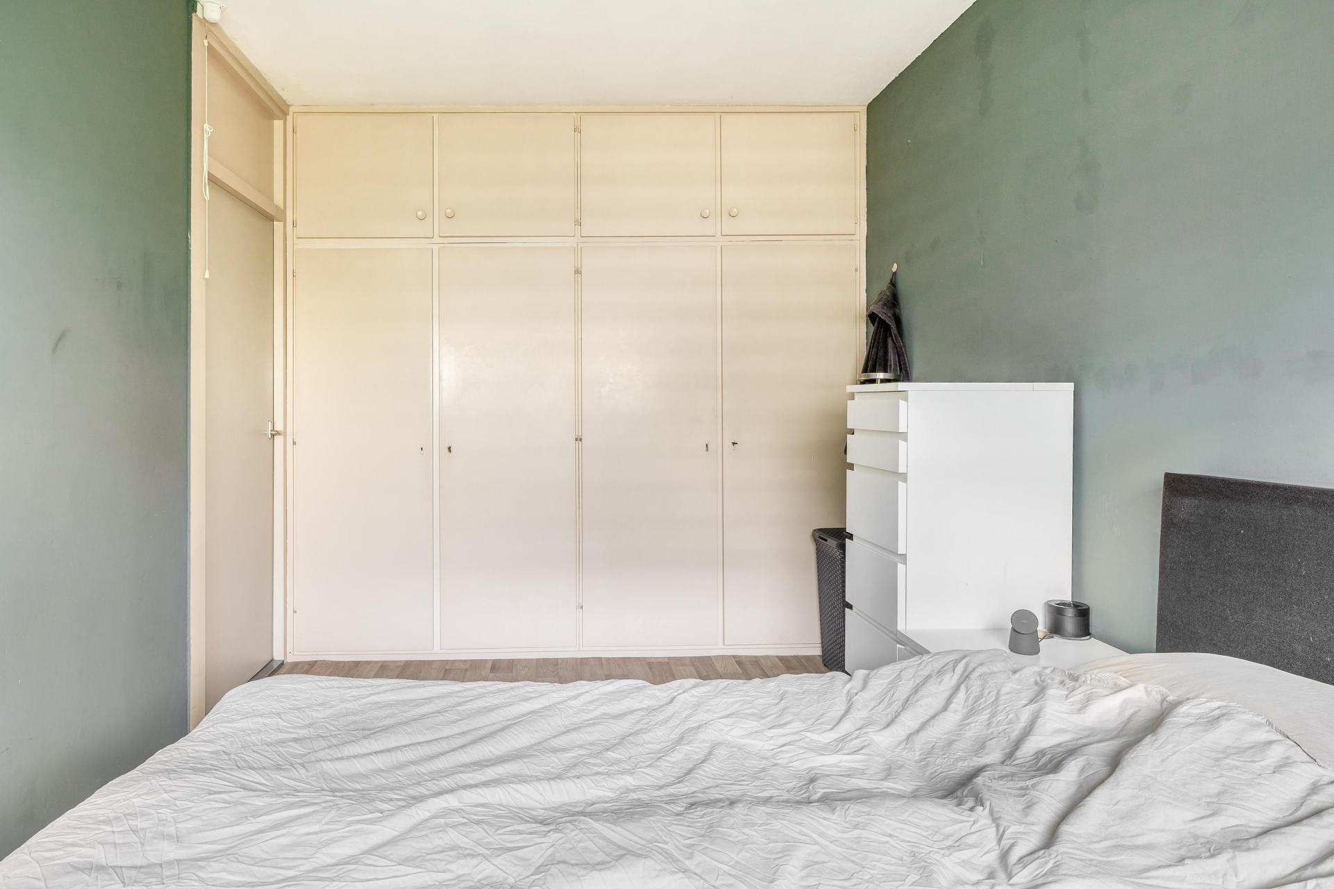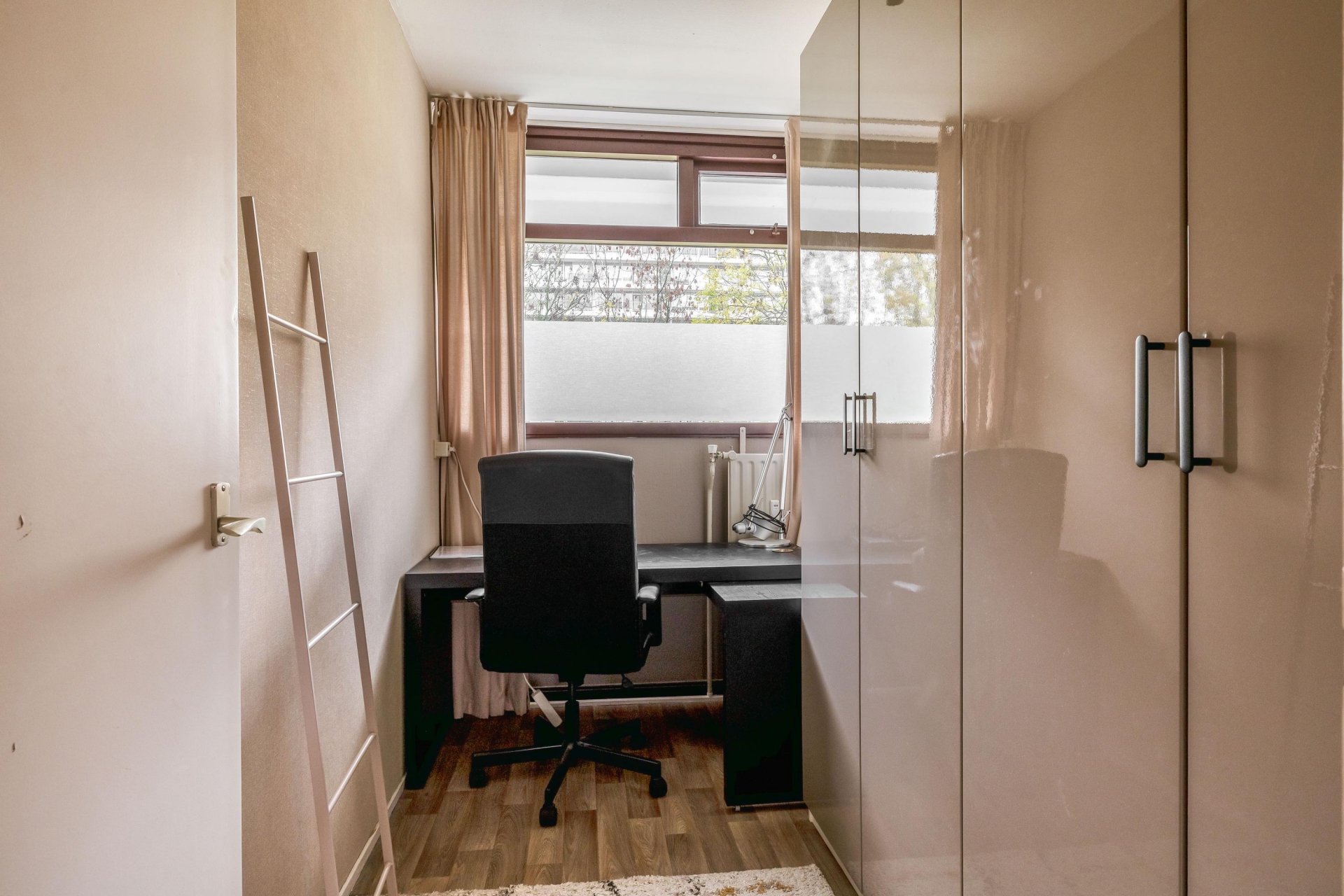 Het appartement telt twee slaapkamers. De grootste is ideaal als master bedroom en biedt ruimte voor een tweepersoonsbed en kledingkast. De tweede slaapkamer is perfect als logeerplek, thuiskantoor of hobbykamer. De badkamer is compact maar praktisch, met ligbad en douche, wastafel en aansluiting voor de wasmachine. Het toilet is separaat, wat prettig is voor het dagelijkse gebruik.