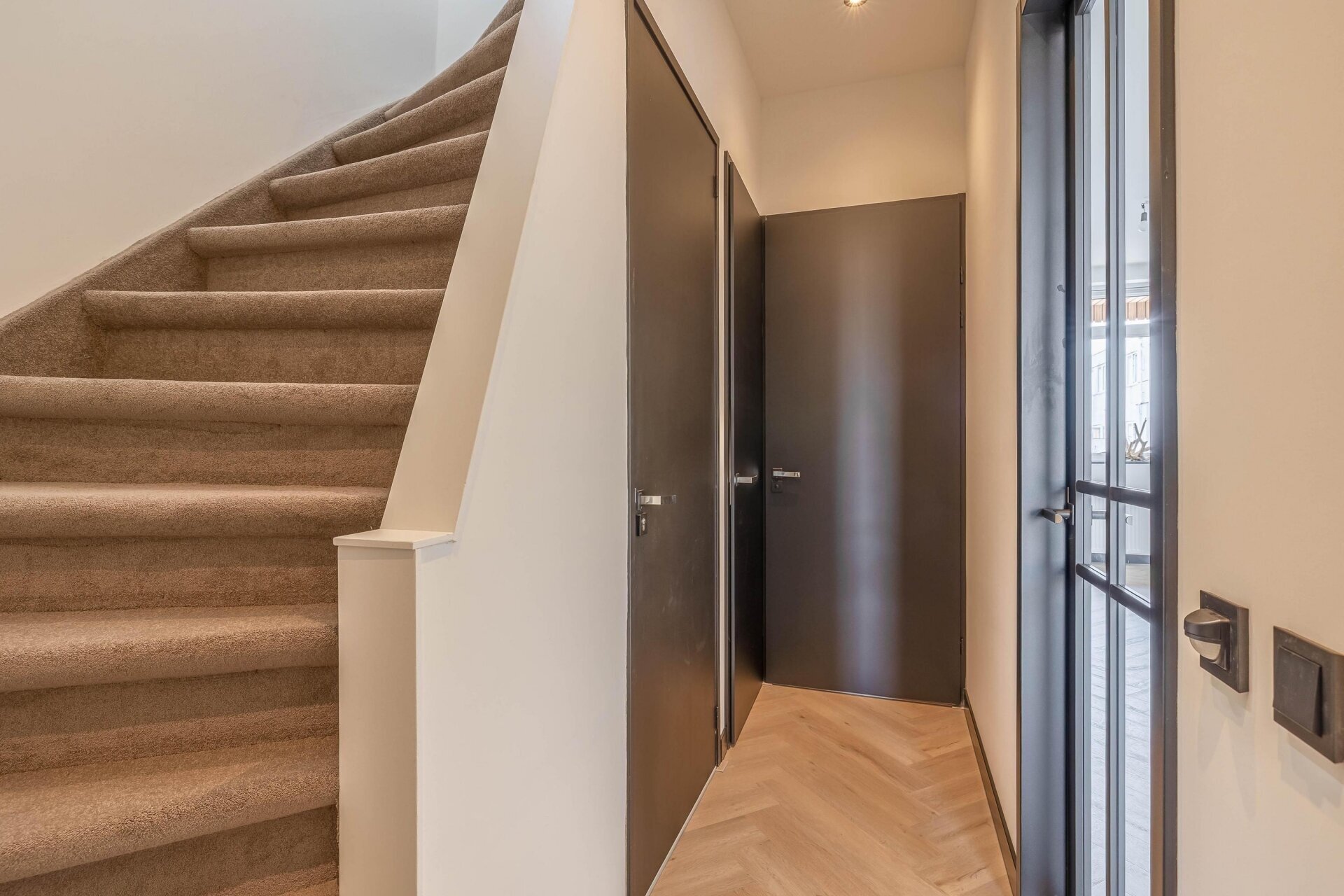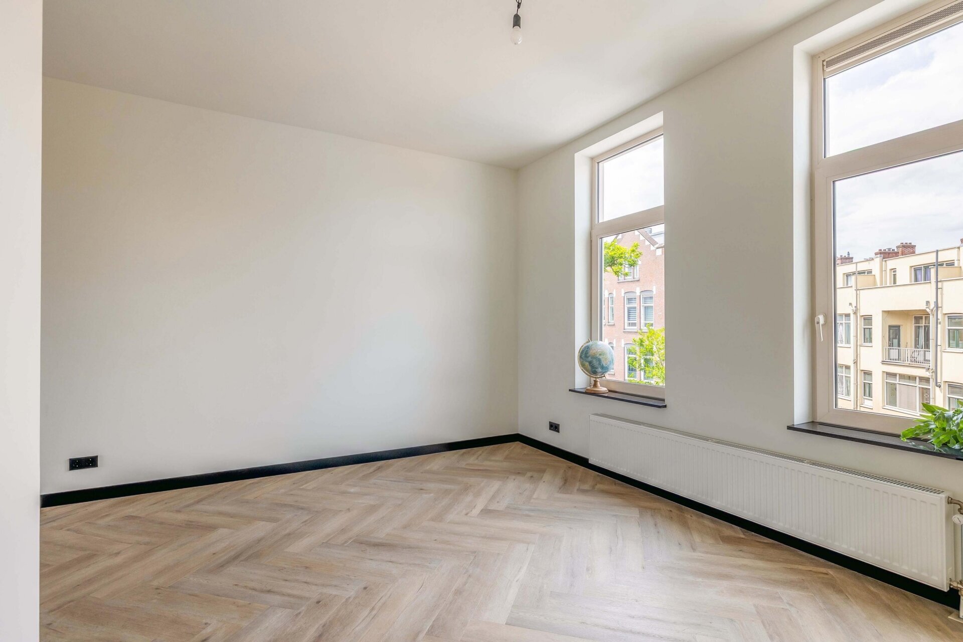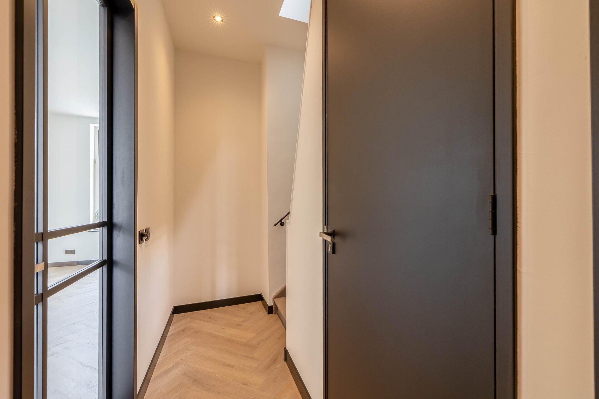 - Visgraat PVC-vloer, glad stucwerk in alle vertrekken en stoffering boven