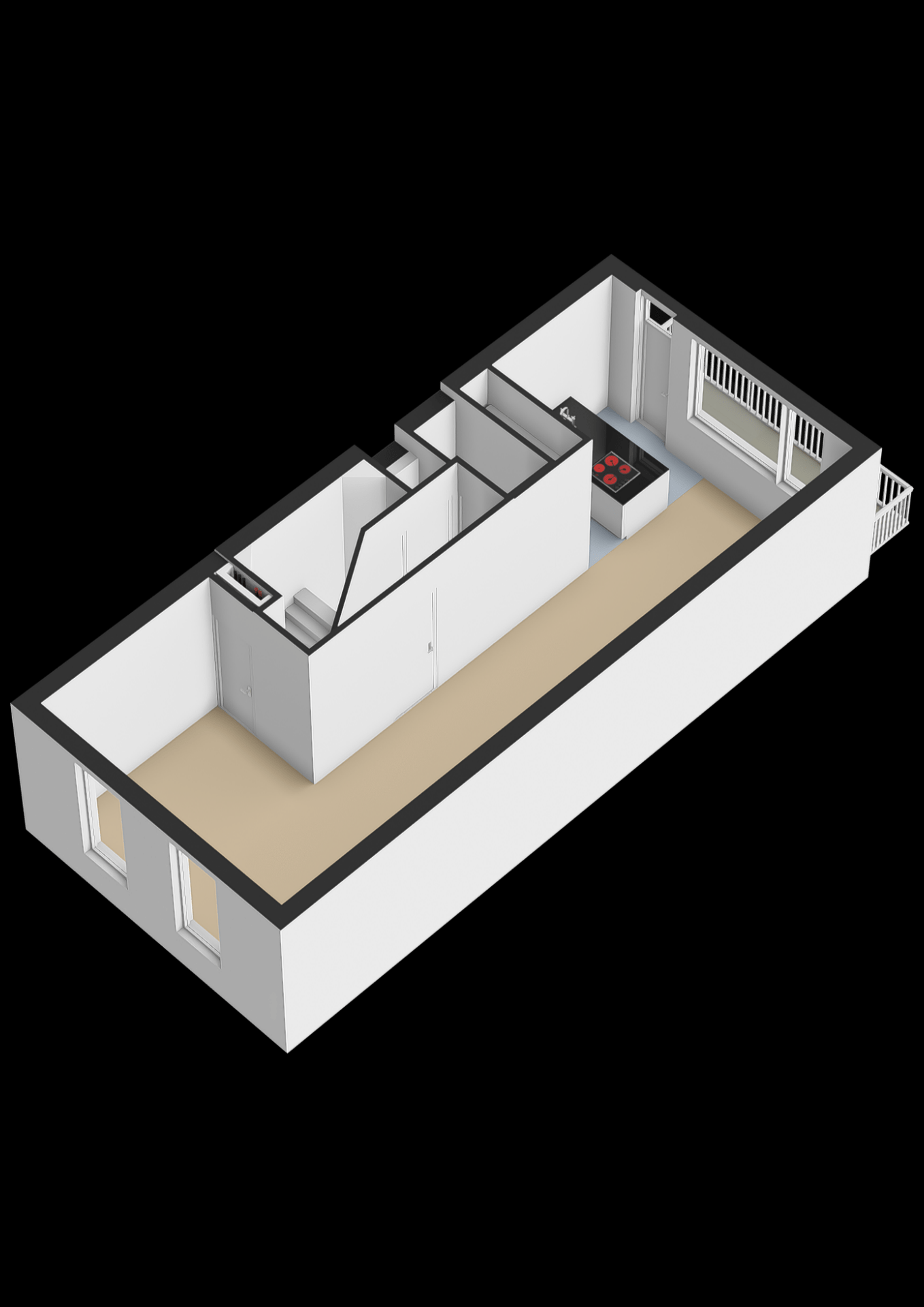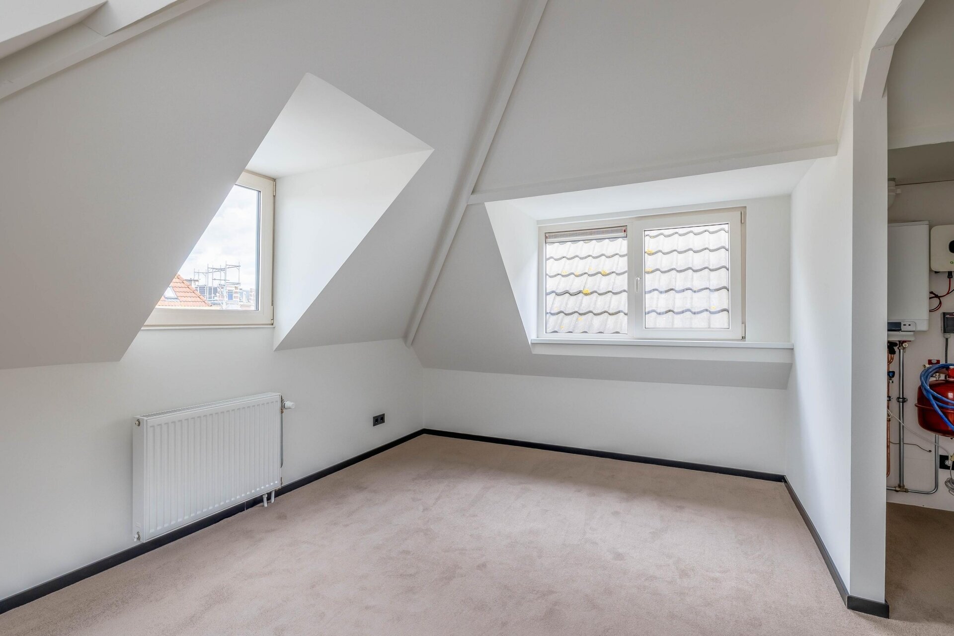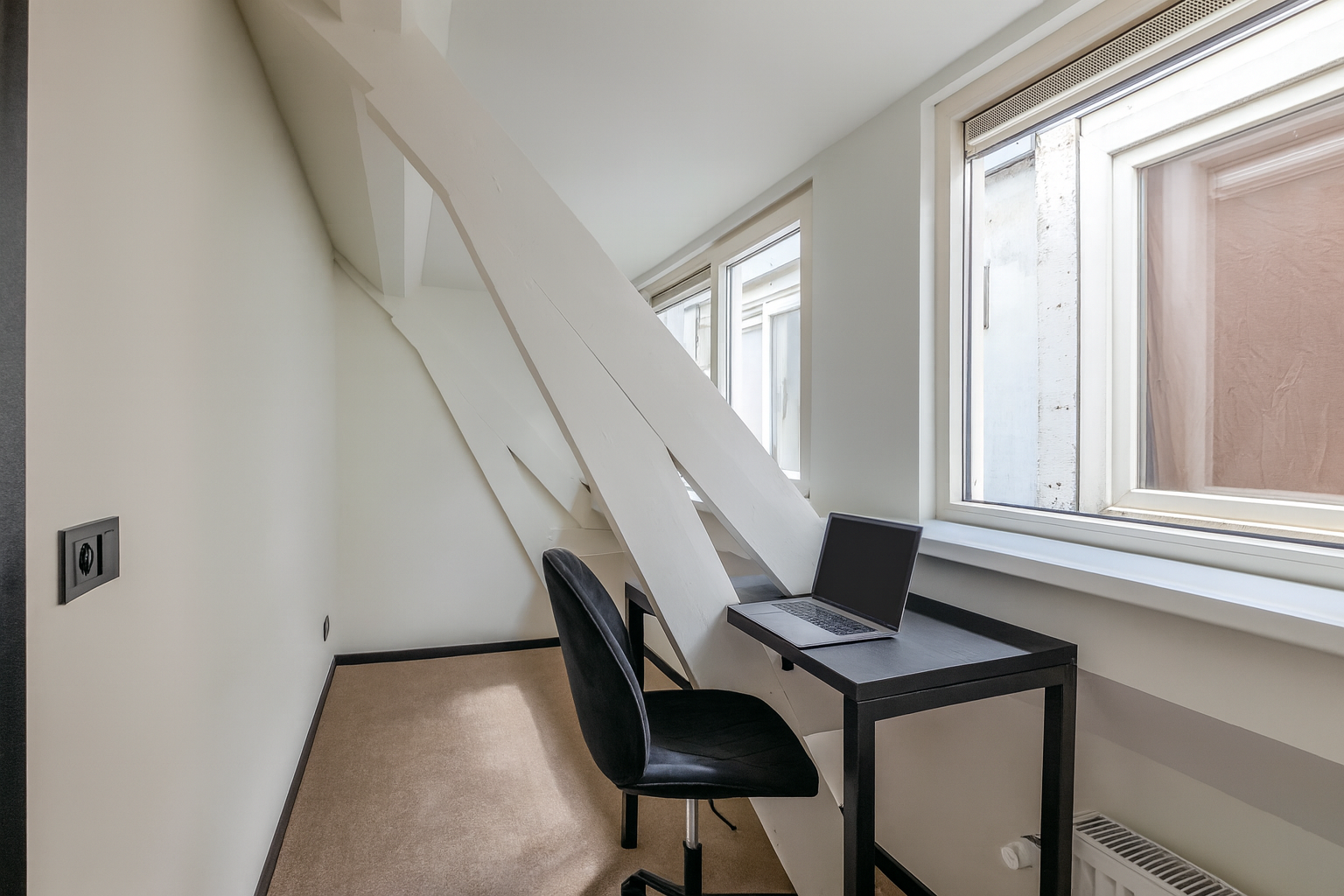 - Visgraat PVC-vloer, glad stucwerk in alle vertrekken en stoffering boven
