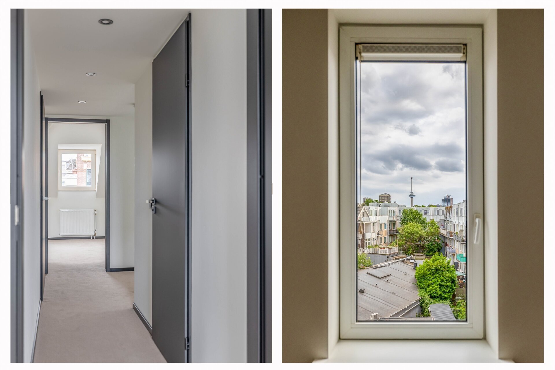 Aan de achterzijde is de luxe, open keuken, gesitueerd met kookeiland, ingebouwde apparatuur en voldoende werk- en opbergruimte. Perfect voor wie van koken én gezelligheid houdt. Hier kook je met uitzicht op de Euromast! De badkamer is volledig betegeld en uitgerust met een ruime inloopdouche, een modern wastafelmeubel én elektrische vloerverwarming. Dankzij de hoogwaardige afwerking, strakke belijning en handige details voelt deze ruimte als een dagelijks wellness-moment.