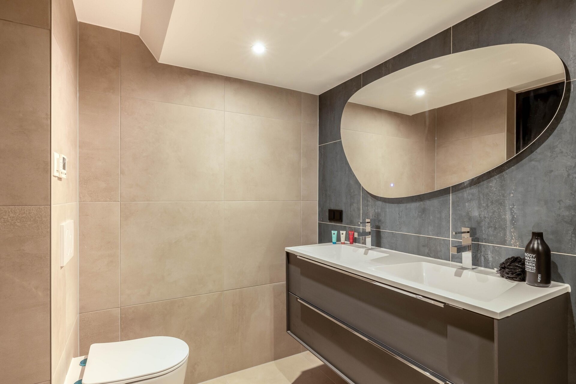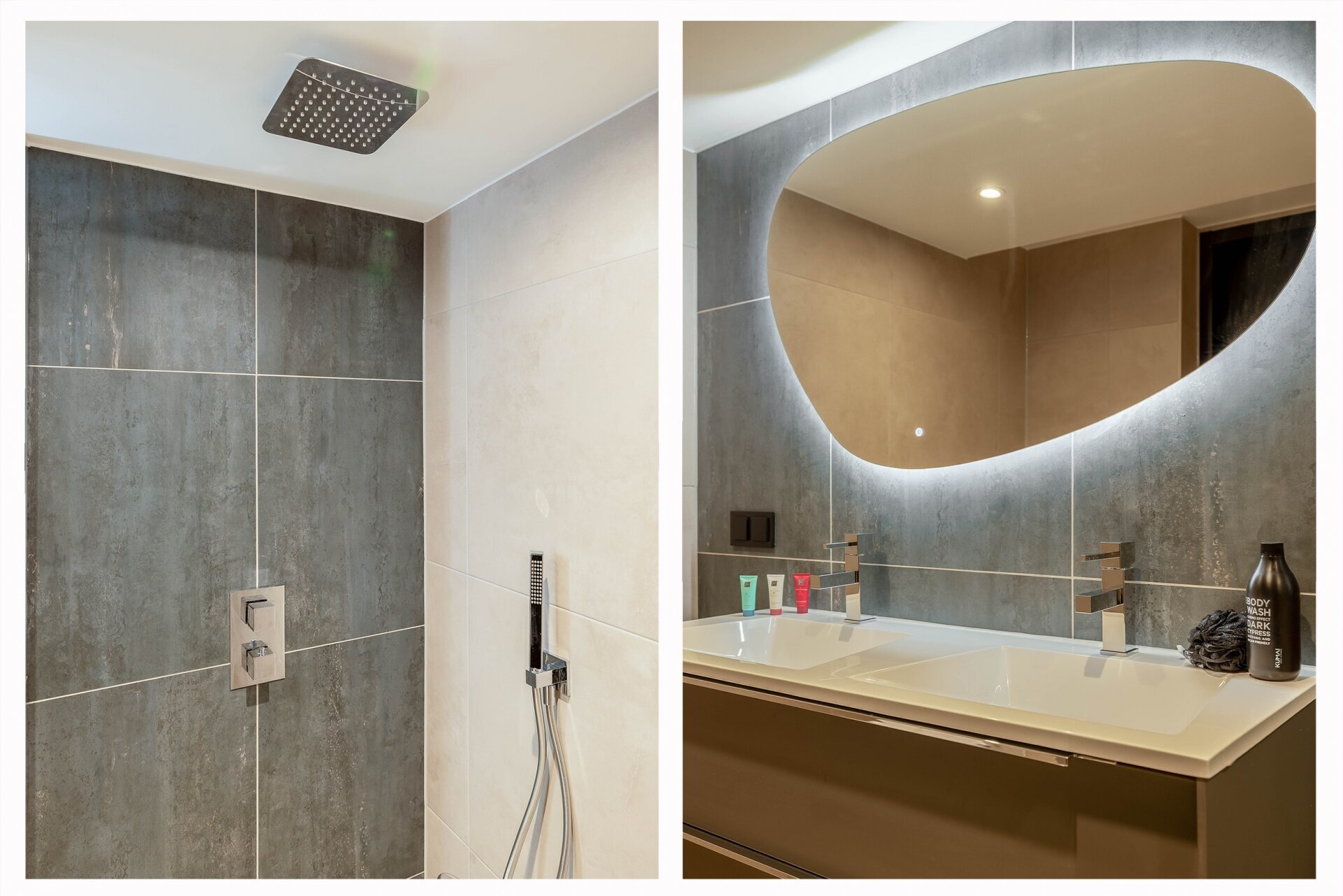 - Strakke badkamer met inloopdouche en wastafelmeubel