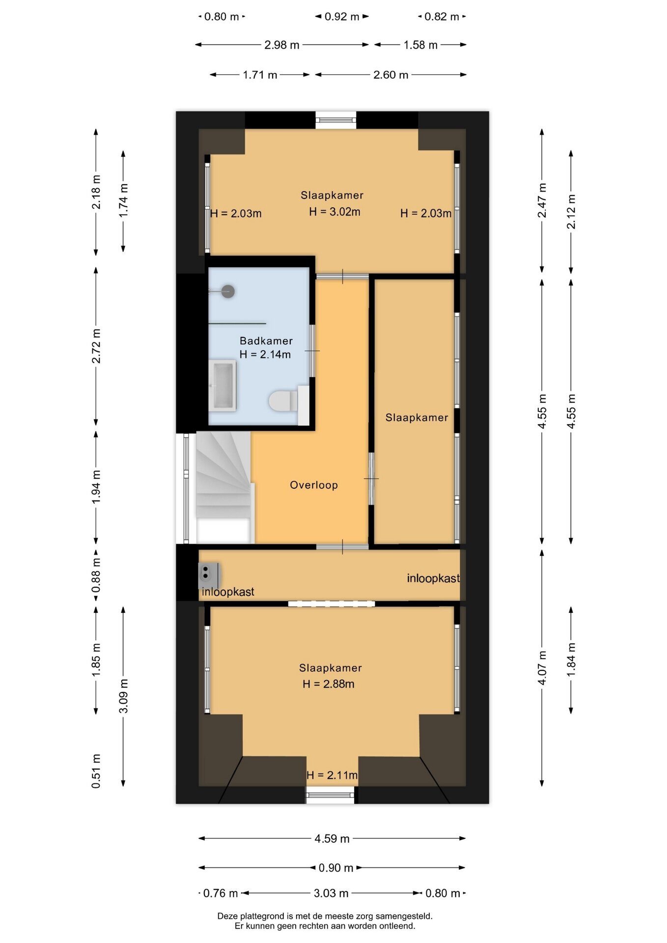“Deze informatie is door ons met de nodige zorgvuldigheid samengesteld. Onzerzijds wordt echter geen enkele aansprakelijkheid aanvaard voor enige onvolledigheid, onjuistheid of anderszins, dan wel de gevolgen daarvan. Alle opgegeven maten en oppervlakten zijn indicatief.”