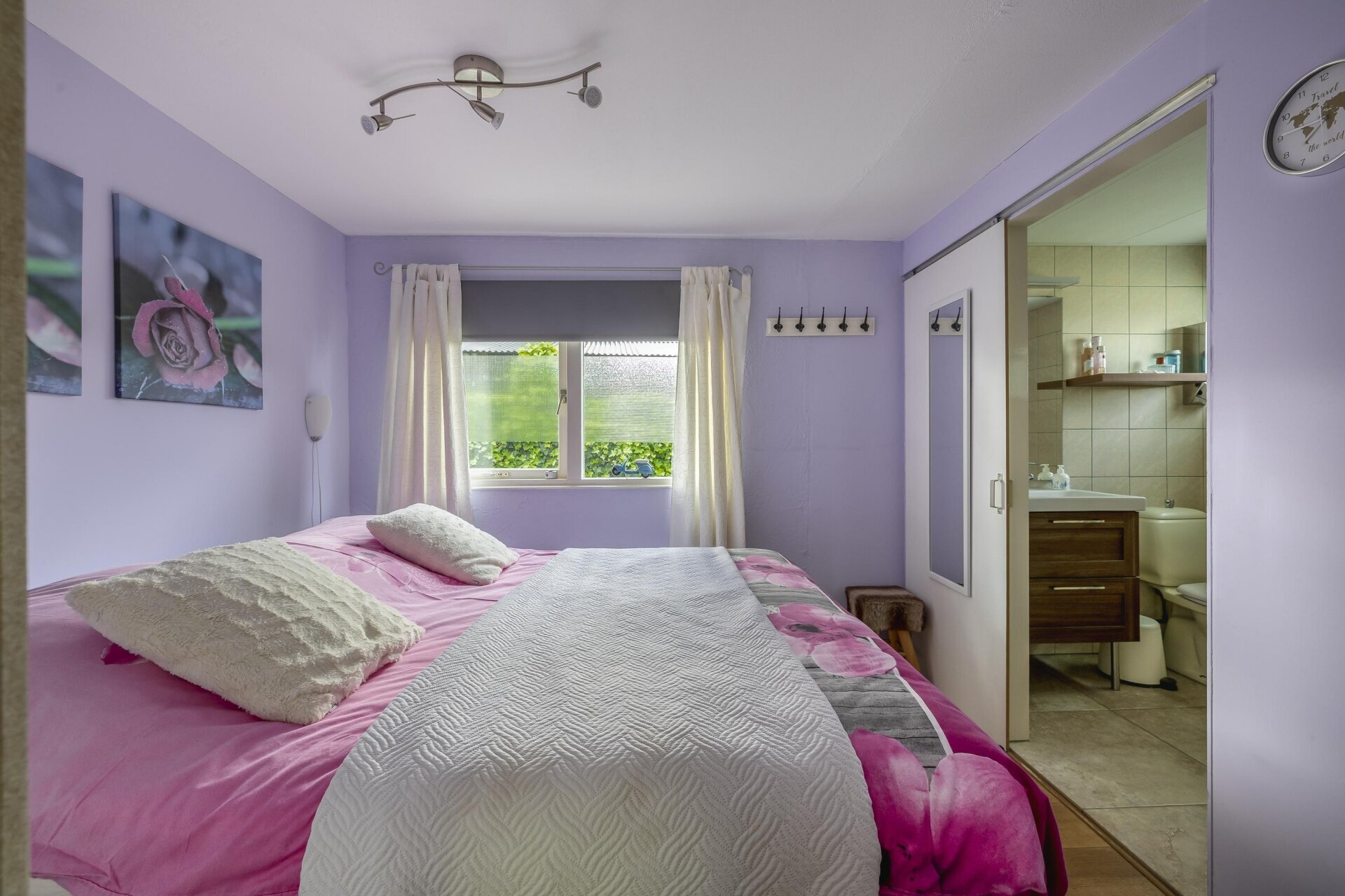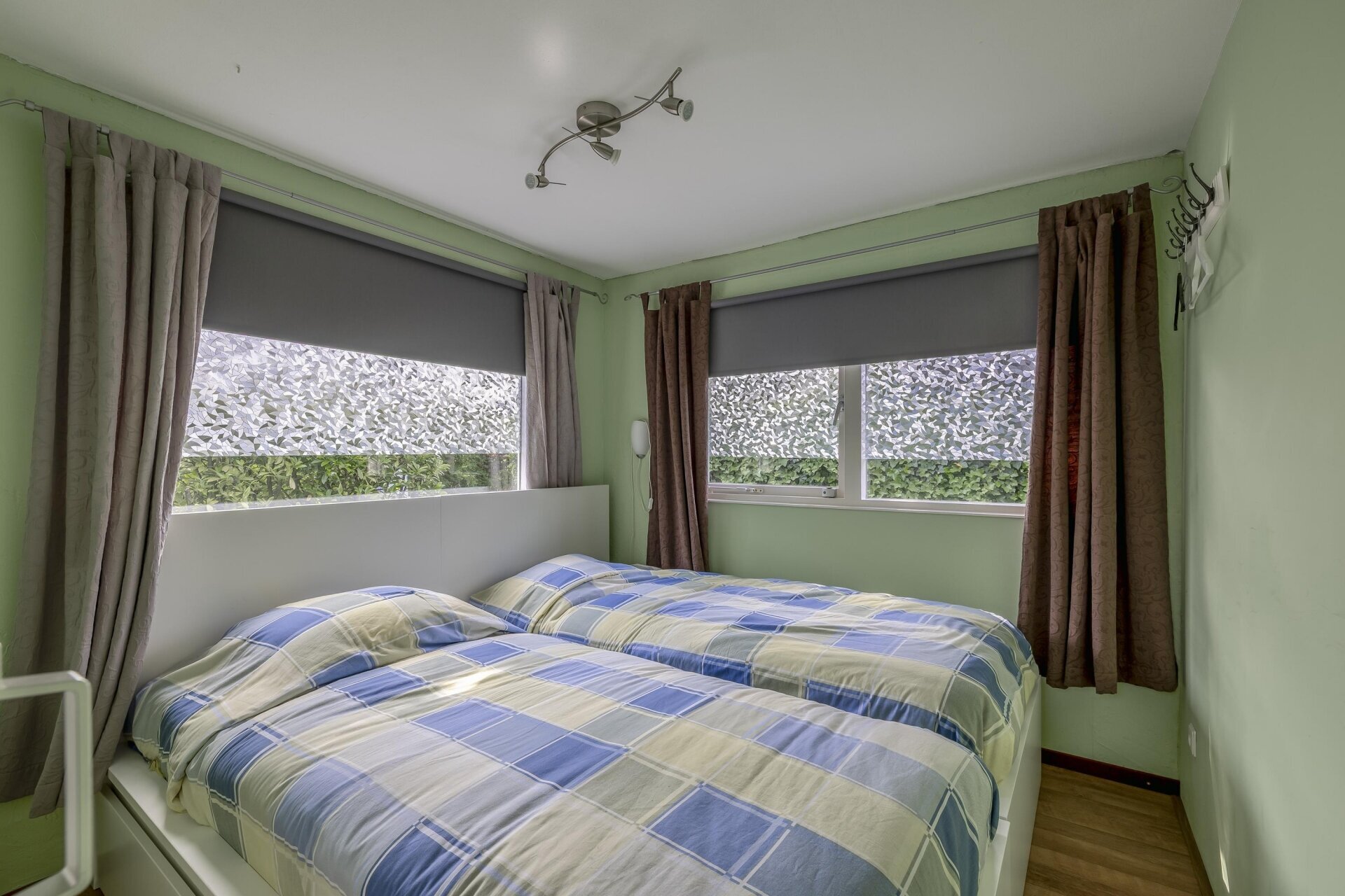 De woning beschikt over twee slaapkamers. De ouderslaapkamer is royaal en voorzien van een eigen badkamer met inloopdouche, wastafel en toilet – ideaal voor comfort en privacy. De tweede slaapkamer is ingericht als logeerkamer met twee bedden. Daarnaast is er een praktische bijkeuken met wasmachine, droger en een tweede toilet voor gasten. Boven de leefruimte vind je een vide – perfect als extra opbergruimte, extra slaapplek of speelhoek.