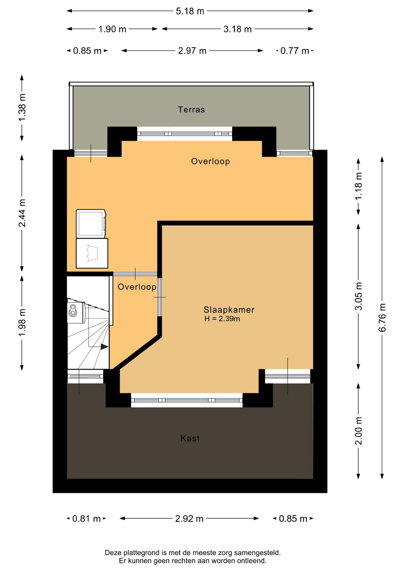 “Deze informatie is door ons met de nodige zorgvuldigheid samengesteld. Onzerzijds wordt echter geen enkele aansprakelijkheid aanvaard voor enige onvolledigheid, onjuistheid of anderszins, dan wel de gevolgen daarvan. Alle opgegeven maten en oppervlakten zijn indicatief.”