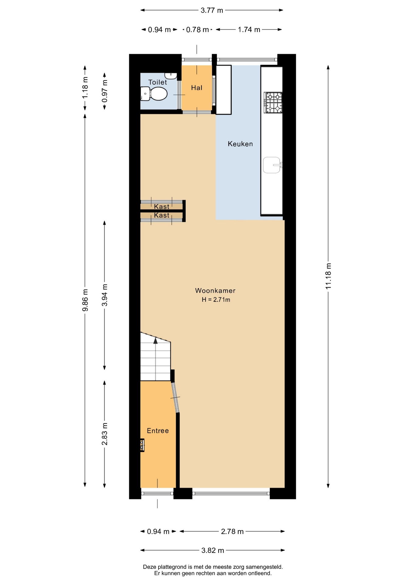 “Deze informatie is door ons met de nodige zorgvuldigheid samengesteld. Onzerzijds wordt echter geen enkele aansprakelijkheid aanvaard voor enige onvolledigheid, onjuistheid of anderszins, dan wel de gevolgen daarvan. Alle opgegeven maten en oppervlakten zijn indicatief.”