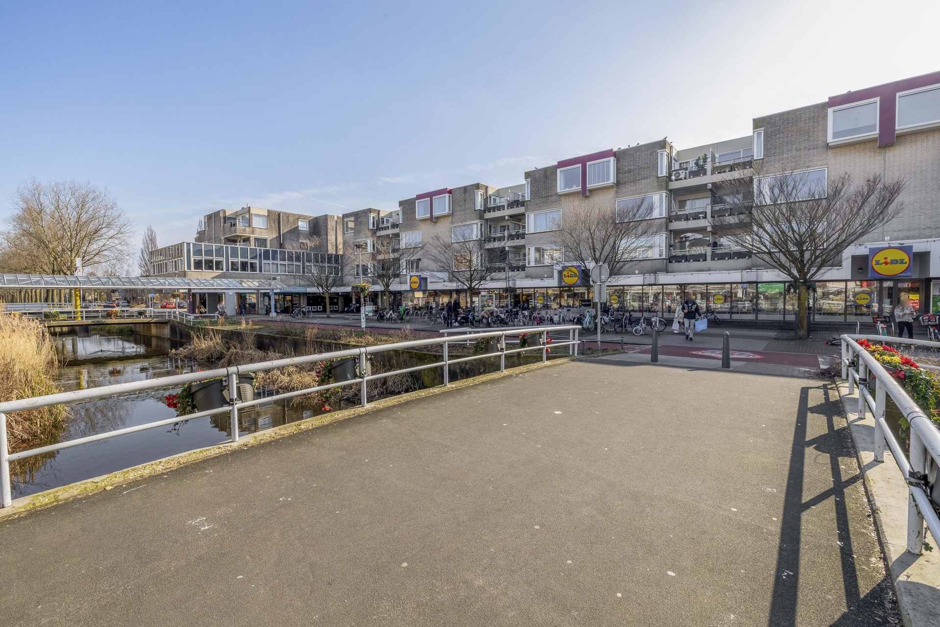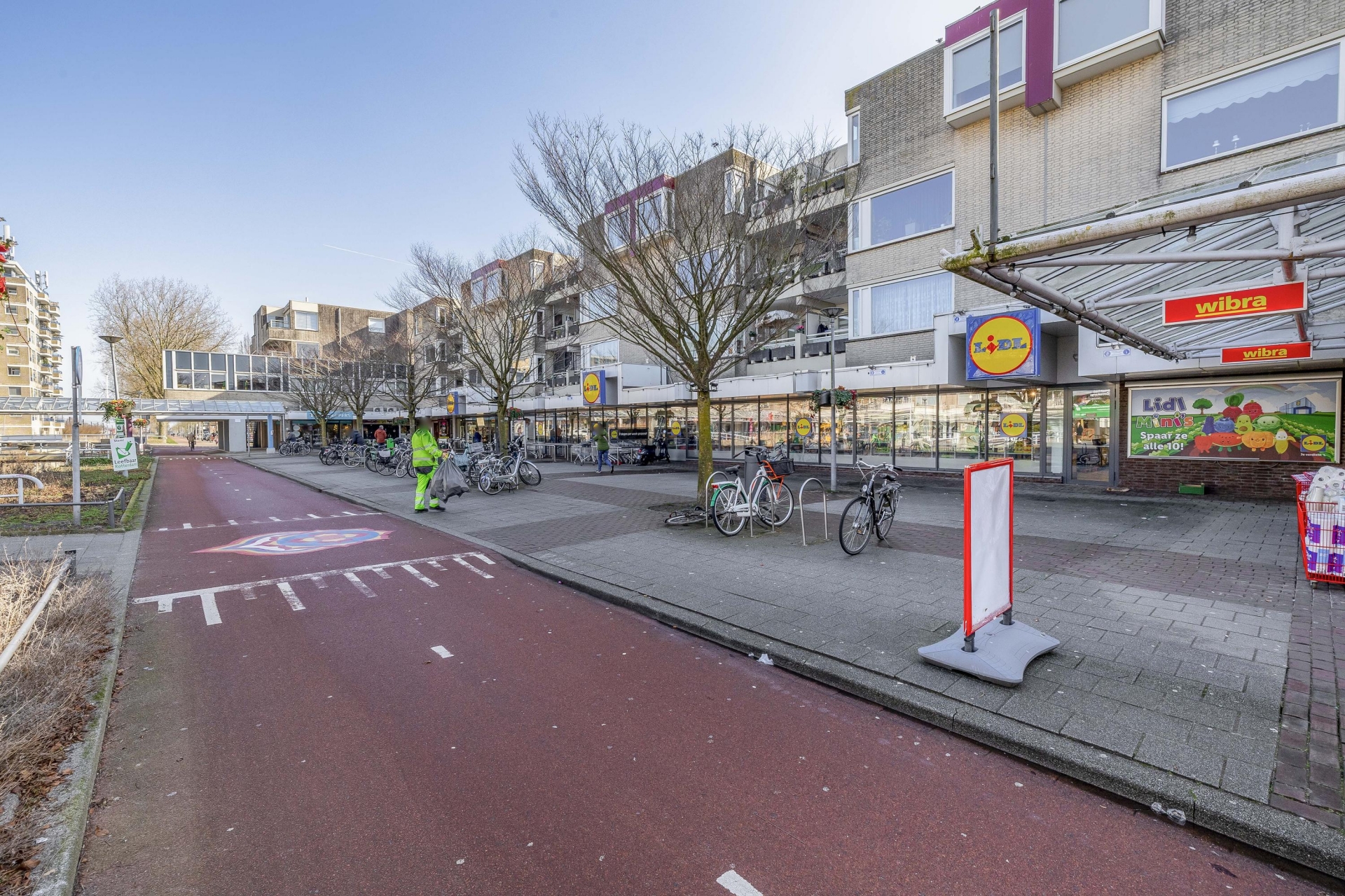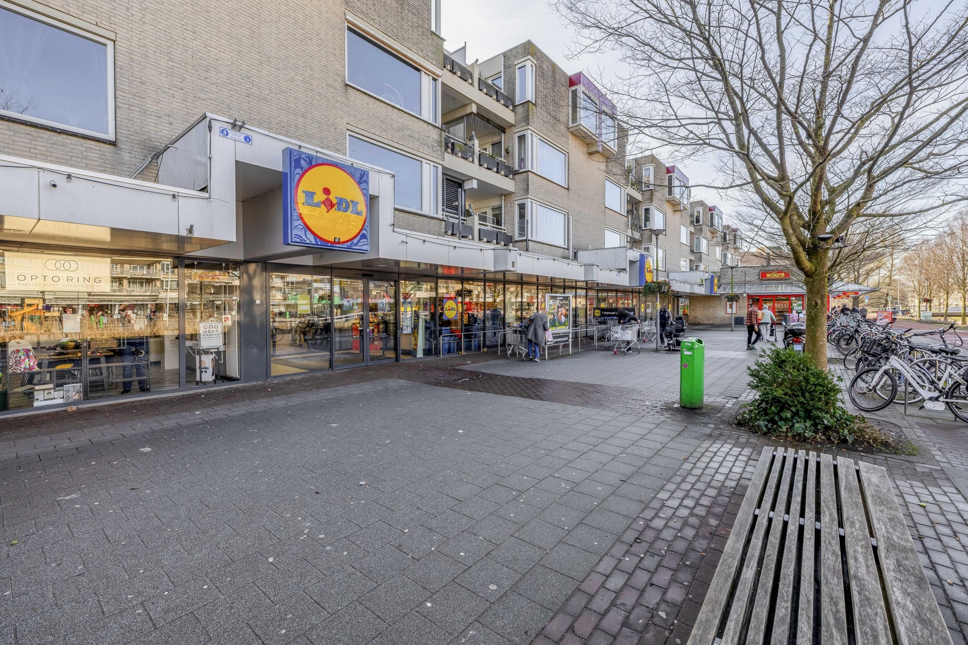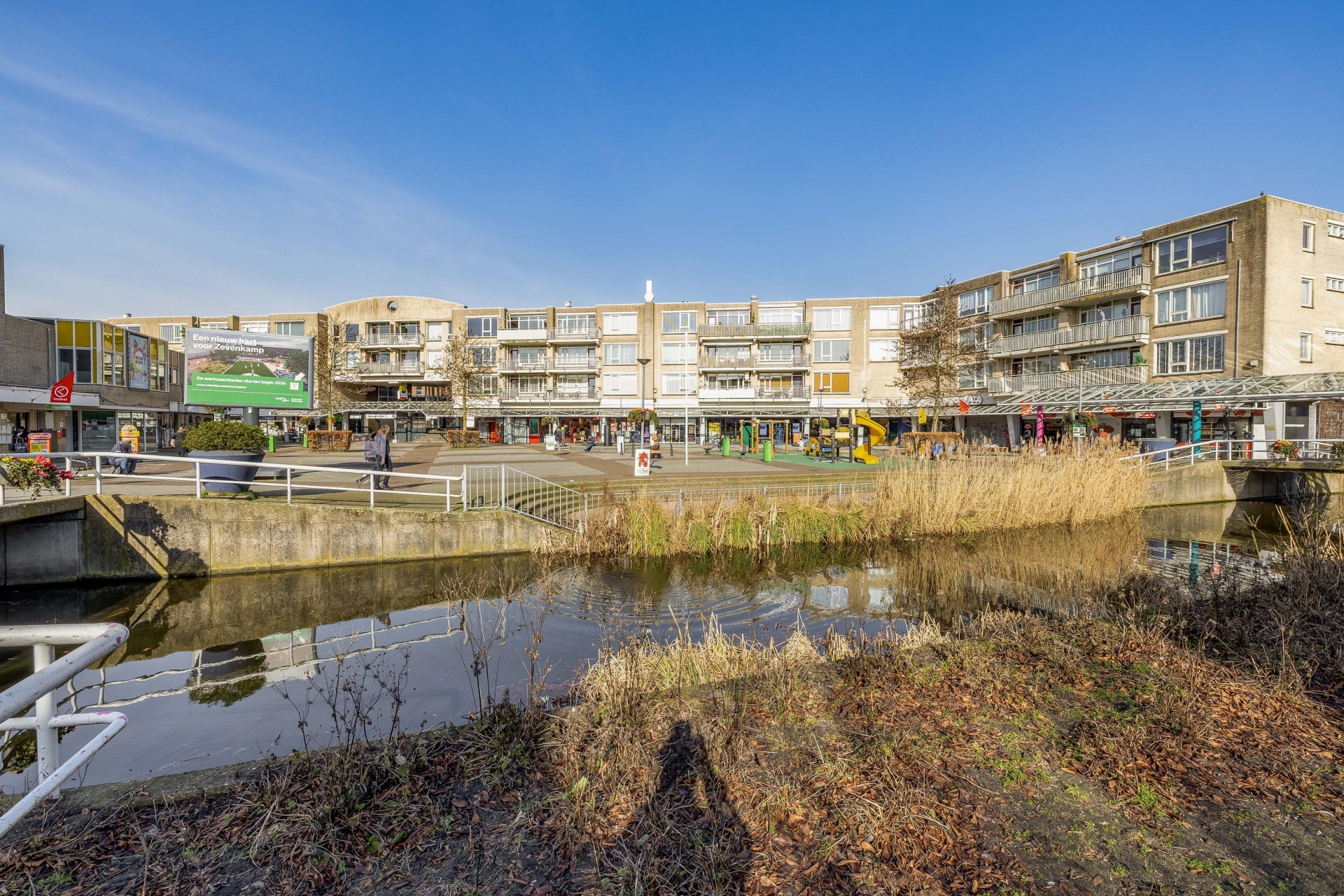 Letterlijk een verdieping lager bevindt zich het winkelcentrum van Zevenkamp met een breed winkelaanbod.