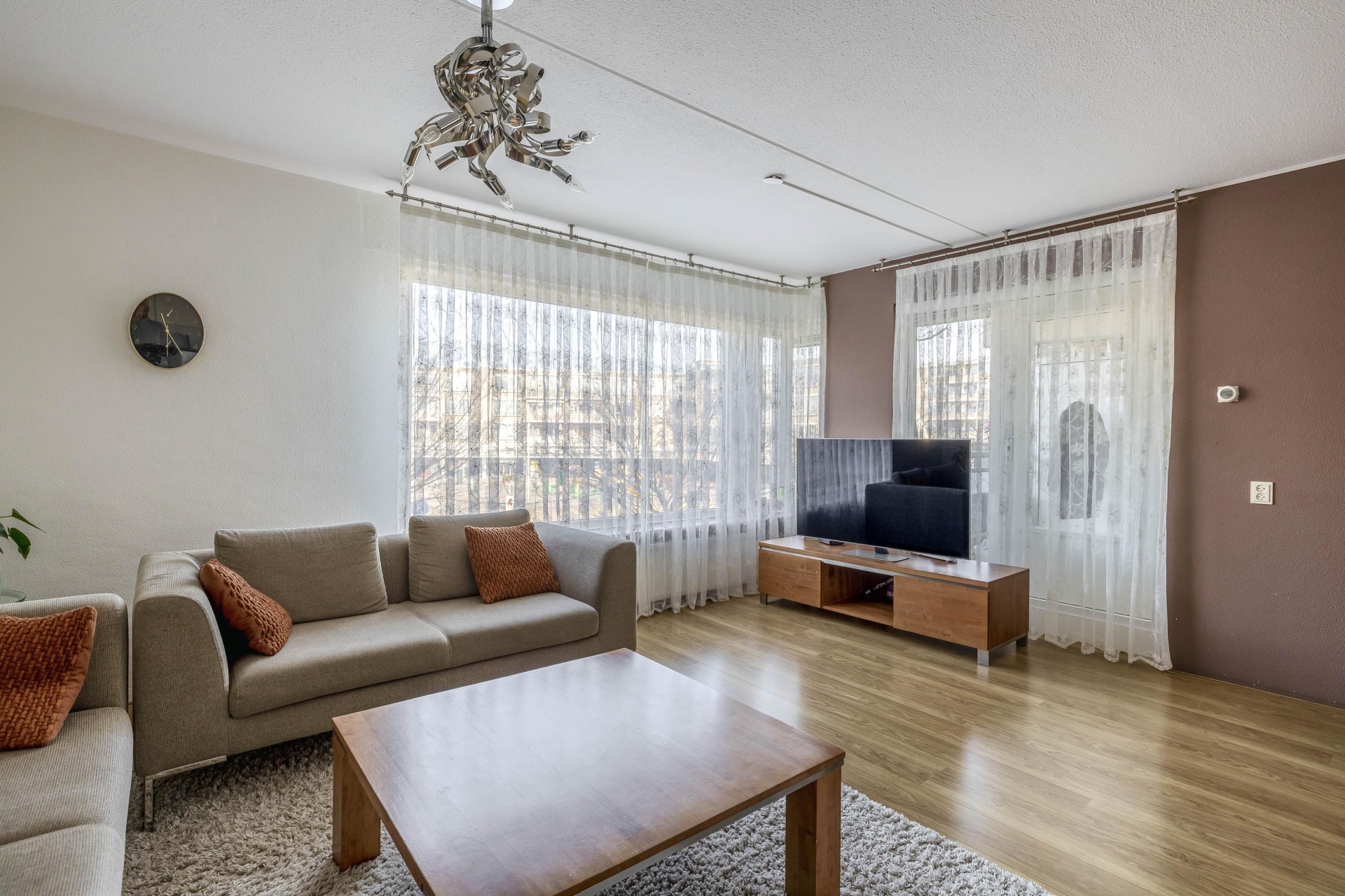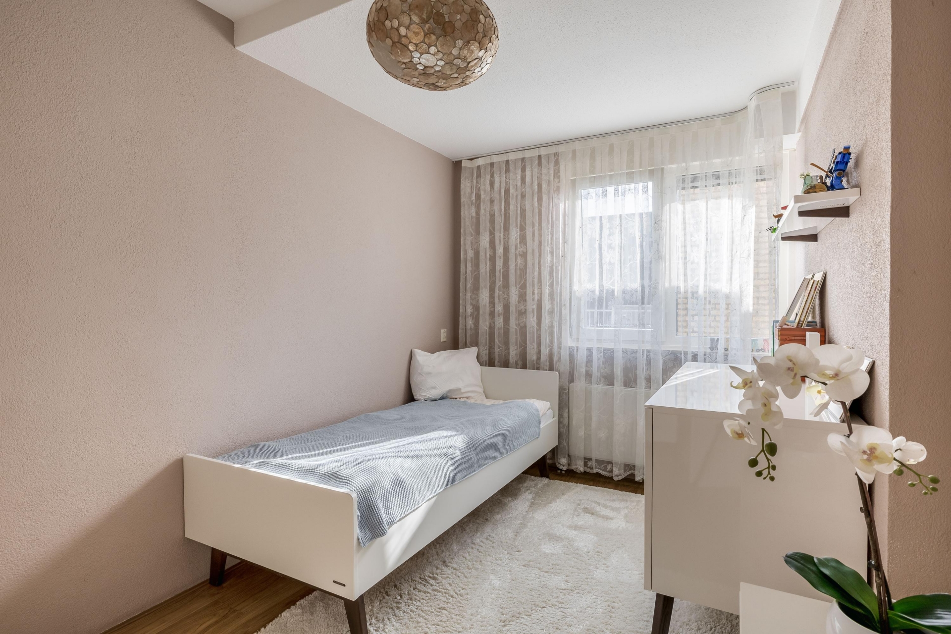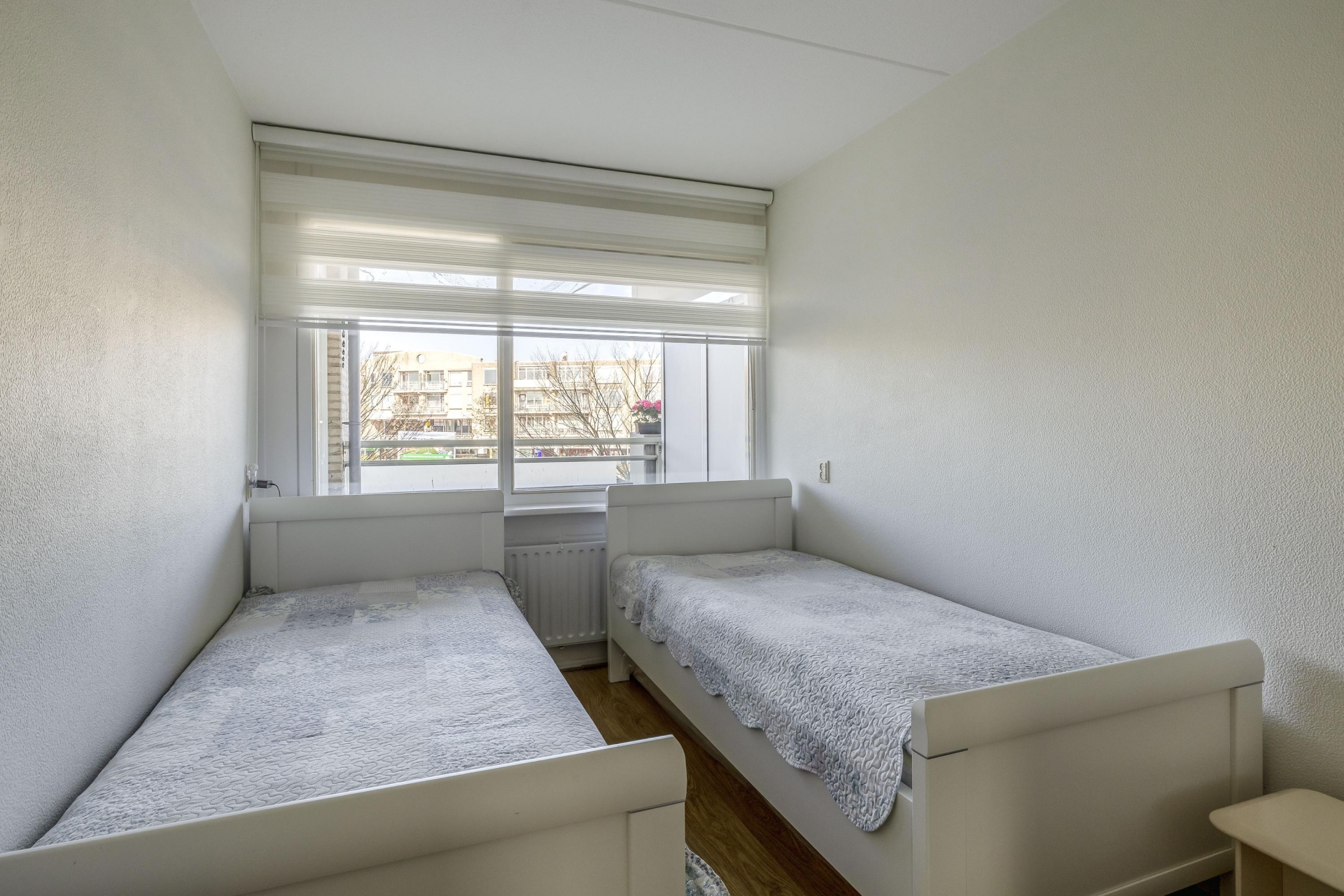 Deze kamer ligt aan de achterzijde van het appartement en grenst aan het balkon.