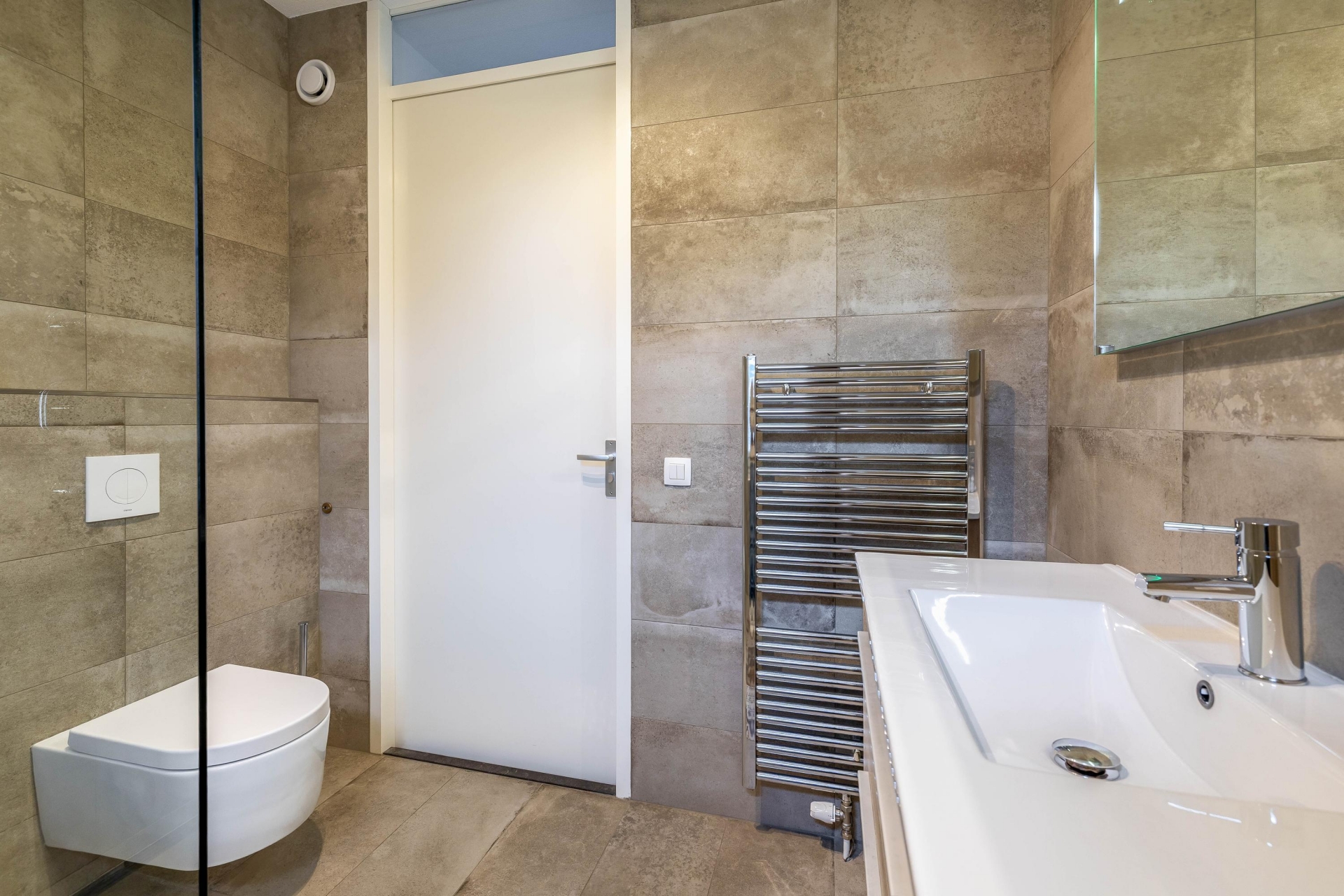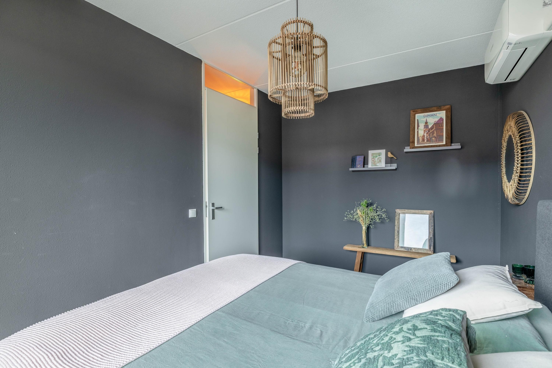 Op de eerste verdieping vind je drie slaapkamers en de badkamer. Aan de voorzijde ligt één slaapkamer. Aan de achterzijde bevinden zich twee slaapkamers, waarbij de grootste kamer volop ruimte biedt voor een tweepersoonsbed en een royale kast. De badkamer is modern uitgevoerd en compleet ingericht met een douche, wastafel en tweede toilet. Strak tegelwerk en een frisse uitstraling zorgen ervoor dat ook hier niets meer hoeft te gebeuren.