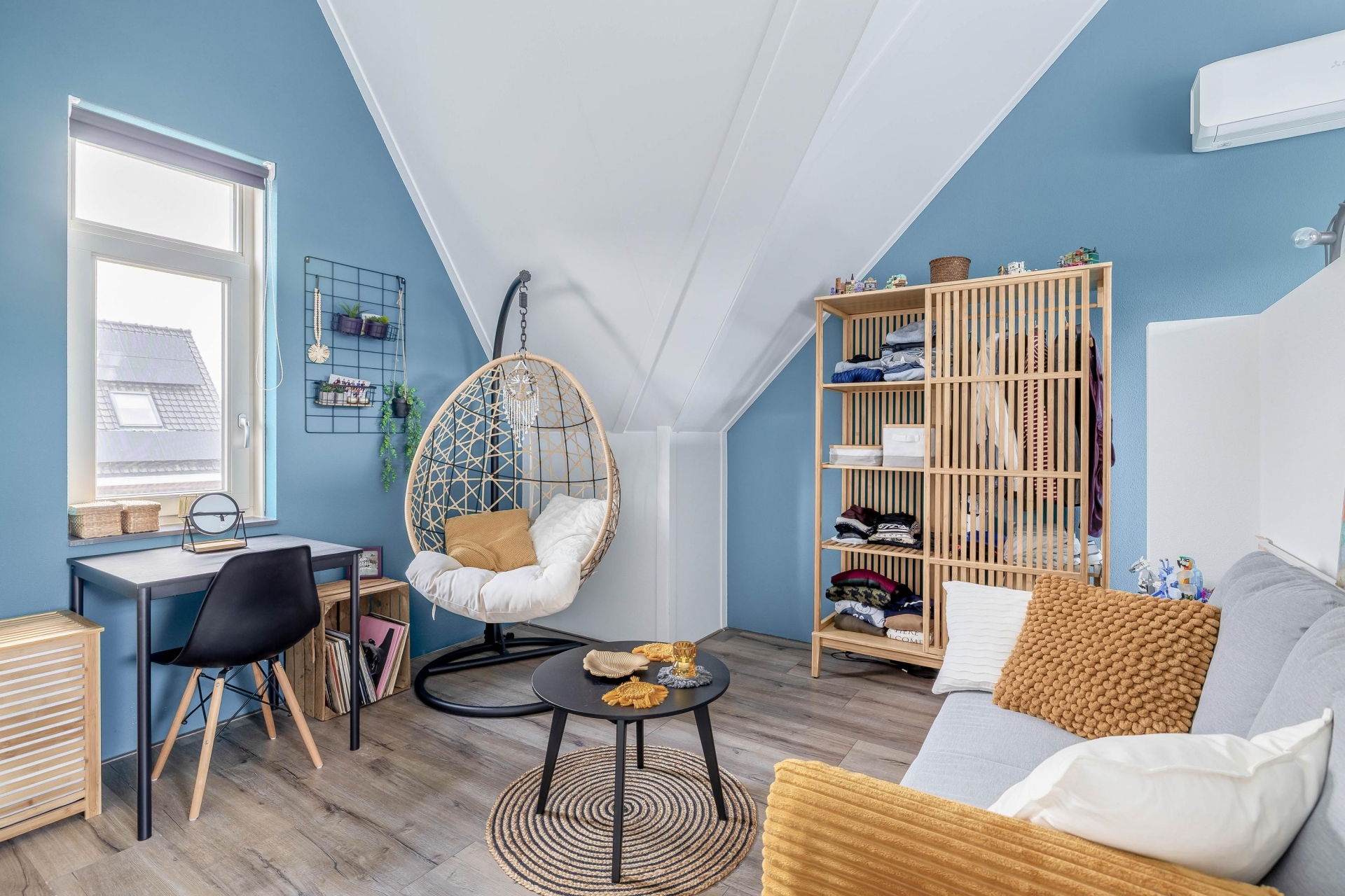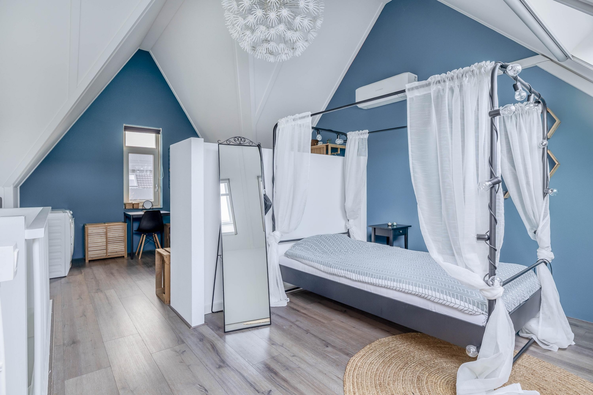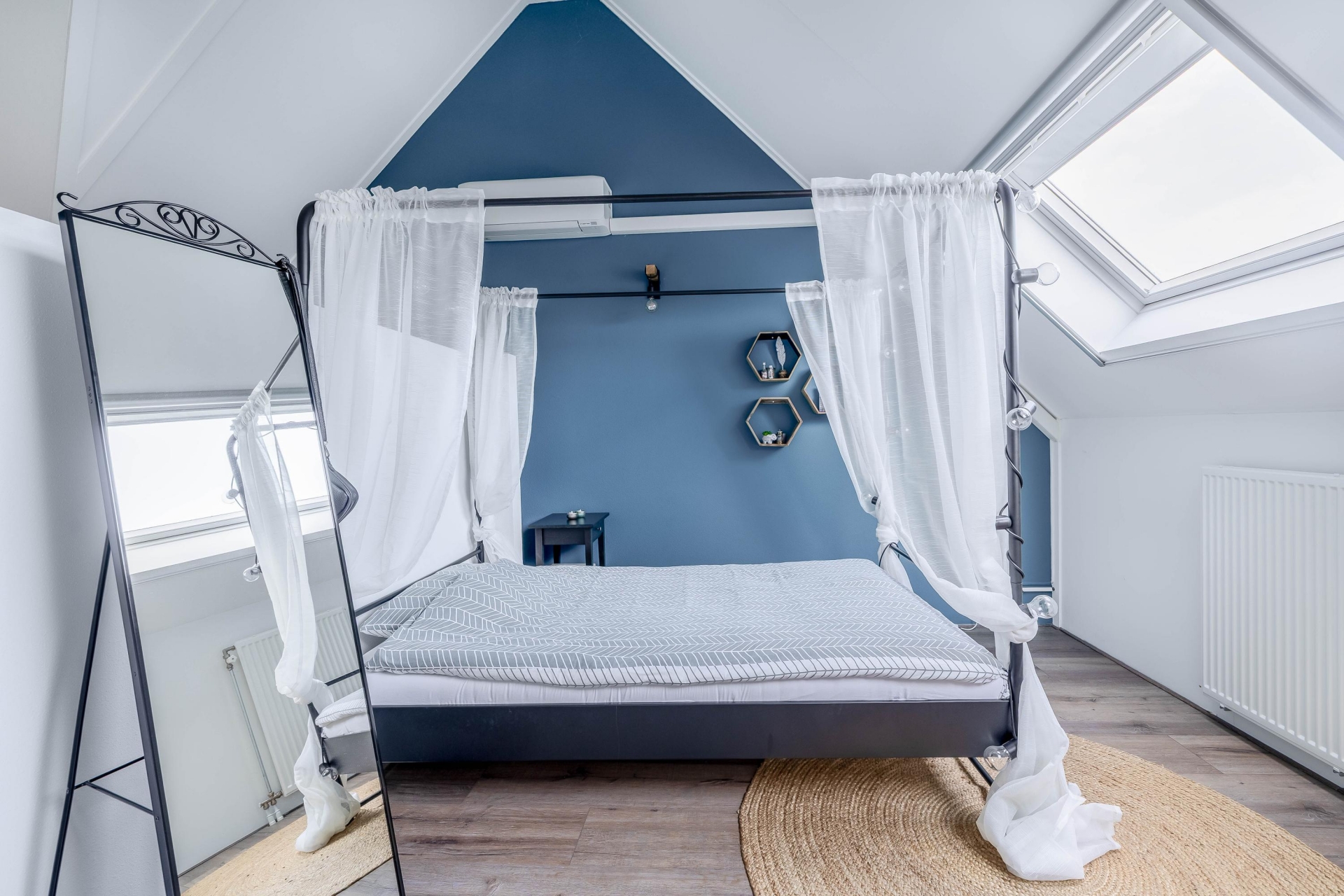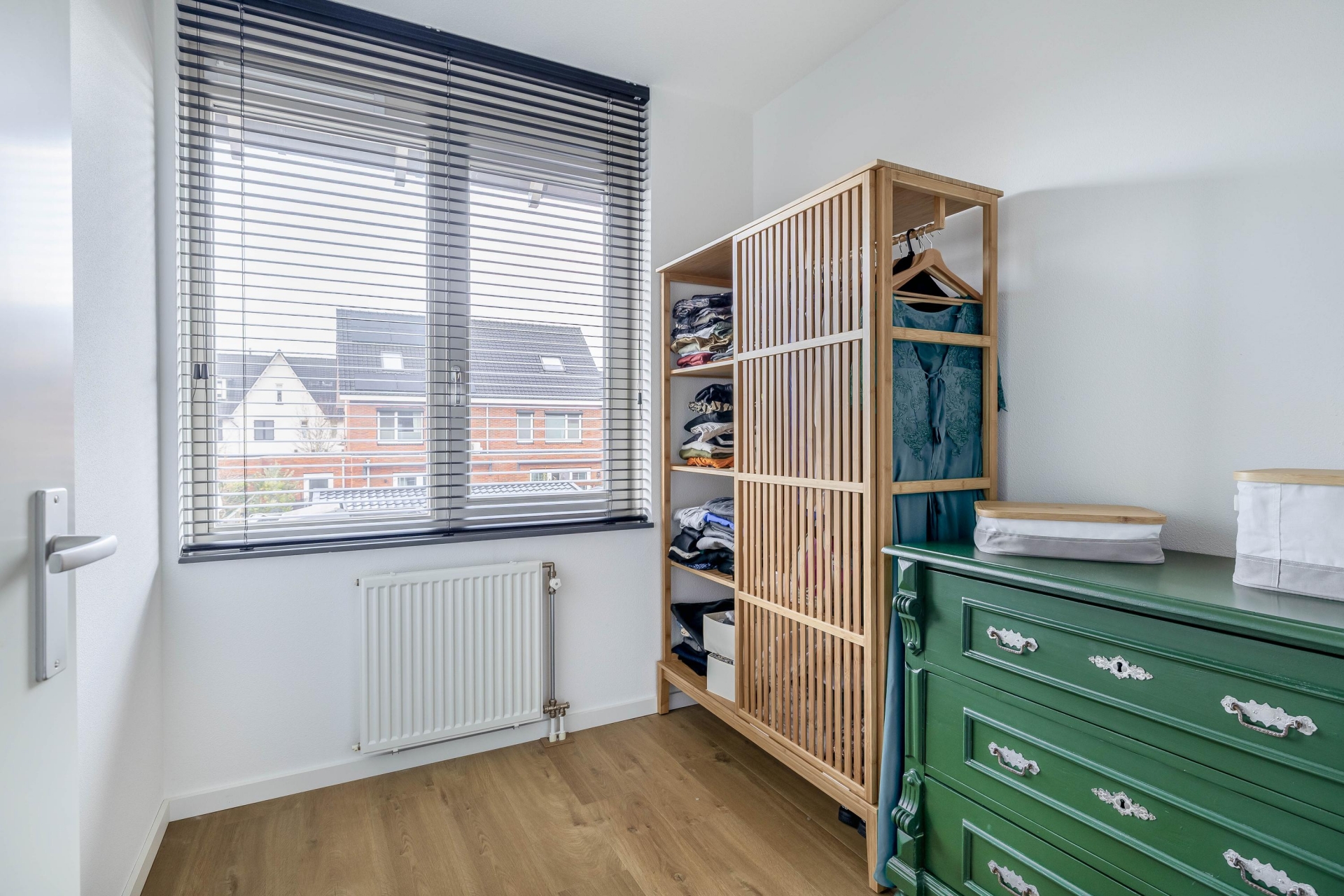 De vaste trap brengt je naar de tweede verdieping. Hier bevindt zich een ruime vierde slaapkamer over de volle breedte van het huis. Dankzij twee dakramen en de slimme indeling is dit een volwaardige, lichte kamer, perfect als master bedroom of rustige thuiswerkplek. Onder de schuine kap is bovendien extra bergruimte aanwezig.