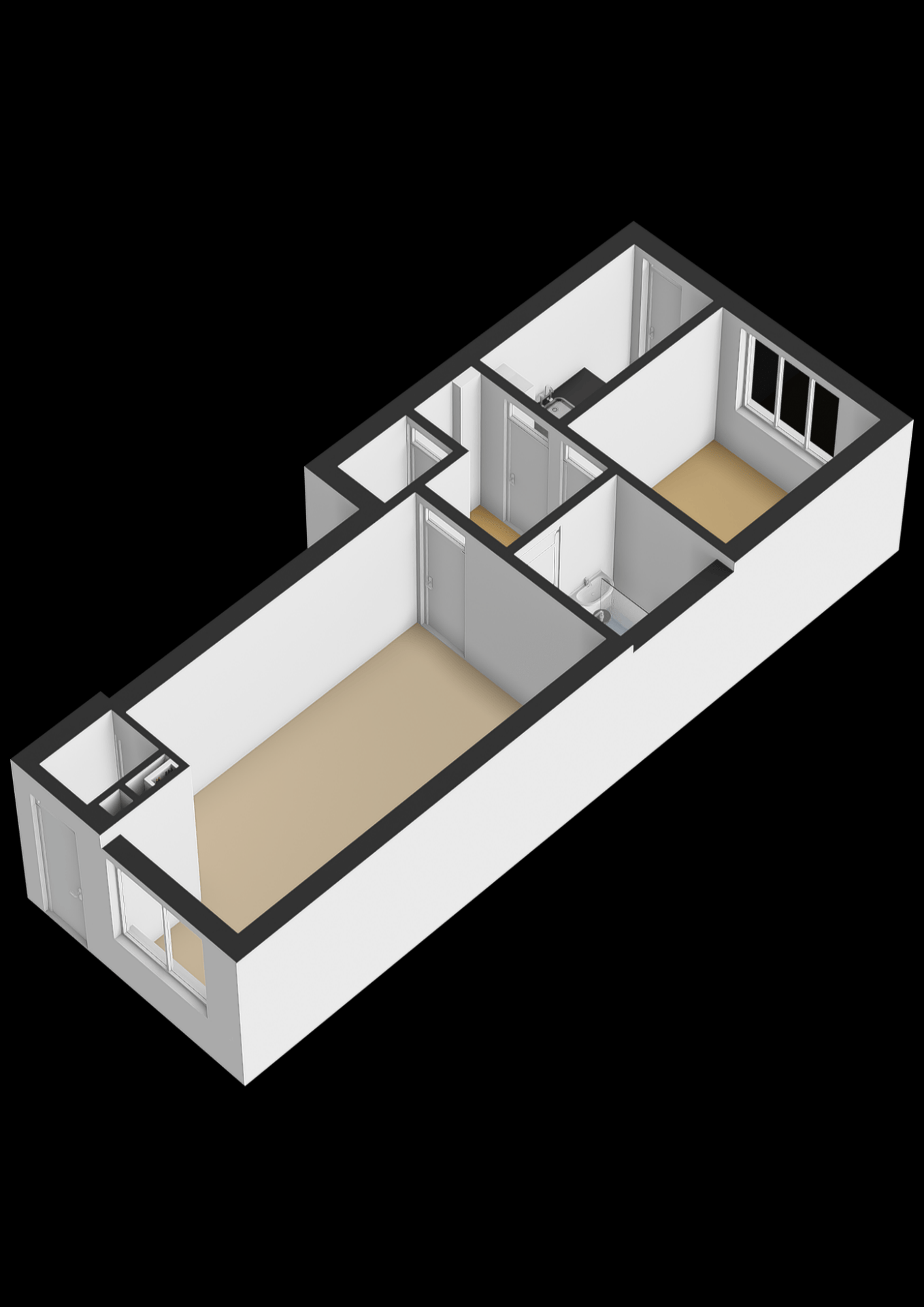 Het huis heeft een praktische indeling: een lichte woonkamer, een keuken die toegang geeft tot de tuin, een rustige slaapkamer aan de achterzijde en een compacte badkamer. Met de juiste aanpassingen kun je hier een comfortabel en stijlvol benedenhuis realiseren.