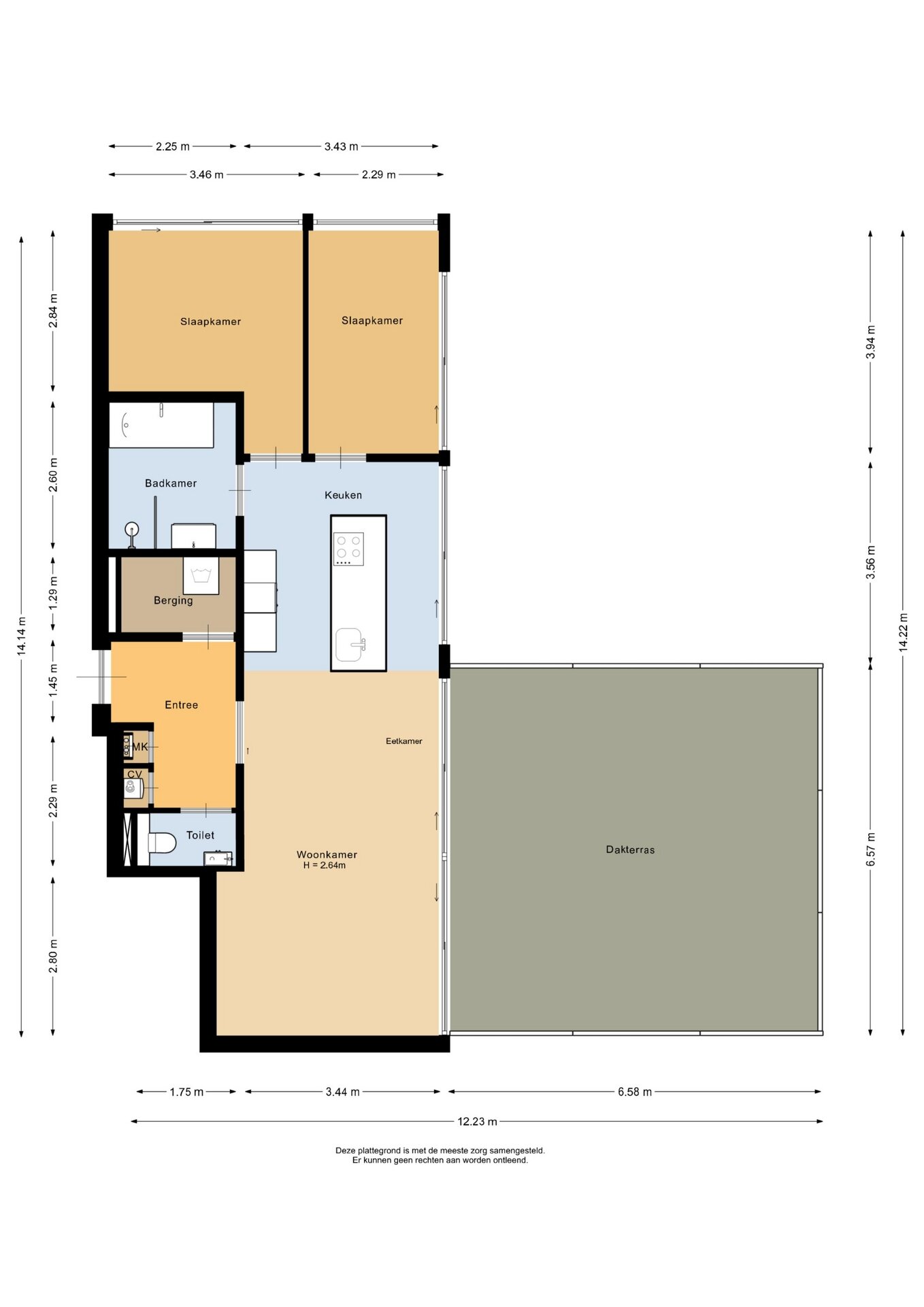 “Deze informatie is door ons met de nodige zorgvuldigheid samengesteld. Onzerzijds wordt echter geen enkele aansprakelijkheid aanvaard voor enige onvolledigheid, onjuistheid of anderszins, dan wel de gevolgen daarvan. Alle opgegeven maten en oppervlakten zijn indicatief.”