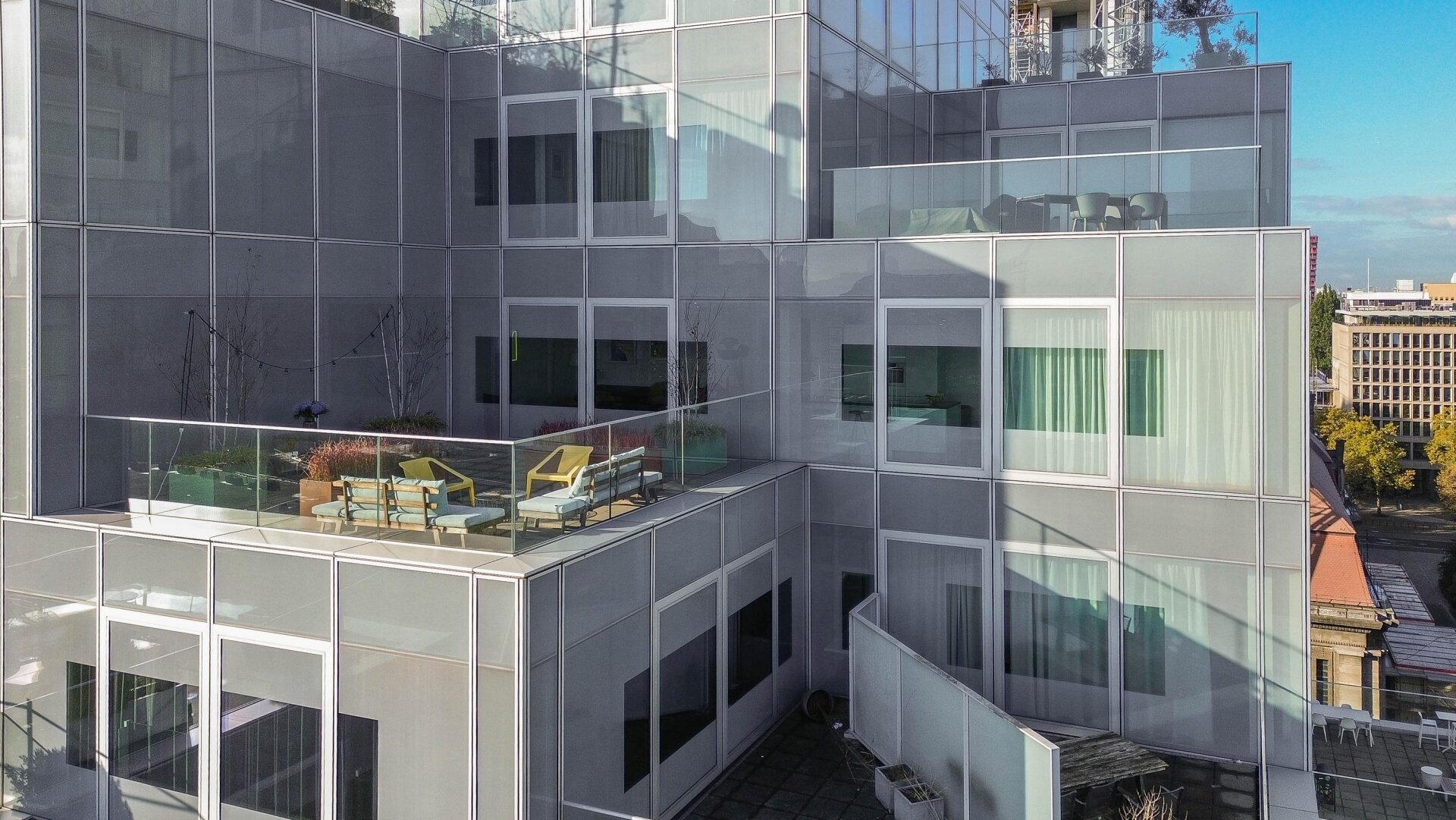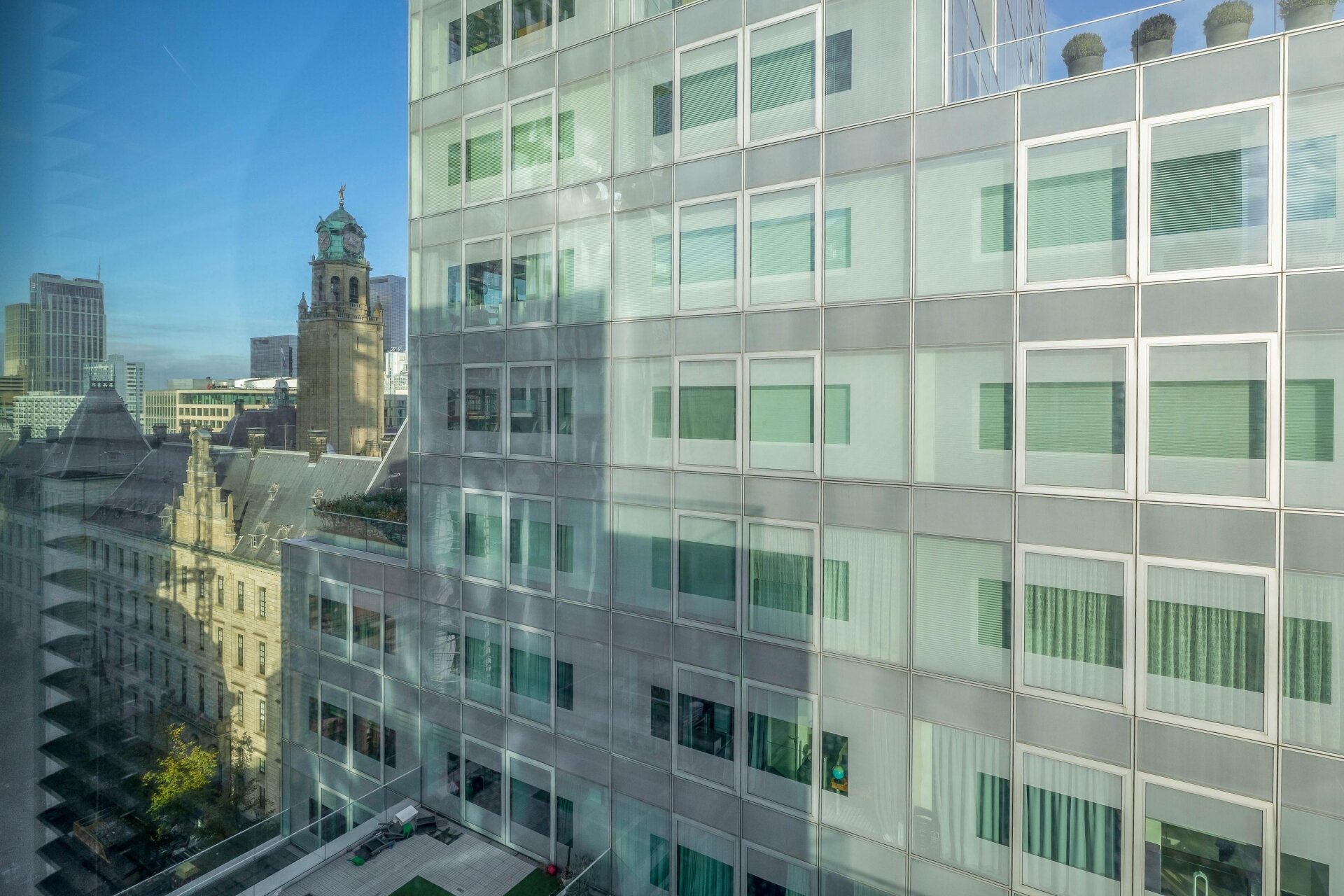 Wat dit appartement extra bijzonder maakt, is de plek waar je woont. Een deel van het gebouw is monumentaal, slim geïntegreerd in het moderne ontwerp van OMA. De entree is strak en uitnodigend, er zijn twee liften aanwezig en uiteraard beschik je over een eigen berging. Alles in het gebouw straalt kwaliteit en zorg uit. Je woont hier letterlijk boven het stadse leven, maar met rust, ruimte en privacy.