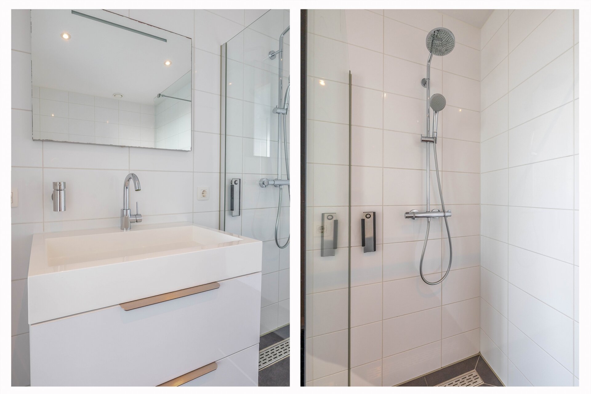 Het appartement beschikt over twee slaapkamers, beide met een rustige ligging. De grootste kamer is ideaal als master bedroom, de tweede is perfect als logeer-, werk- of kinderkamer. Door de slimme indeling is er nergens ruimte verloren gegaan. Alles klopt hier qua maat, lichtinval en afwerking.