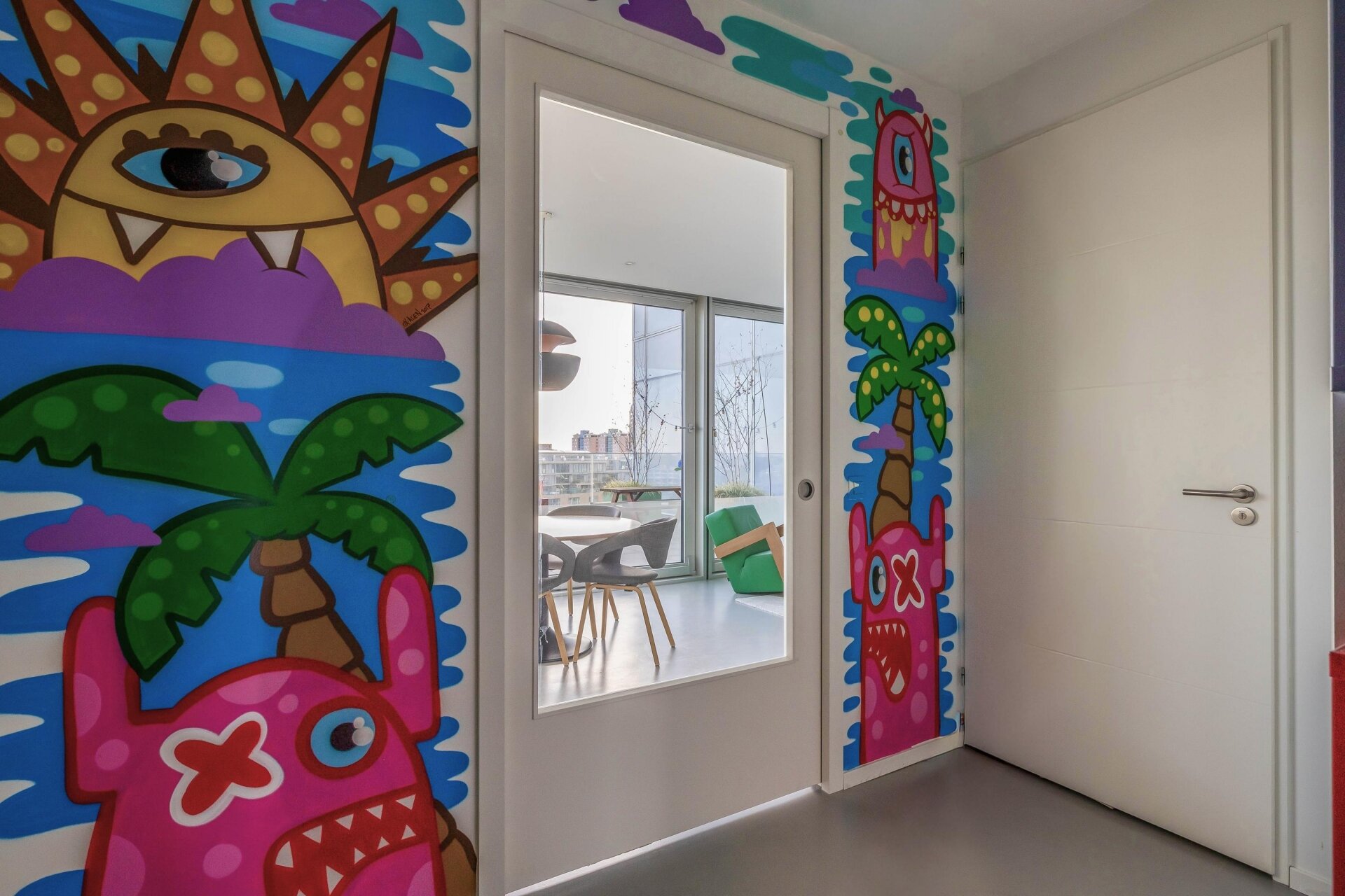 - Plafondhoge ramen en schuifpuien met veel lichtinval