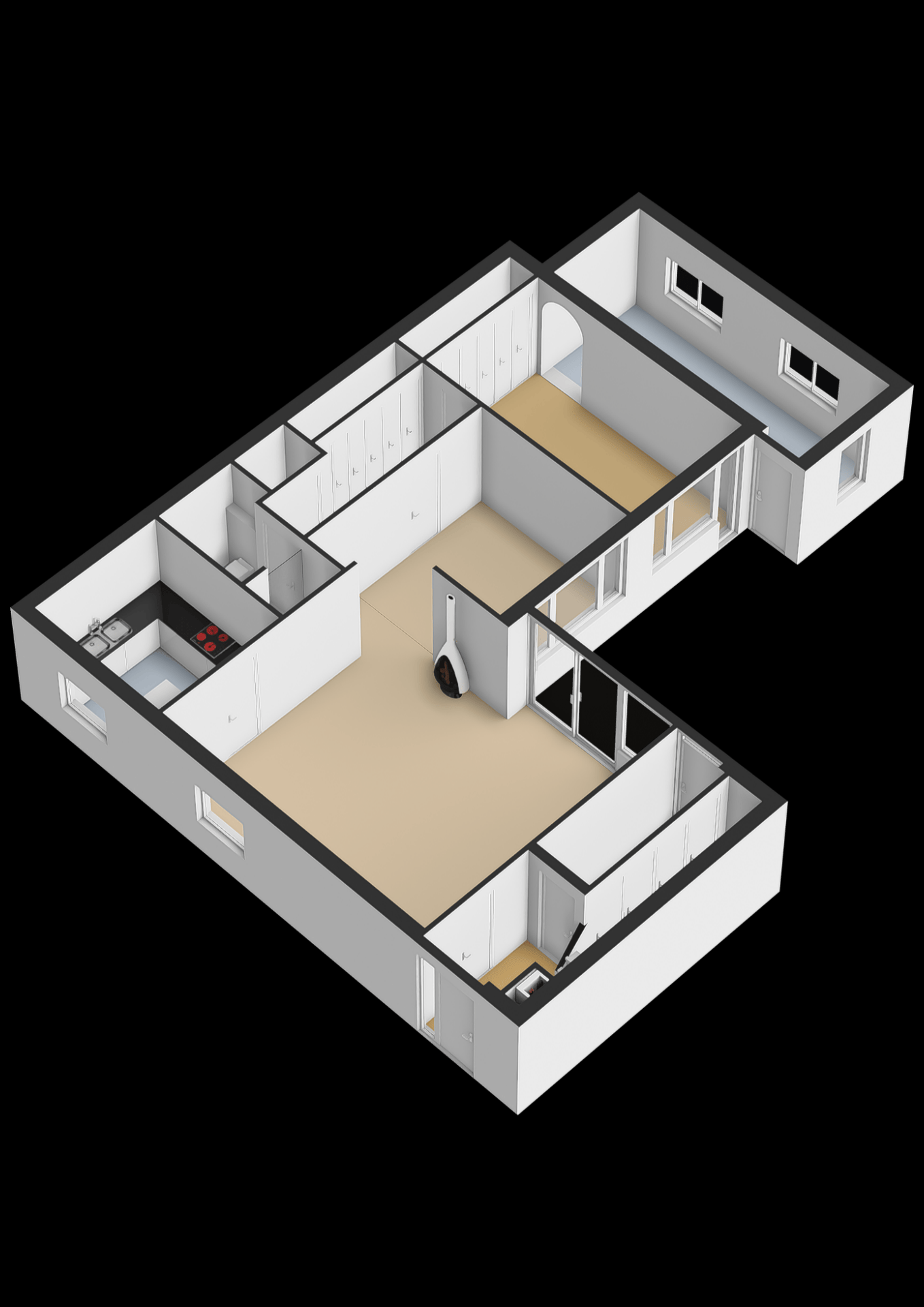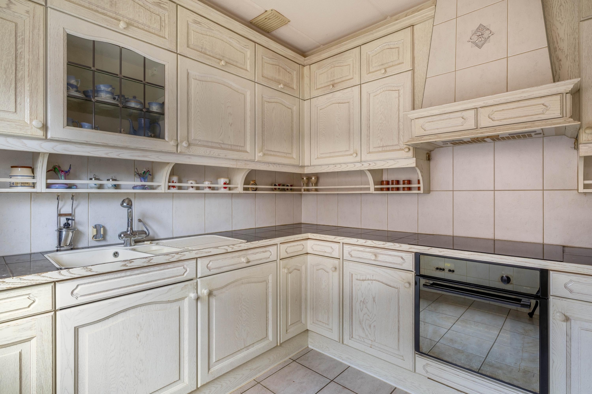 Zodra je de woonkamer binnenkomt, valt het uitzicht direct op. Grote raampartijen zorgen voor een zee aan daglicht én een prachtig panoramabeeld over het omliggende groen en water. Binnen voelt het net zo vrij als buiten. De leefruimte is praktisch ingedeeld en biedt voldoende plek voor zowel een gezellige zithoek als een ruime eettafel. Dankzij de gunstige ligging op de hoek geniet je hier de hele dag van natuurlijke lichtinval. Ook de keuken aan de voorzijde is praktisch ingedeeld.