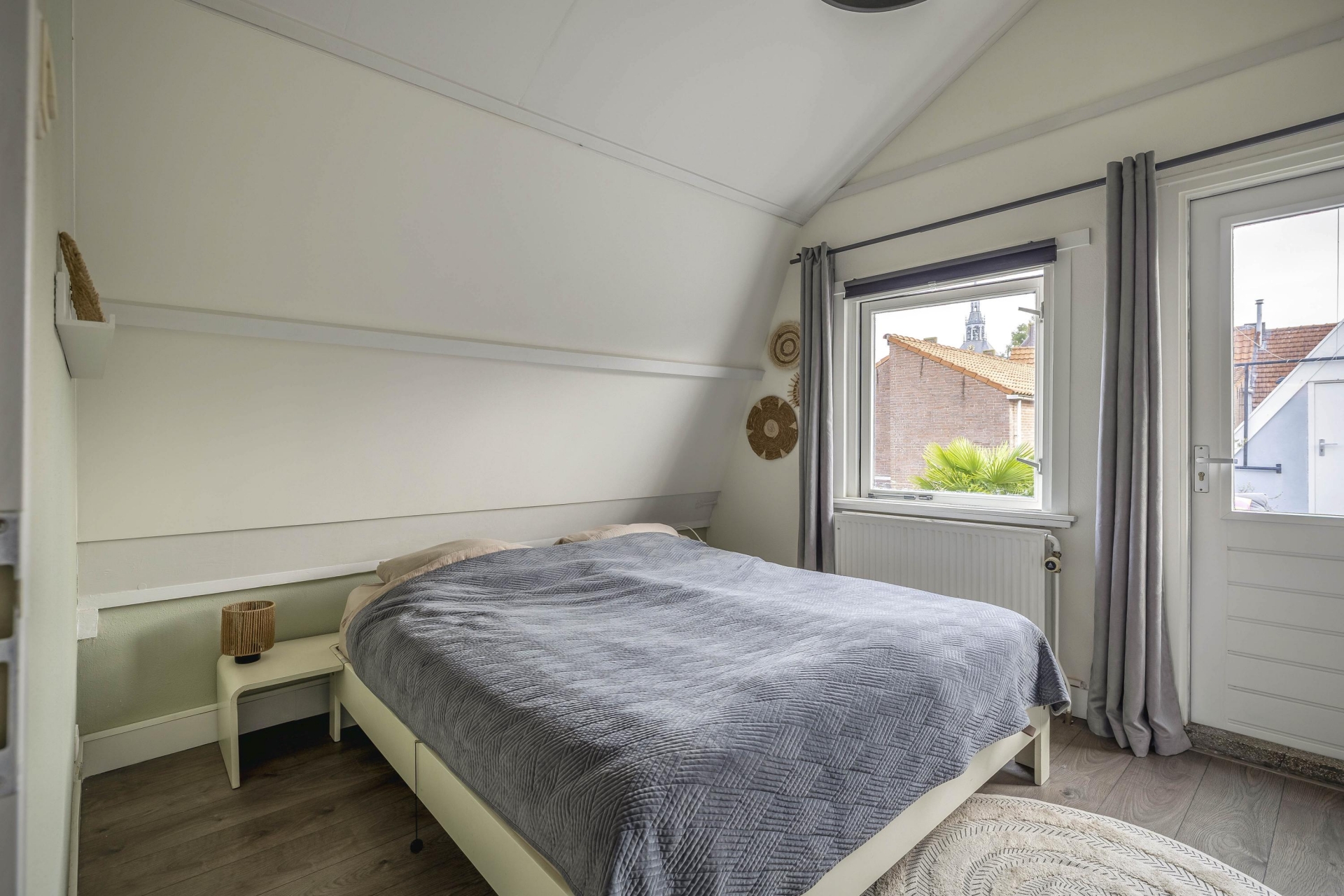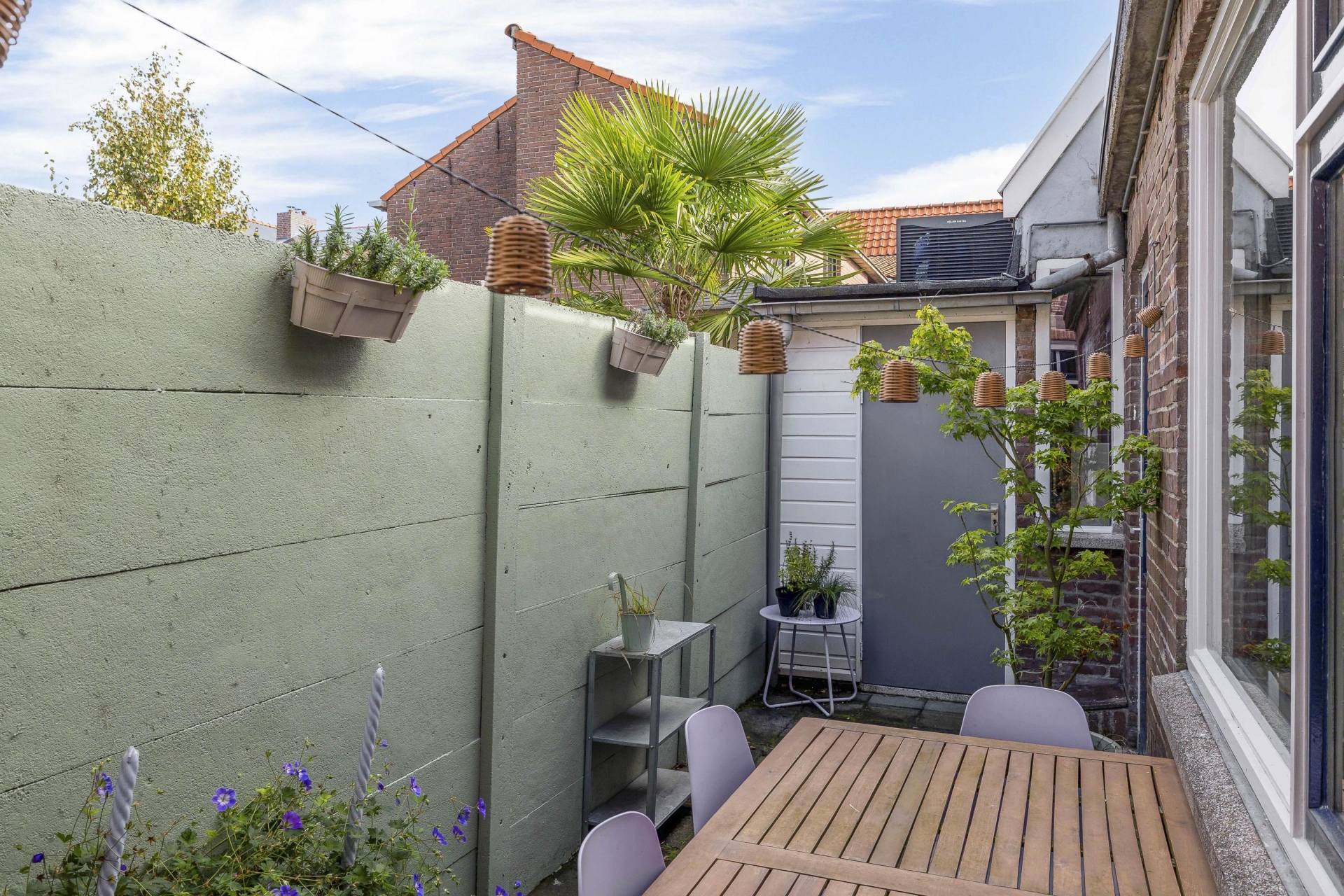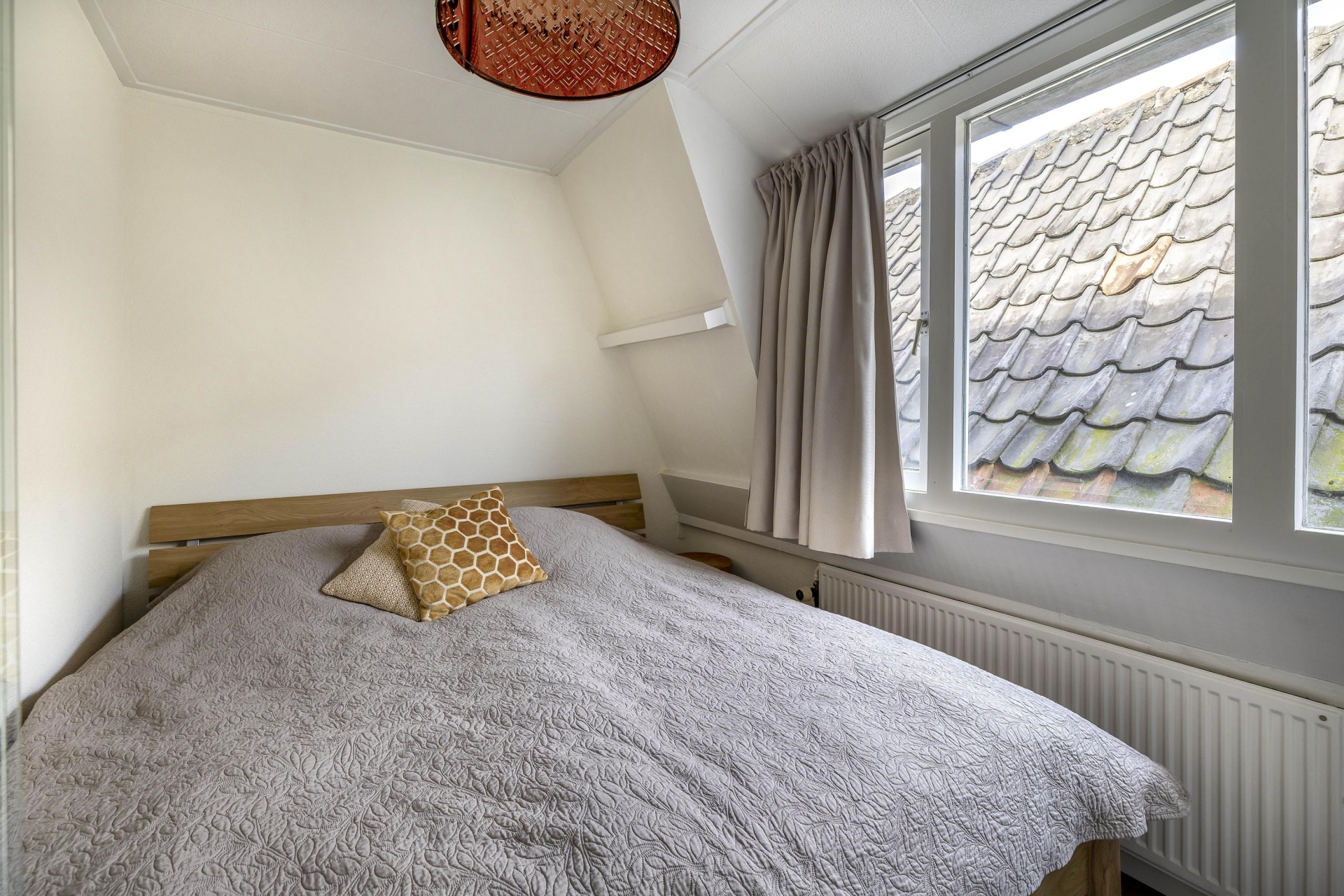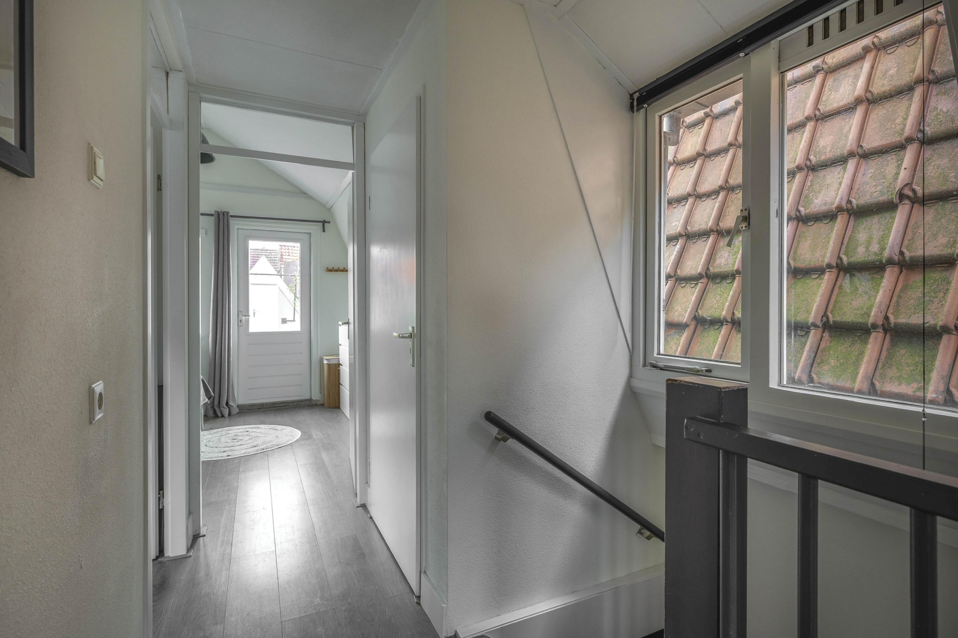 Het dakterras aan de achterzijde is een oase van rust, midden in de stad. Dankzij de ligging op het oosten geniet je hier 's ochtends en aan het begin van de middag van de zon. Het terras is voorzien van houten vlonders en biedt voldoende ruimte voor een gezellige lounge- of eethoek. Een heerlijke plek voor een kop koffie in de zon, een goed boek of een avondborrel met vrienden. Via het dakterras bereik je nog een praktische bergruimte voor opslag.