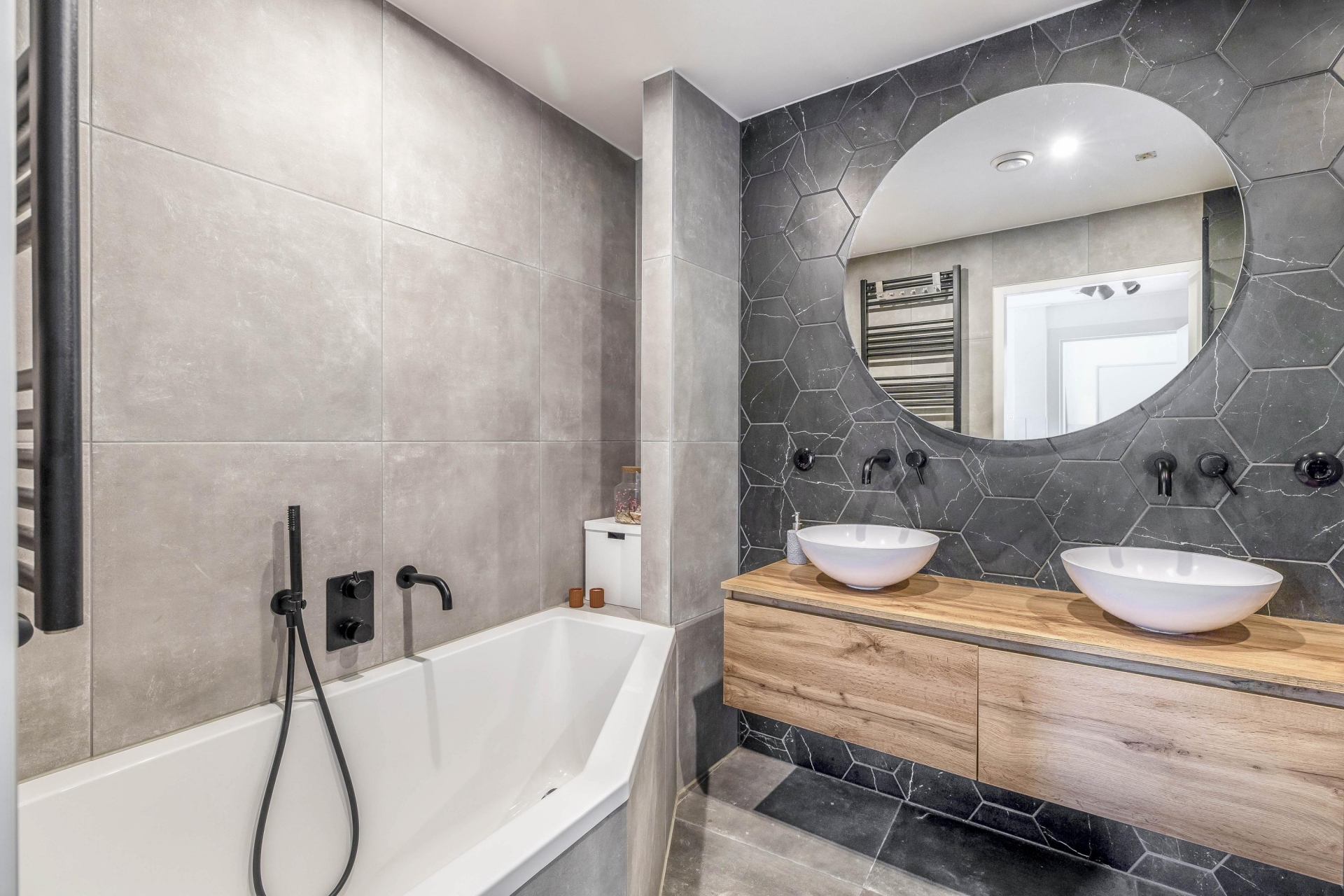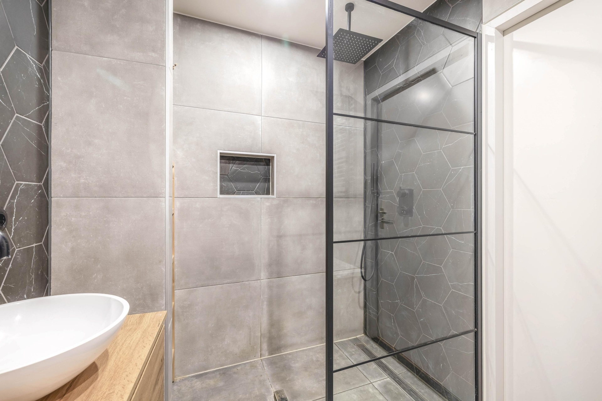 Op de begane grond vind je verder nog een praktische hal. De badkamer is in 2022 volledig vernieuwd en voorzien van een ruime inloopdouche, een dubbele wastafel met meubel en comfortabele vloerverwarming. Ook het toilet op deze verdieping is in dezelfde moderne stijl afgewerkt. Dankzij het vernieuwde leidingwerk en de elektrische installatie (volledig vervangen in 2024), hoef je je hier geen zorgen te maken over onderhoud.